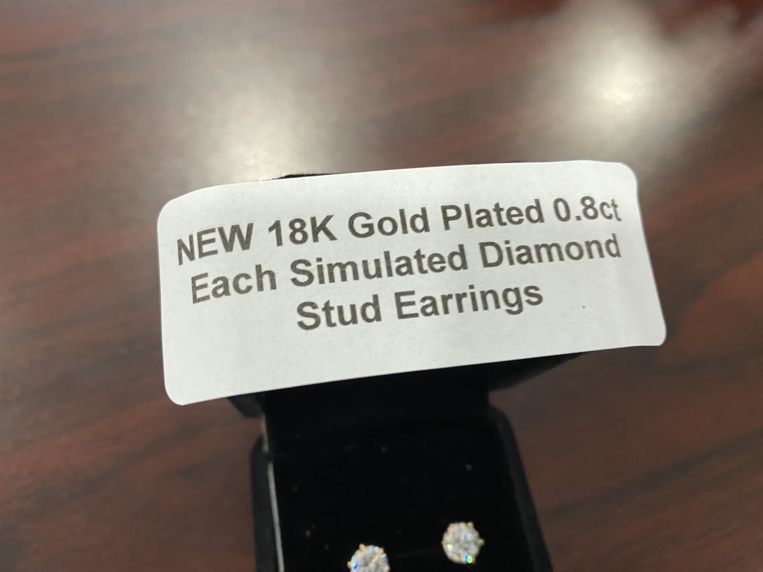 1060 Smartlife 18K Gold Plated 0.8Ct Each Simulated Diamond Stud Earrings (Unused)