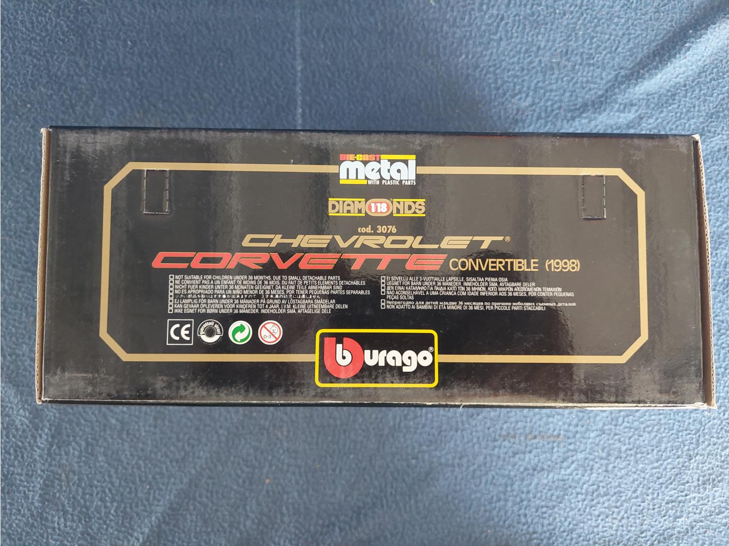 1607 Bburago Die-Cast 1998 Chevrolet Corvette Convertible (New in Box)