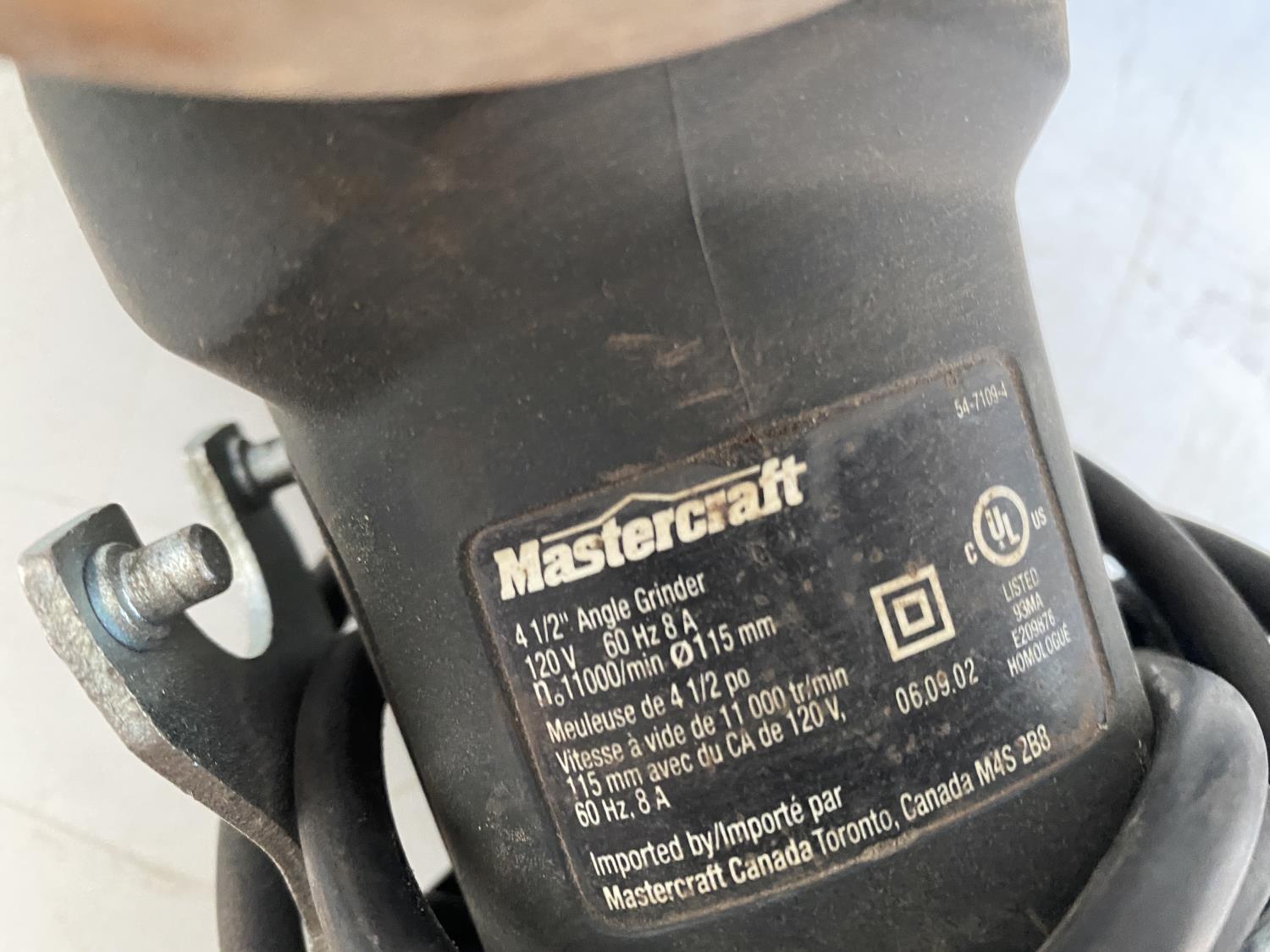 1264 Mastercraft Electric 4-1/2 Inch Angle Grinder w/ Socket Set & Drill Bits