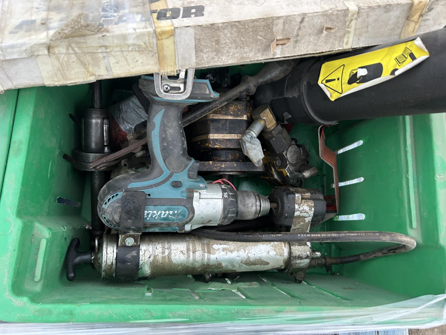 includes (2) beacon lights, hinged belt fasteners, Makita drill/grease gun