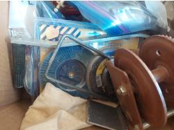 12V, 750 Amp, includes (2) 24 inch bar clamps, miscellaneous rulers, hand winch, and burnisher discs