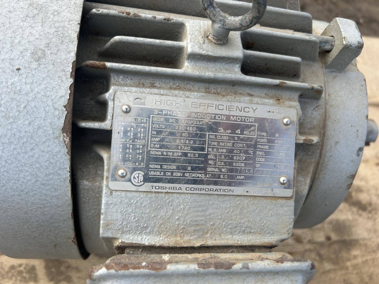 (1) Leeson WattSaver electric motor, (1) Toshiba 3 Phase 460V electric motor 8.4 Amp