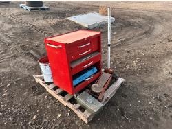 includes floor jack, miscellaneous wrenches. 4 drawer toolbox 24 inch wide 36 inch tall