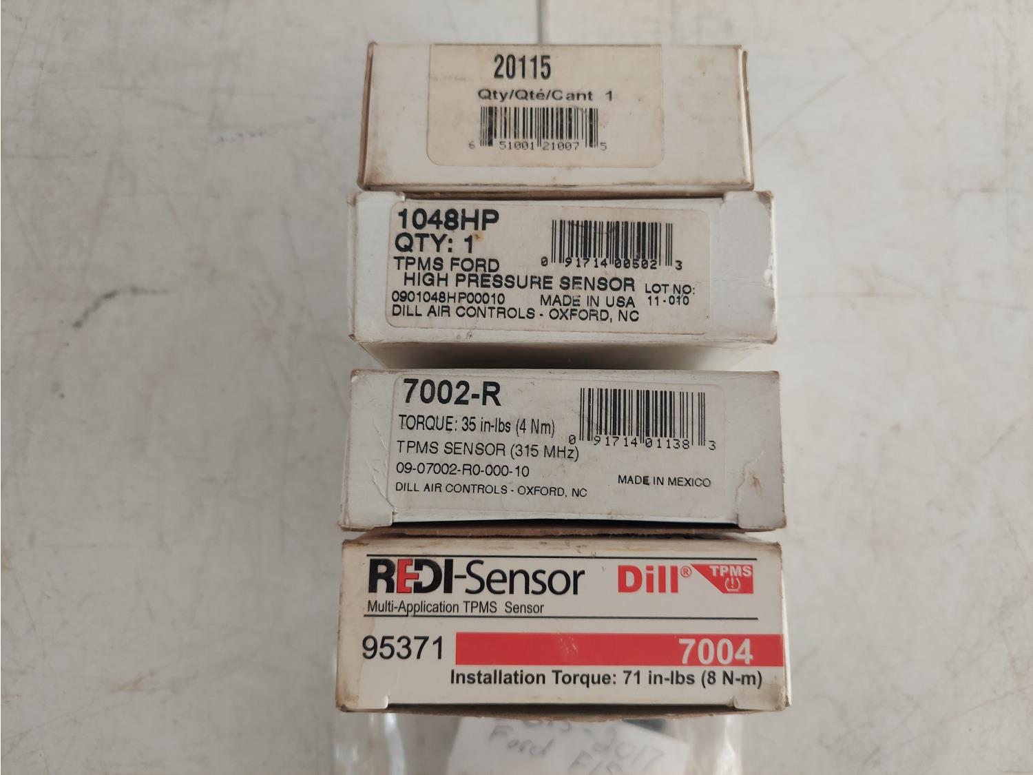 part numbers include (1) 7004, (1) 7002-R, (1) 1048HP, (1) 20115, and (1) 2015 to 2017 Ford F150 sensor