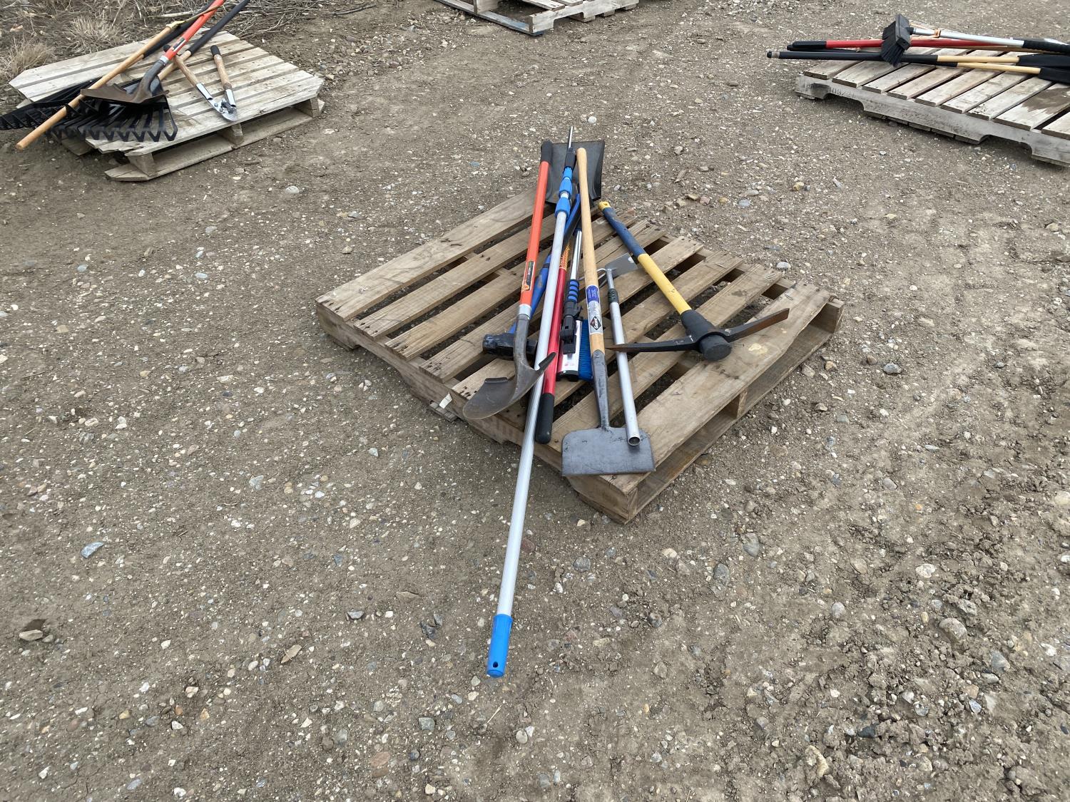 includes shovels, pickaxe, sledgehammer, squeegee