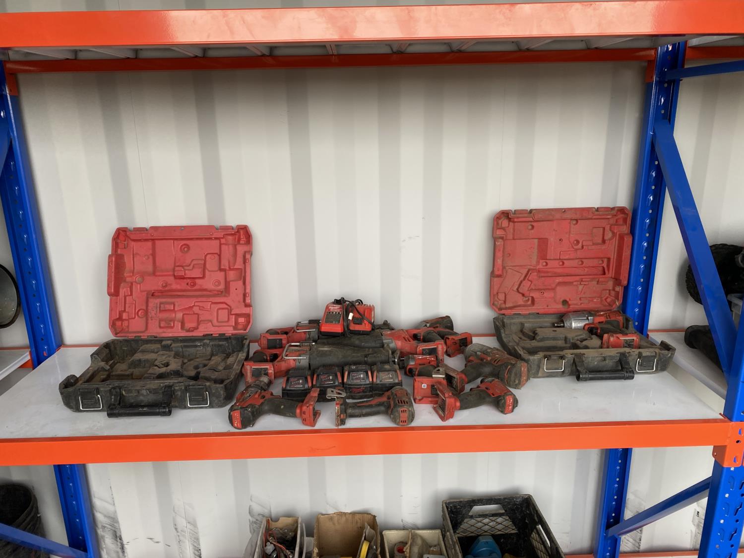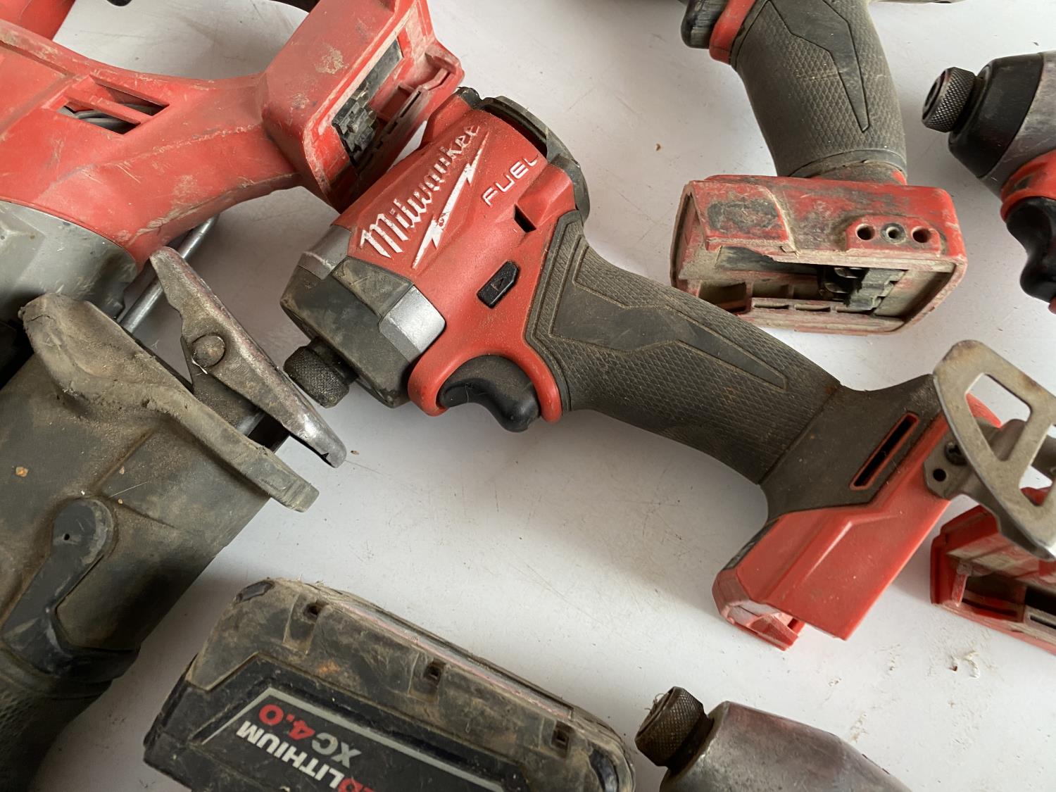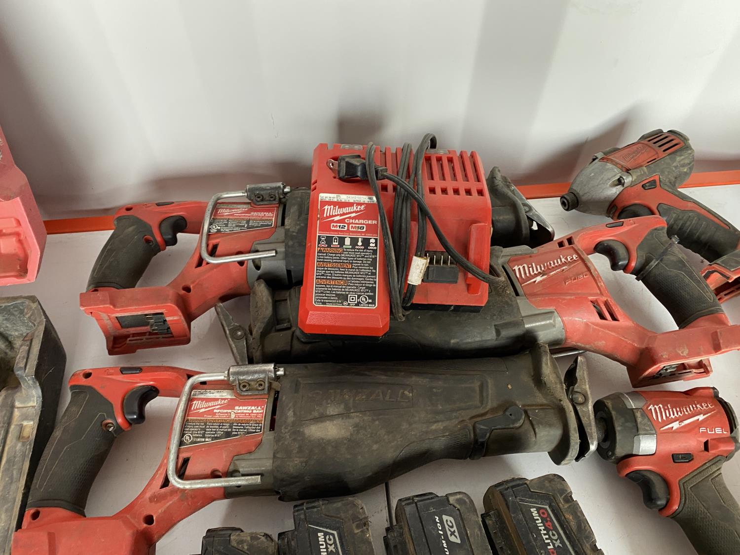 includes (3) reciprocating saws, (1) 3/4 inch impact wrench, (1) 1/2 inch impact wrench, (1) drill, (4) impact drivers, (4) batteries, (1) charger