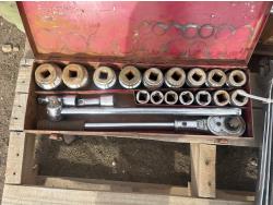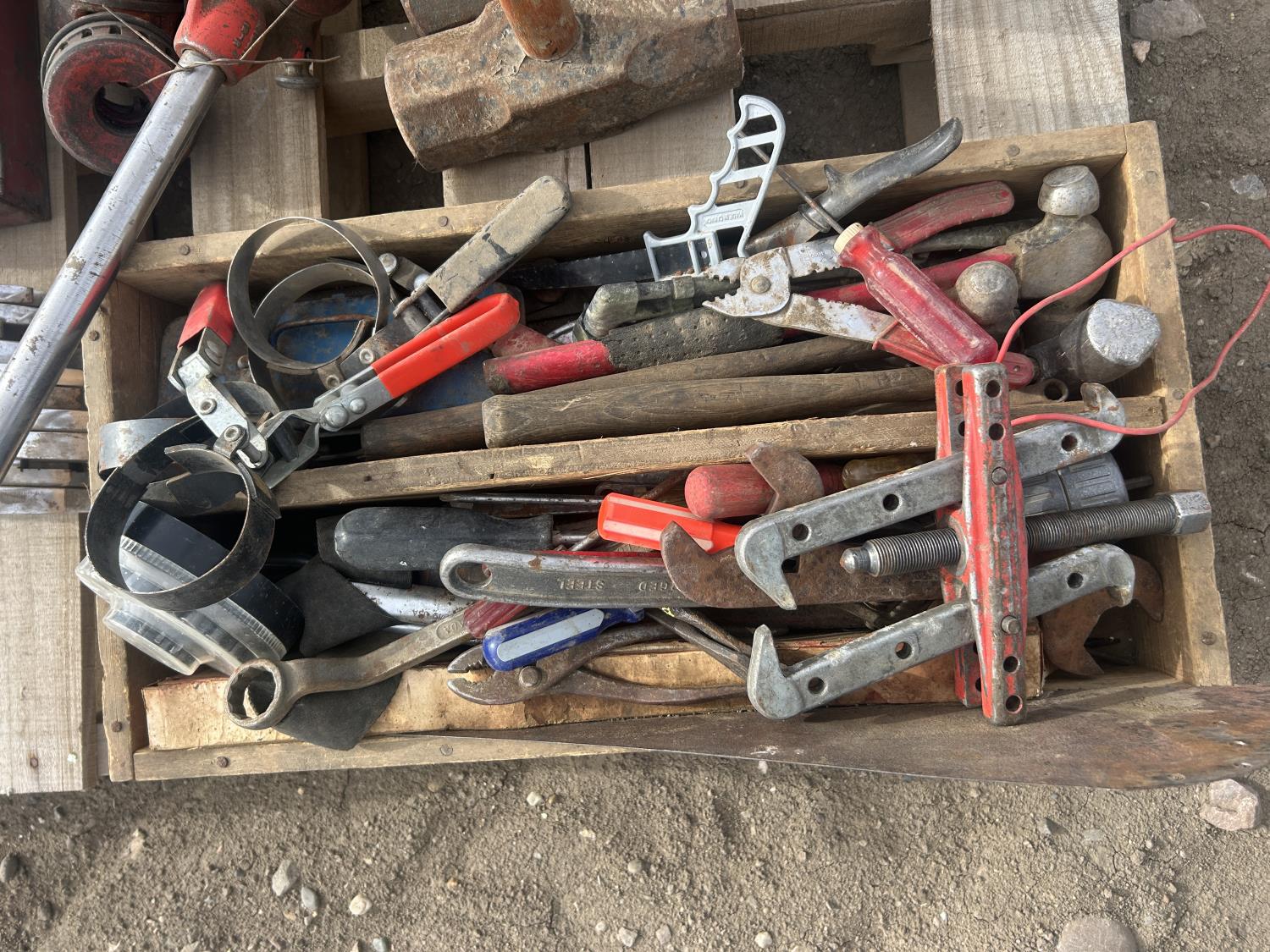 qty of miscellaneous imperial wrenches w/socket set, qty of (2) sledge hammers