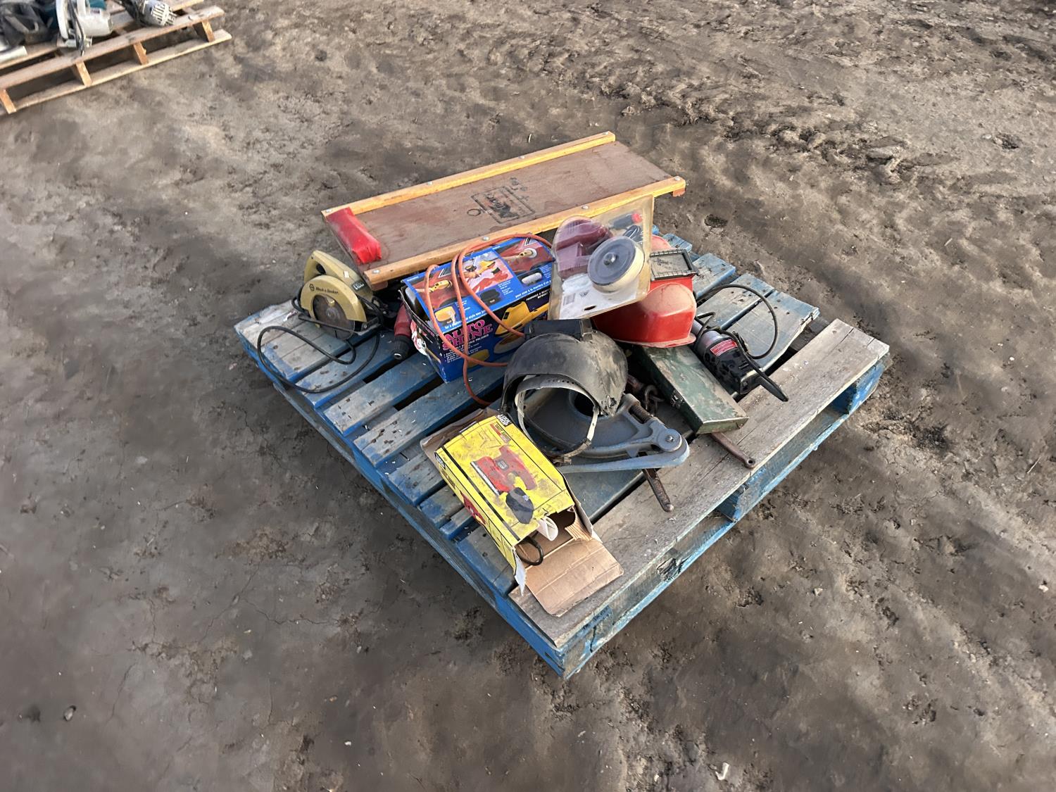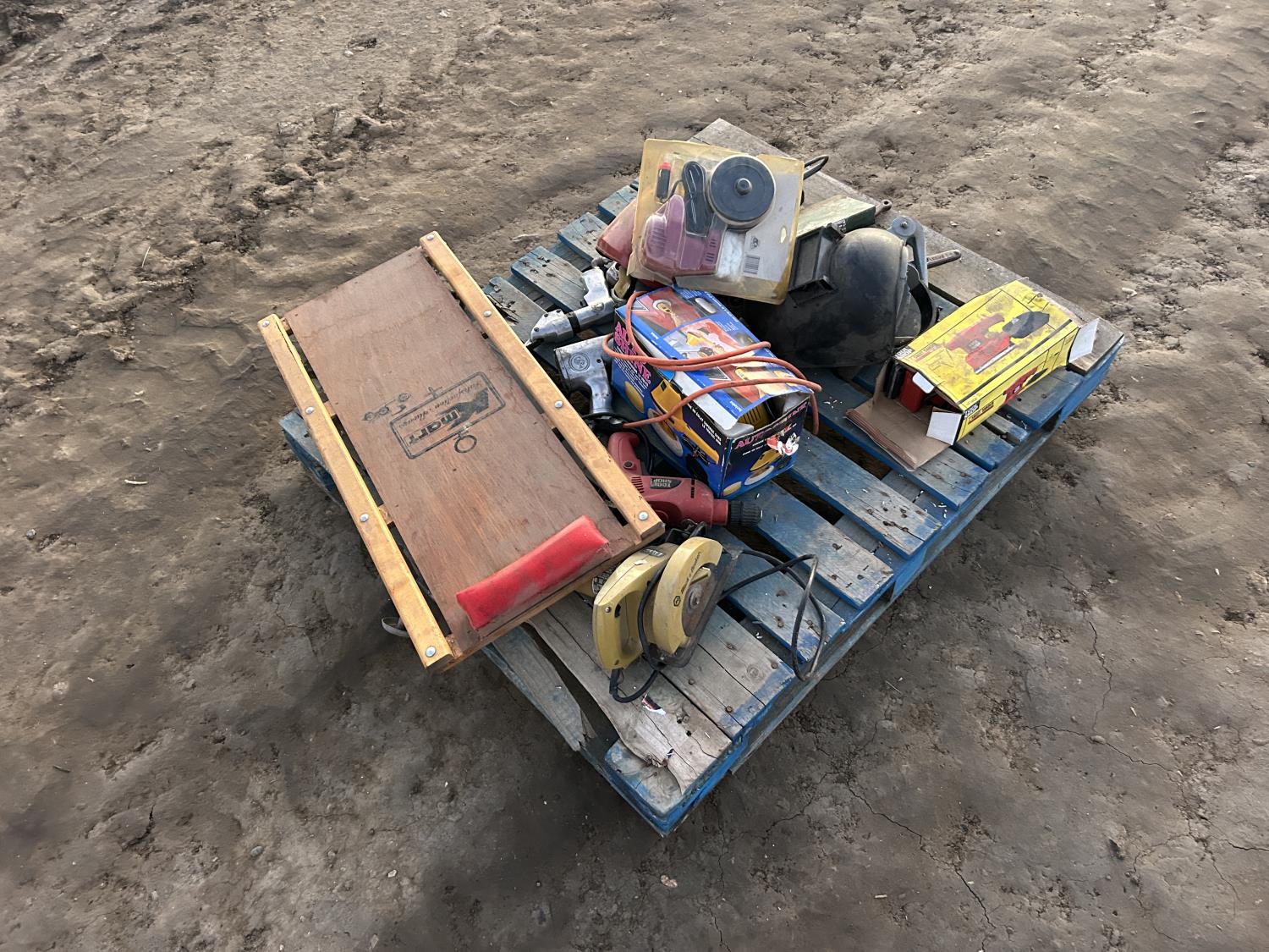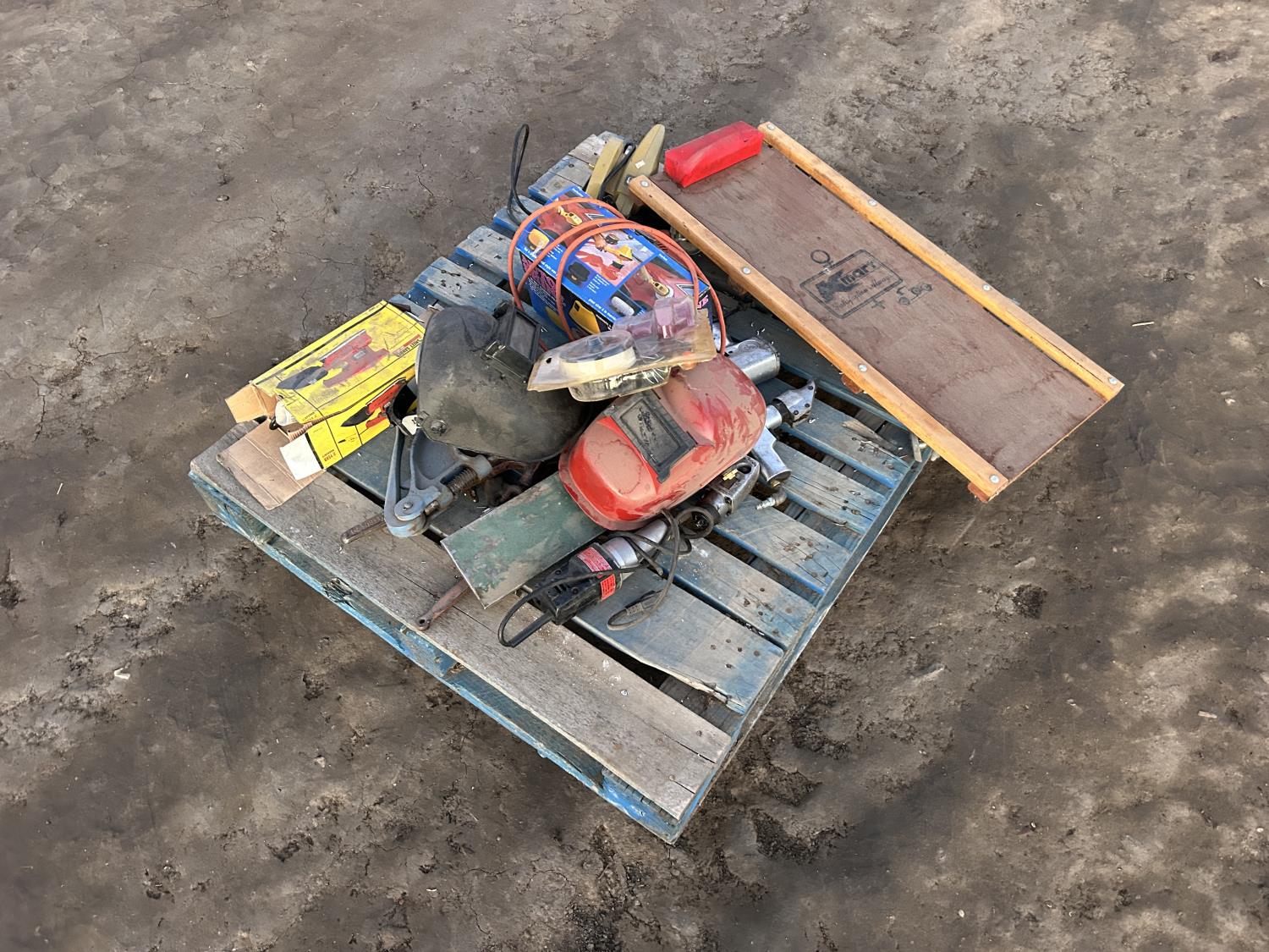 includes welding masks, creeper, palm sander, polisher