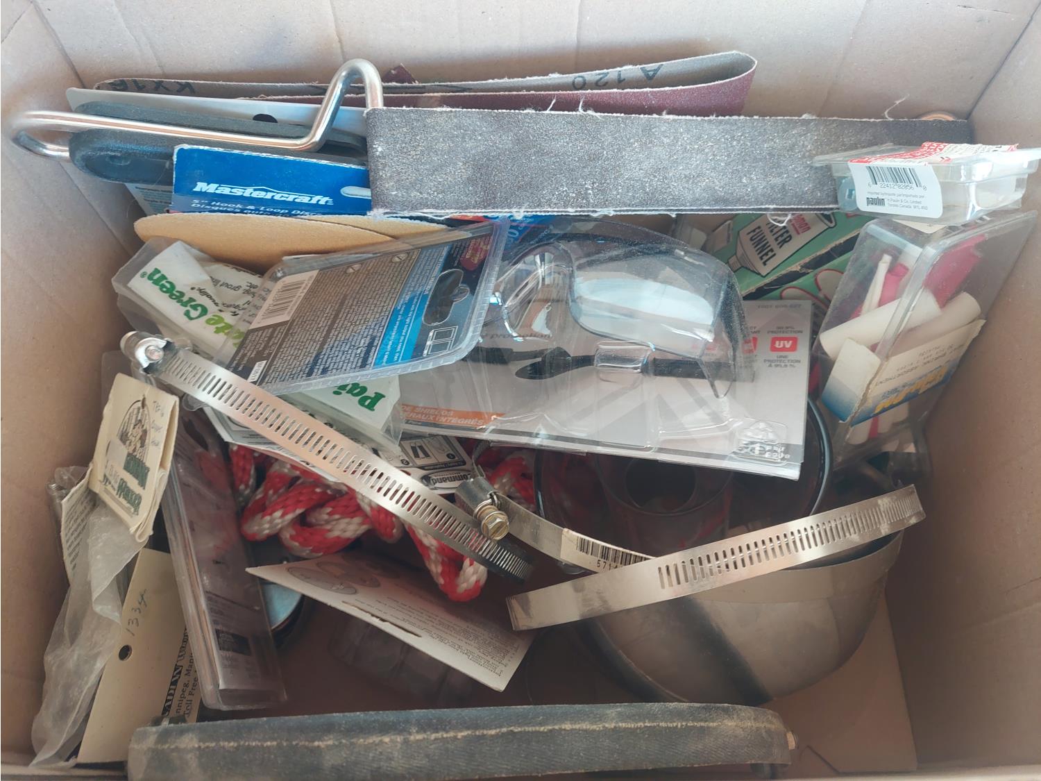 includes Greenlee fish tape, autobody file, sanding blocks, steel wool, and miscellaneous supplies