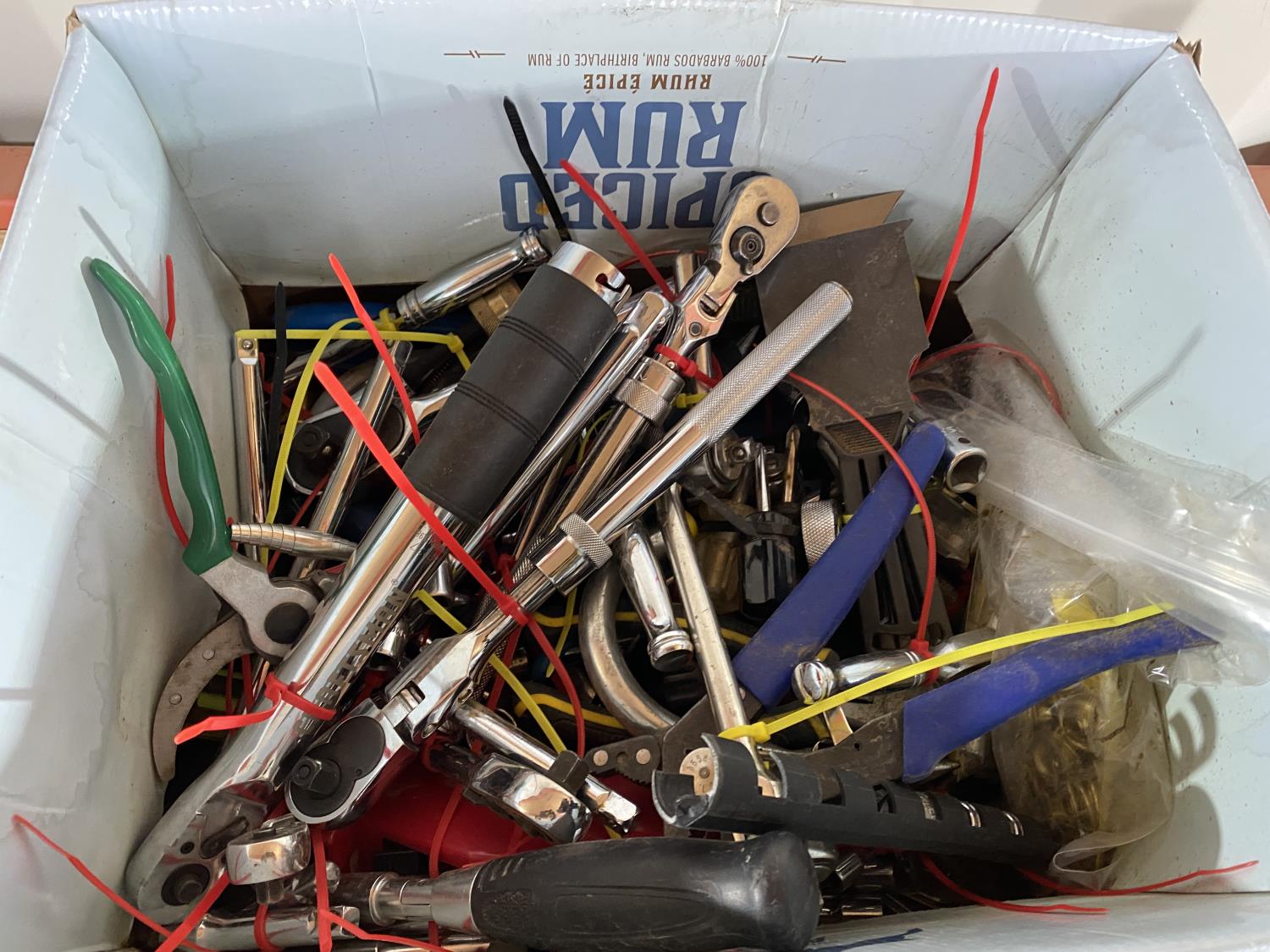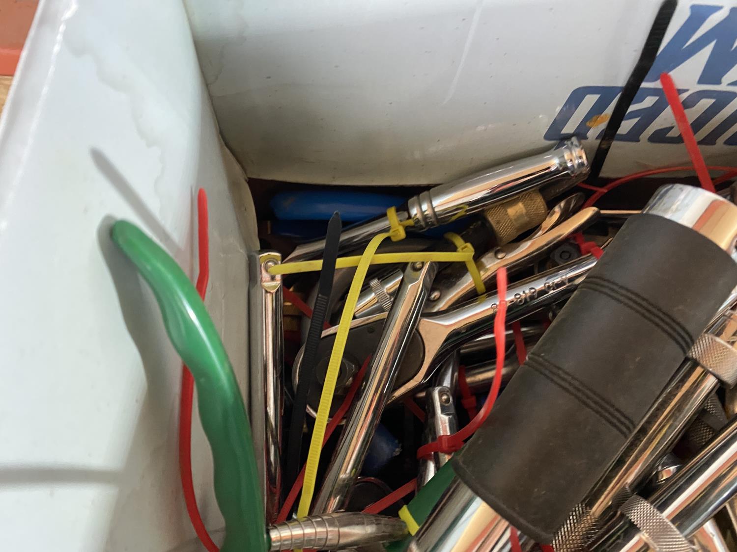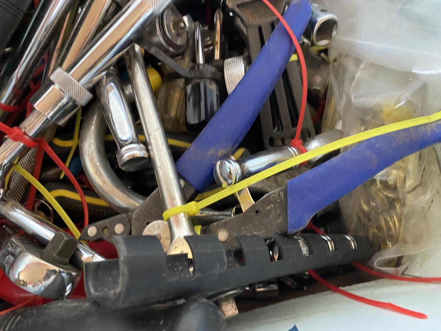 includes miscellaneous sockets, crescent wrenches, pliers, ratchet wrenches