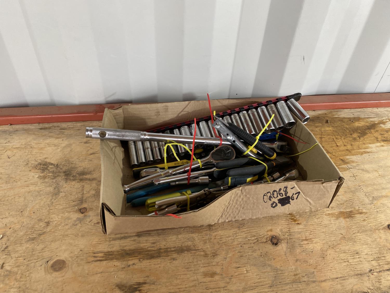 includes sockets, ratchet wrenches, pliers