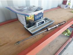 includes poly gauge, drill bits, wire brushes, micrometer, Timber Check moisture meter, 2 lb dead blower hammer, custombuilt dent puller, and square