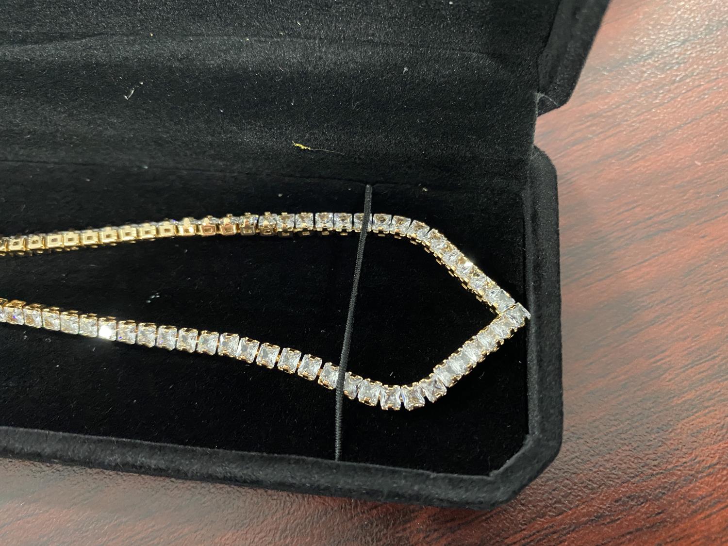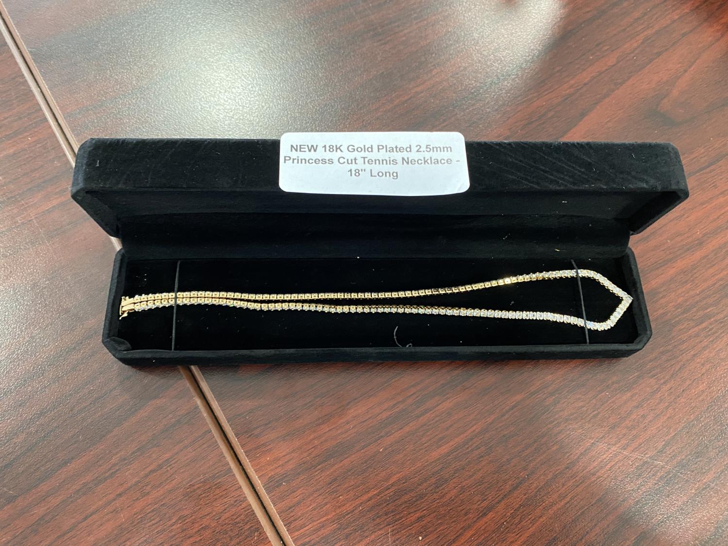 1046 Smartlife 18K Gold Plated 2.5 mm Princess Cut Tennis Necklace (Unused)