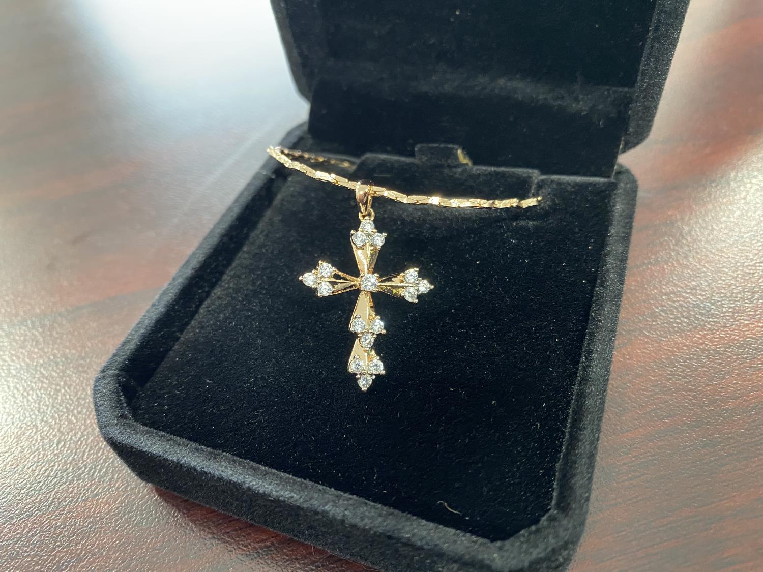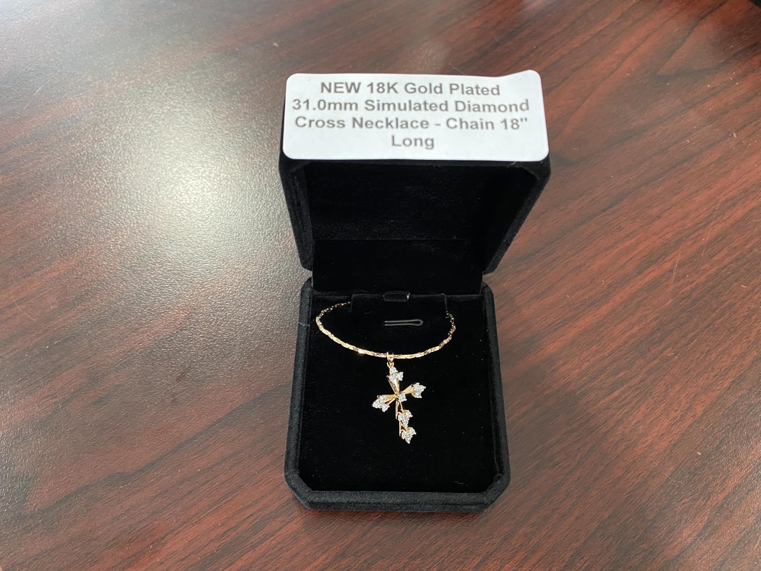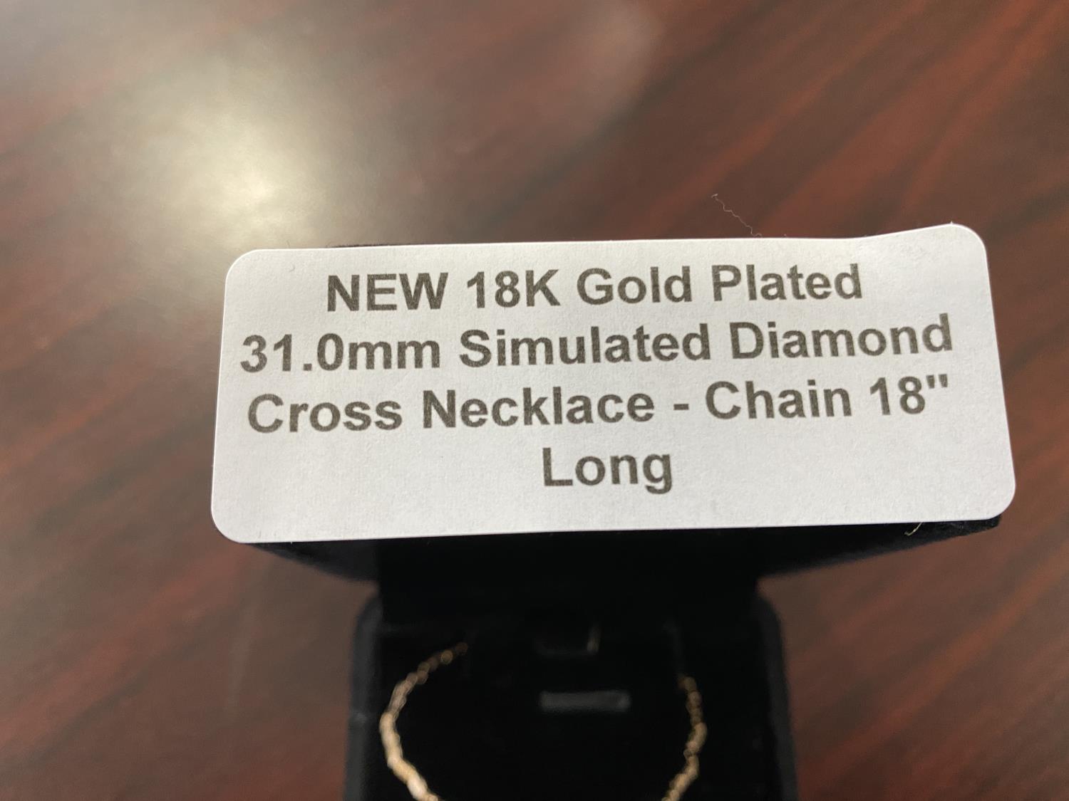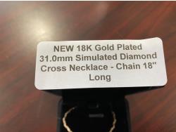 1041 Smartlife 18K Gold Plated 31 mm Simulated Diamond Cross Necklace (Unused)