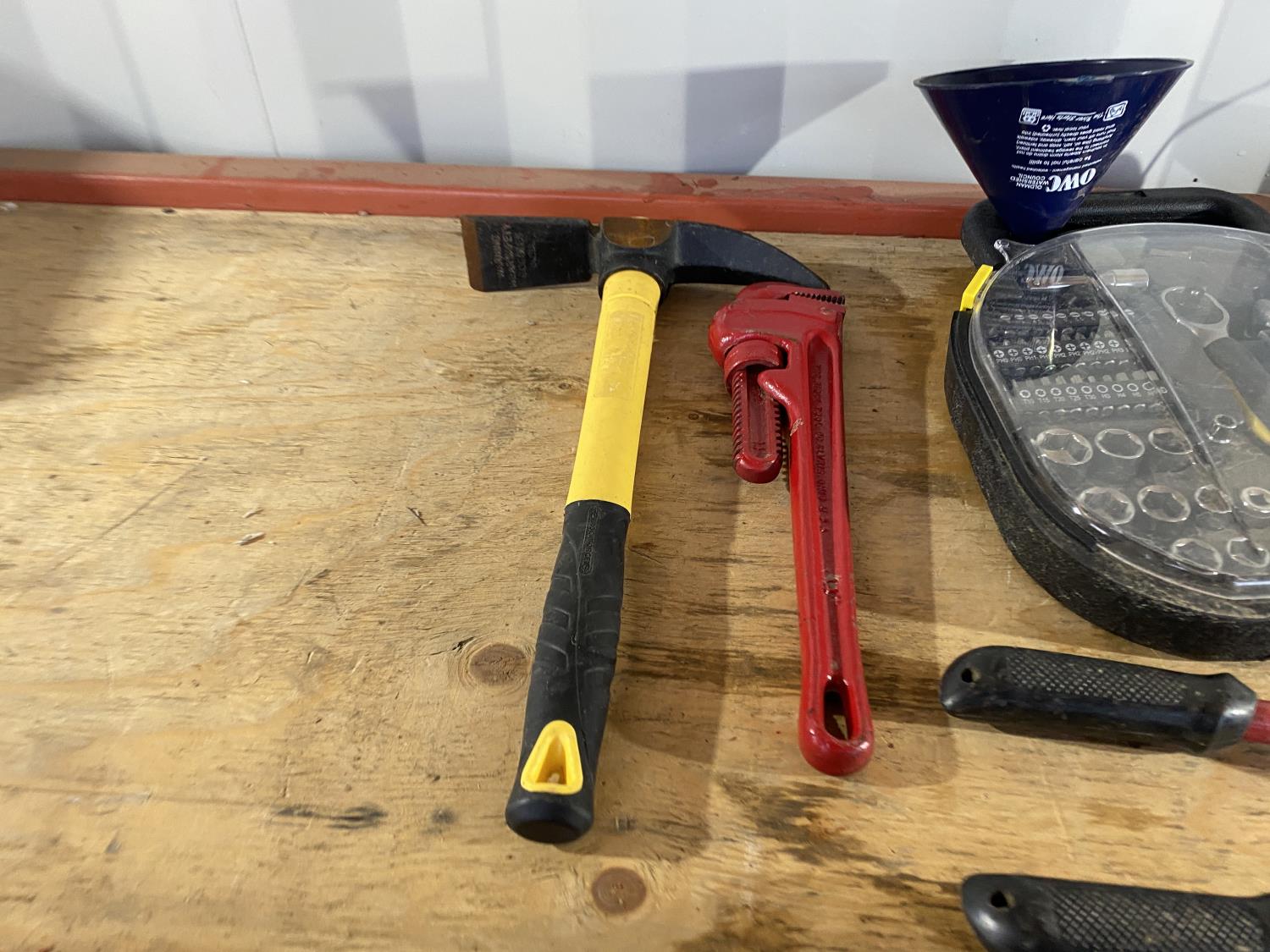 includes pickaxe, pipe wrenches, bolt cutters