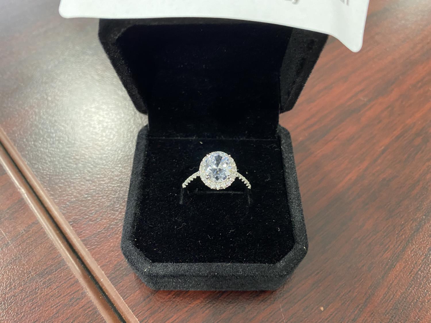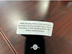 1055 Smartlife Sterling Silver 3.0Ct Simulated Diamond Halo Ring (Unused)