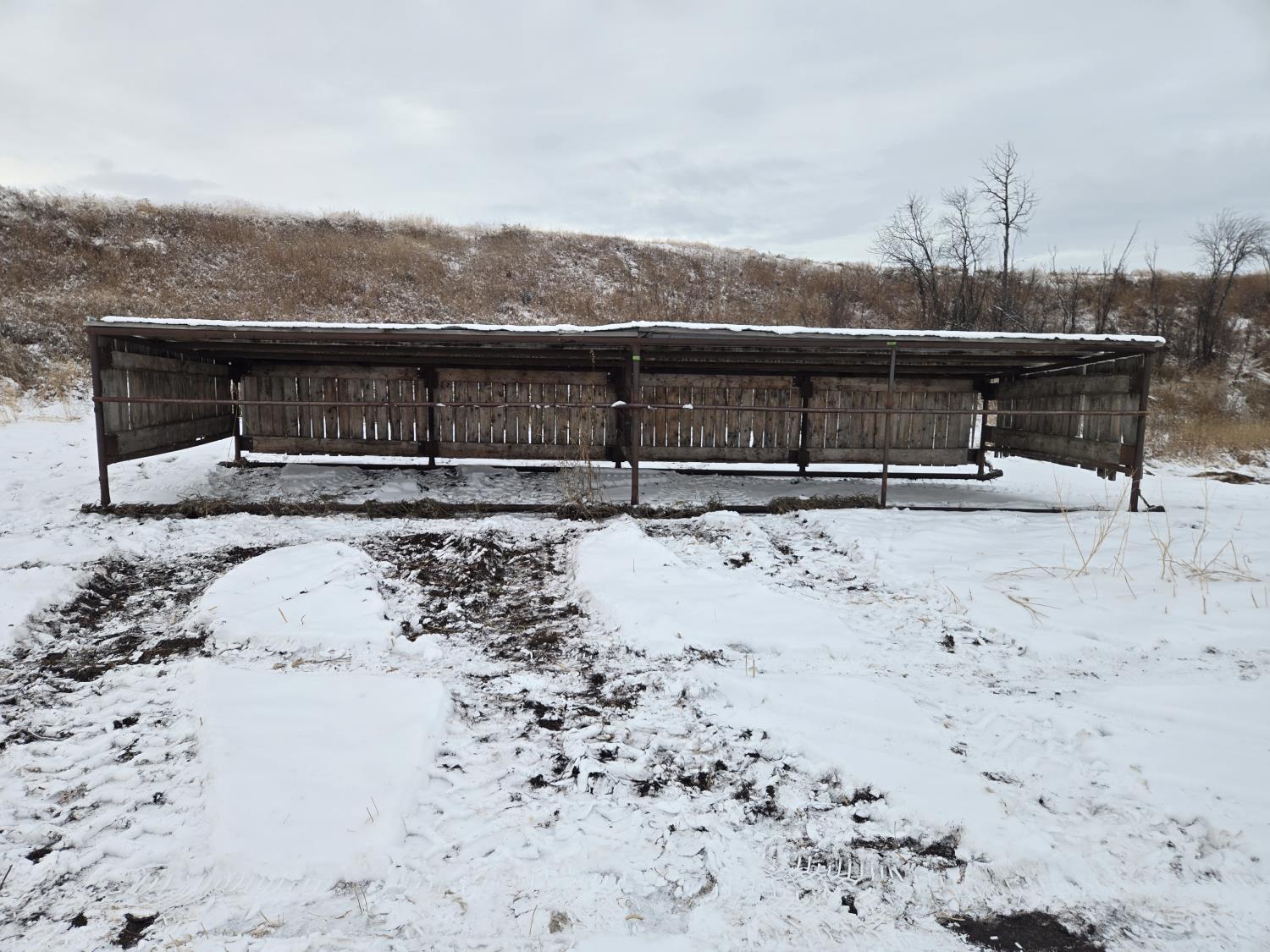64 inch high in front, 54 inch high in back, pipe frame, wooden wall, metal roof
