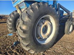Ezee-On 80-90 loader, 72 inch bucket, Ford 4.2 L 4 cylinder 96 HP, diesel engine, 84 PTO HP, 8 speed manual transmission, cab, 540 PTO, 3 point hitch, 3 rear hydraulic outlets, 10.00-16 front tires, 18.4-34 rear tires