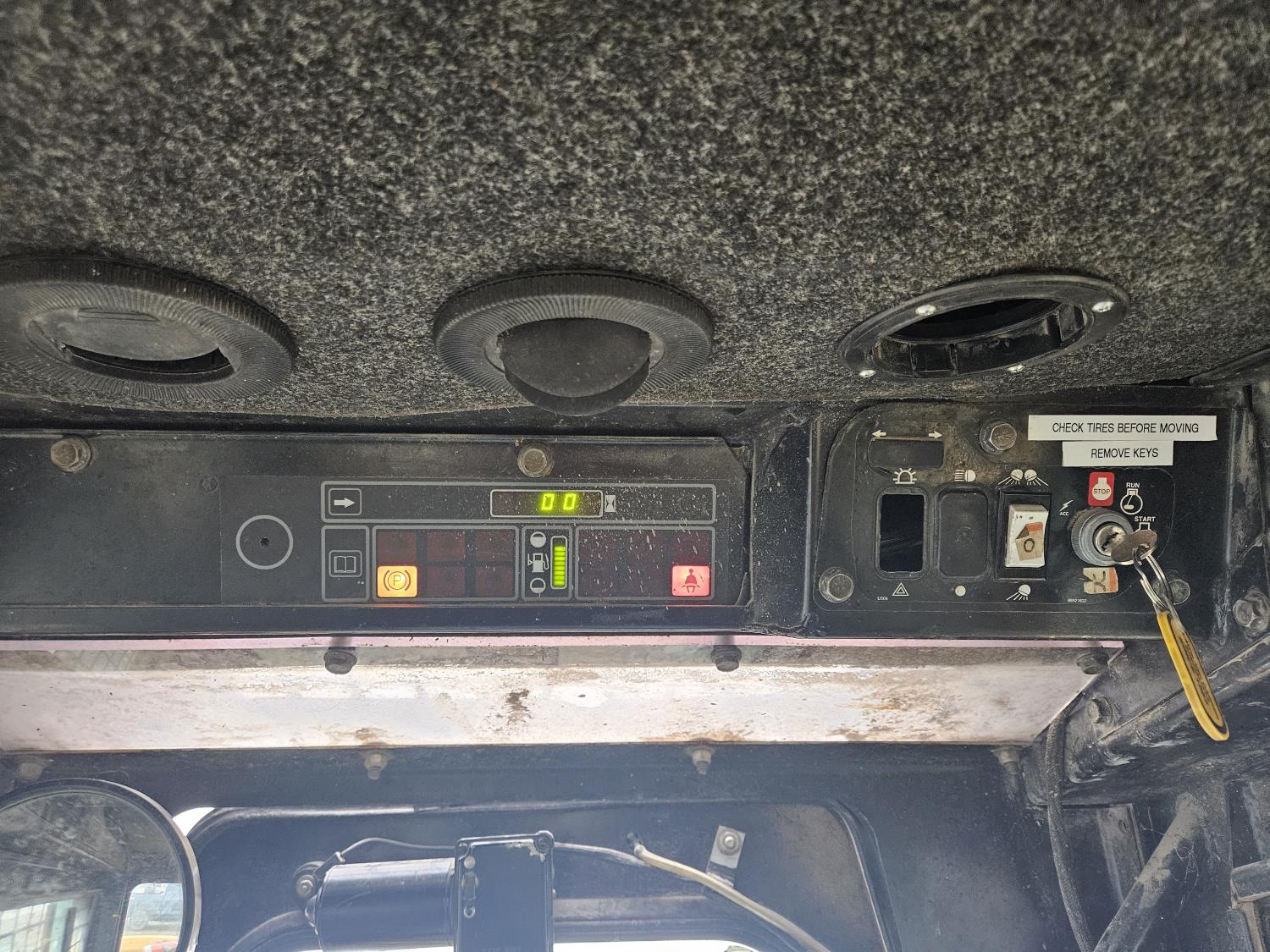 Enclosed cab, A/C, diesel engine, manual coupler, 1 auxiliary hydraulics, 12-16.5 tires