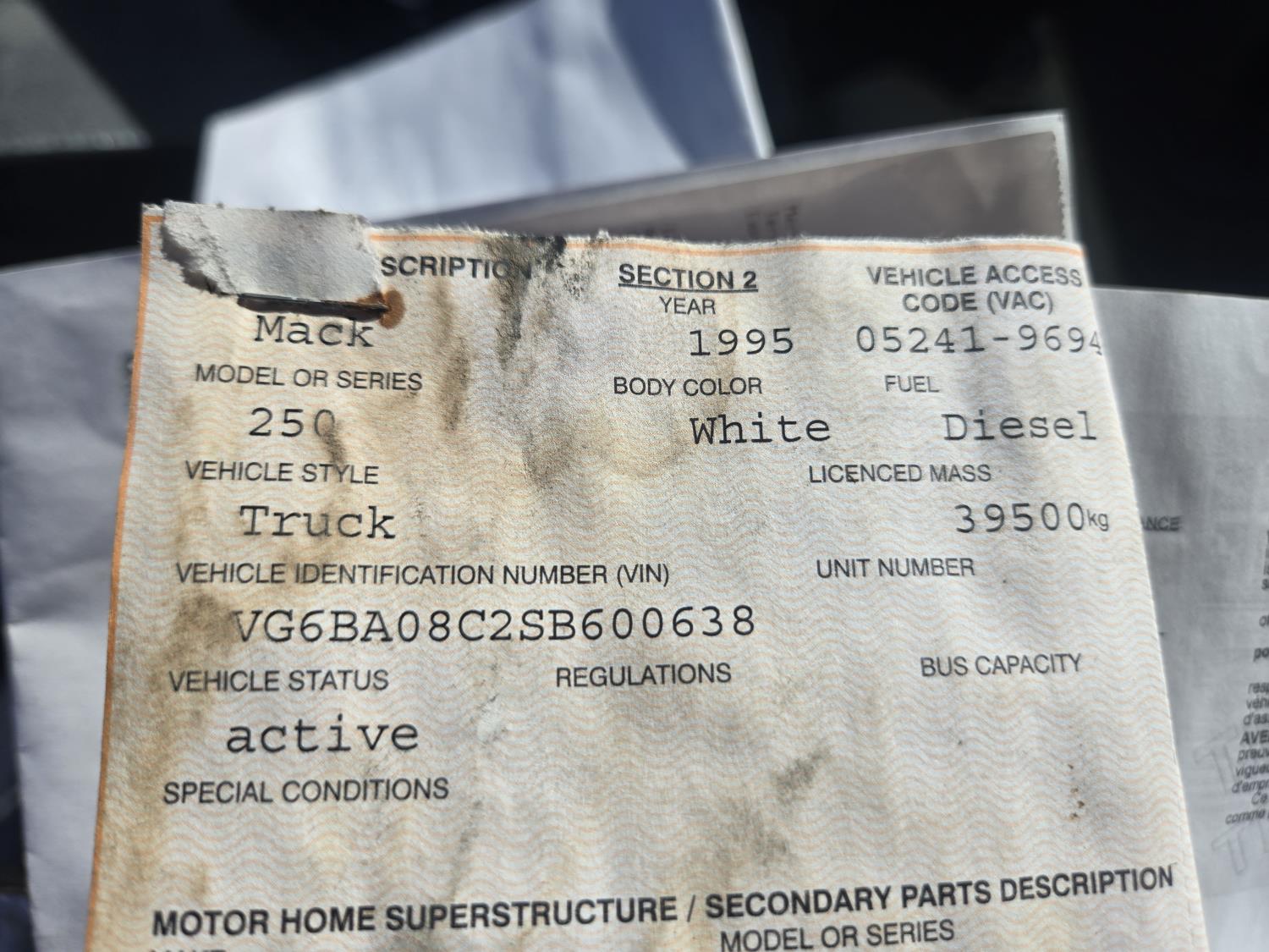 1995 Mack CS250P S/A 26 Ft Round Bale Picker Truck