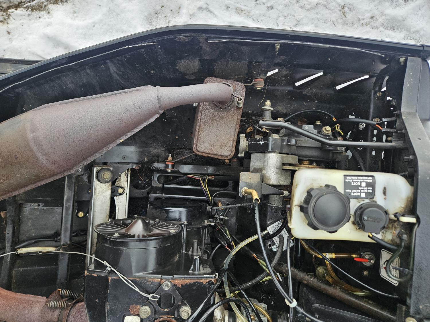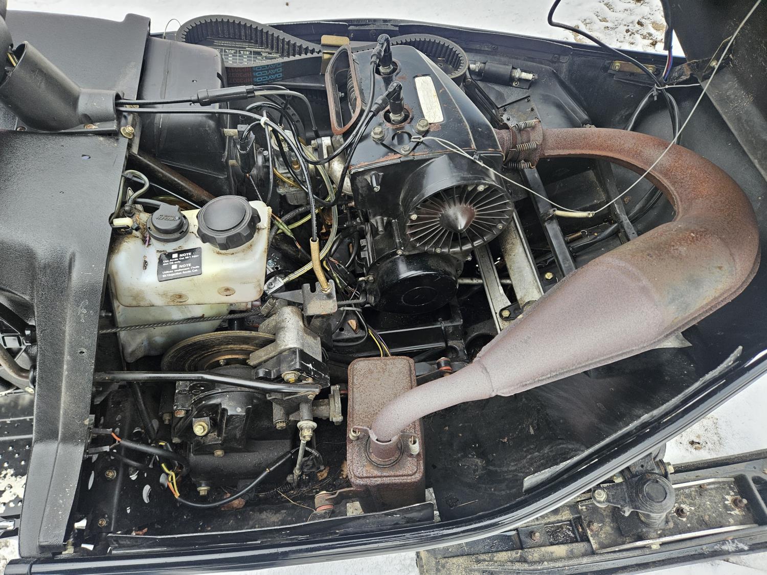 440 cc 2 cylinder 2 stroke Fan cooled engine, reverse, windshield, hand and thumb warmers, 136 inch long track, 15 inch wide track, .5 inch paddles, rear tow hitch