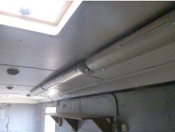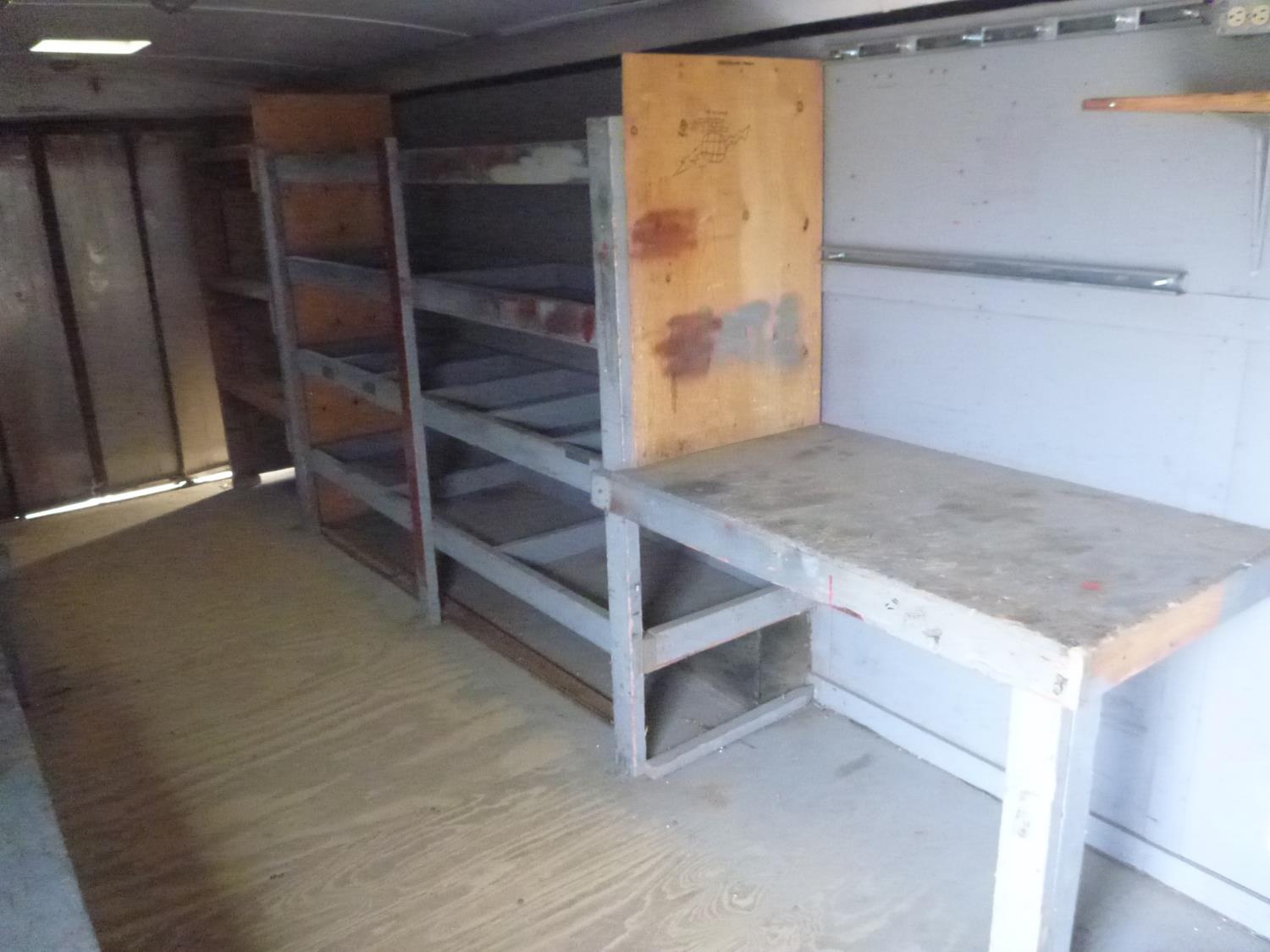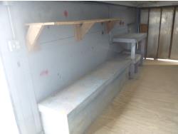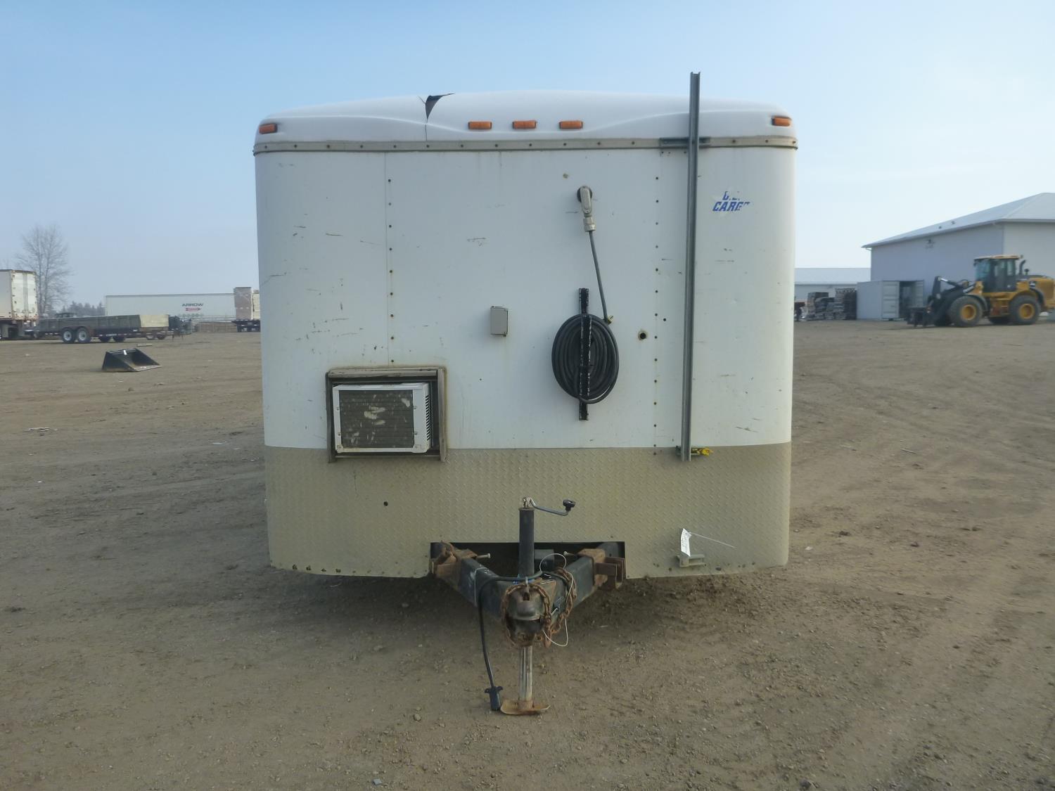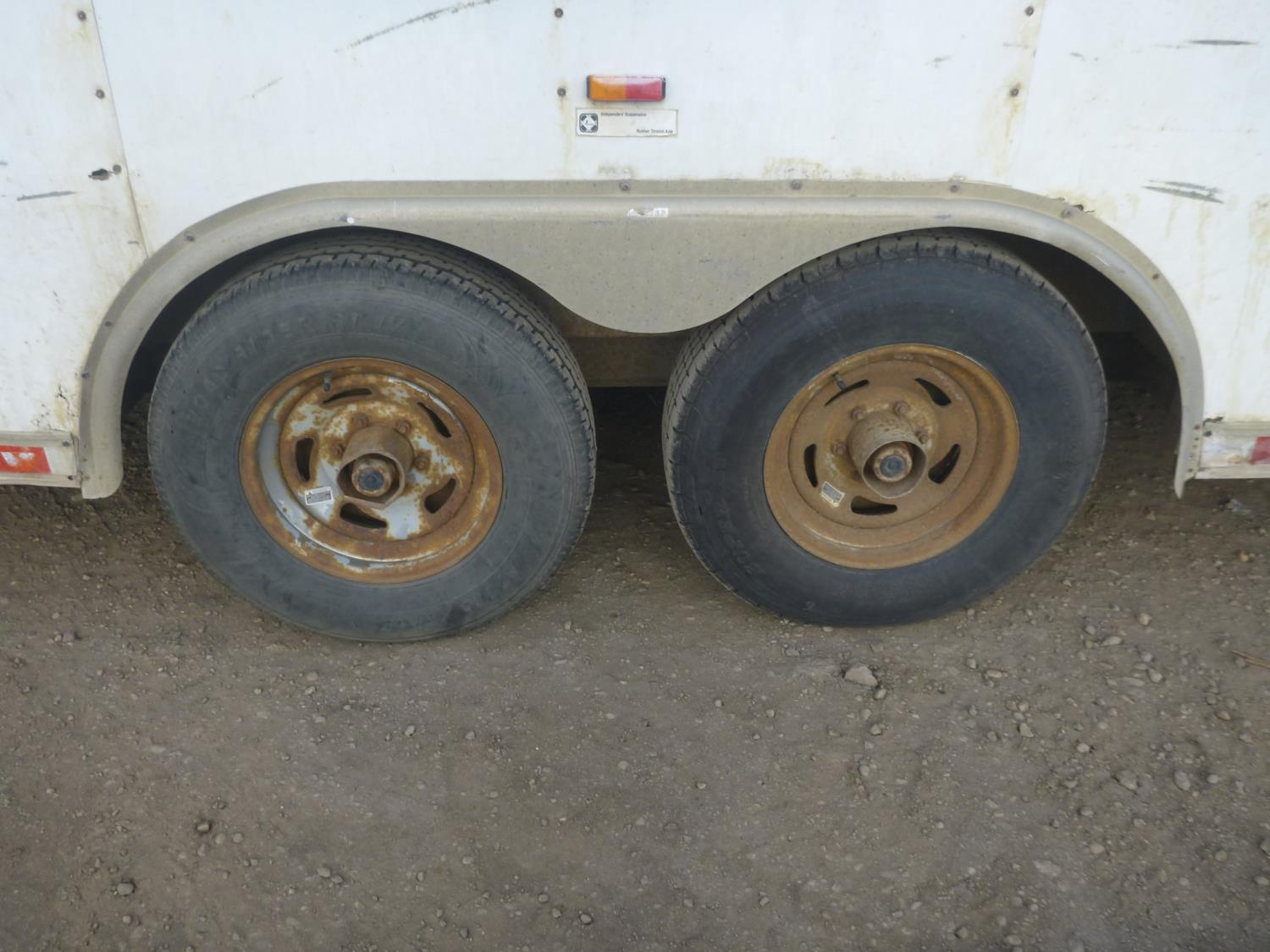 ball hitch, side door, fold down door, electric brakes, torsion suspension, 2-5/16 ball, back door is damaged, power, a/c unit, shelving, ST235/75R15 tires