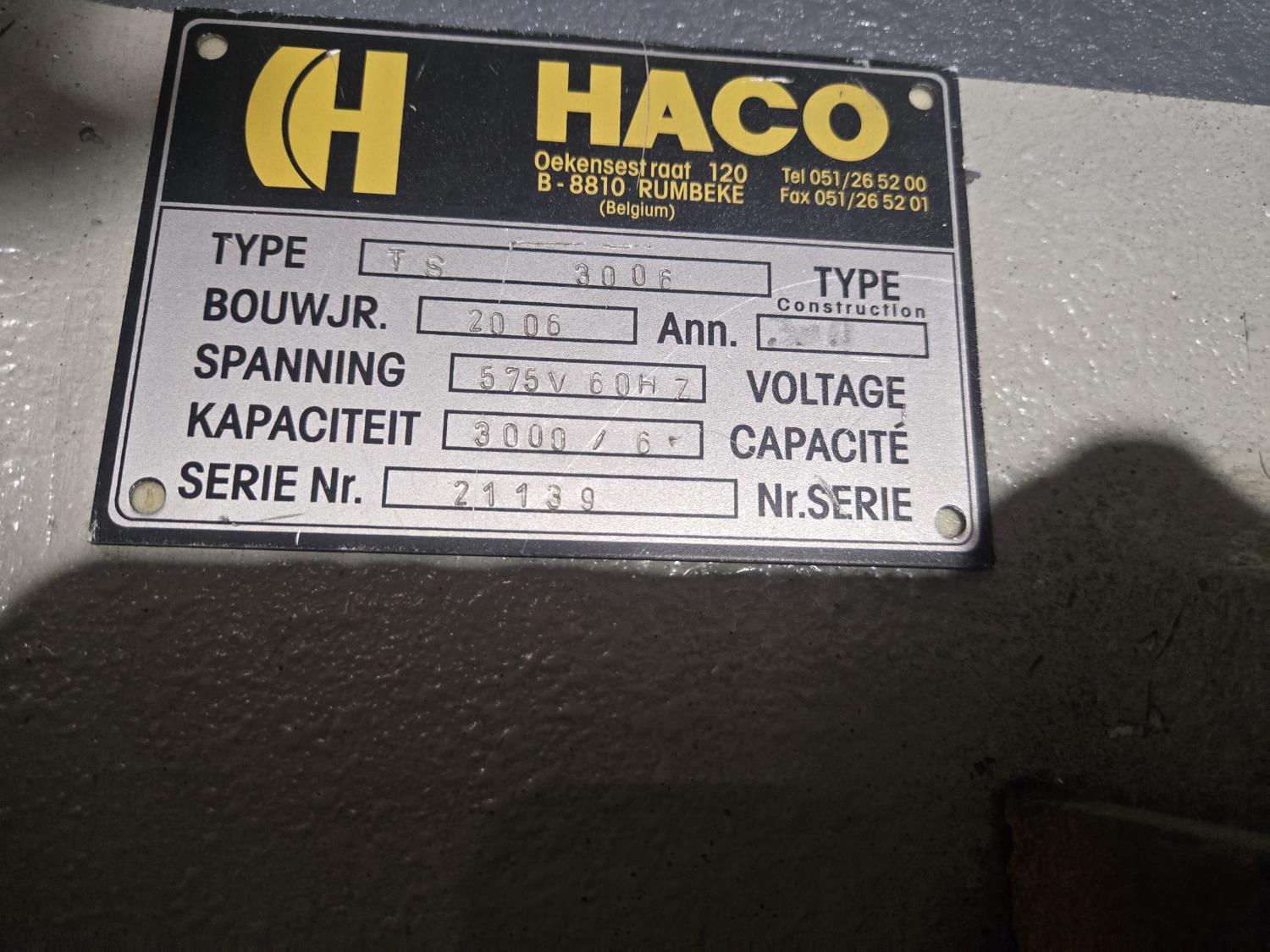 62 2006 Haco International Group TS3006 Hydraulic Guillotine Shear