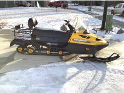 550 cc Rotax 2 cylinder Fan cooled engine, electric start, hand and thumb warmers, 24 inch wide track, Hi/Lo/Reverse transmission, long seat, track was recently replaced