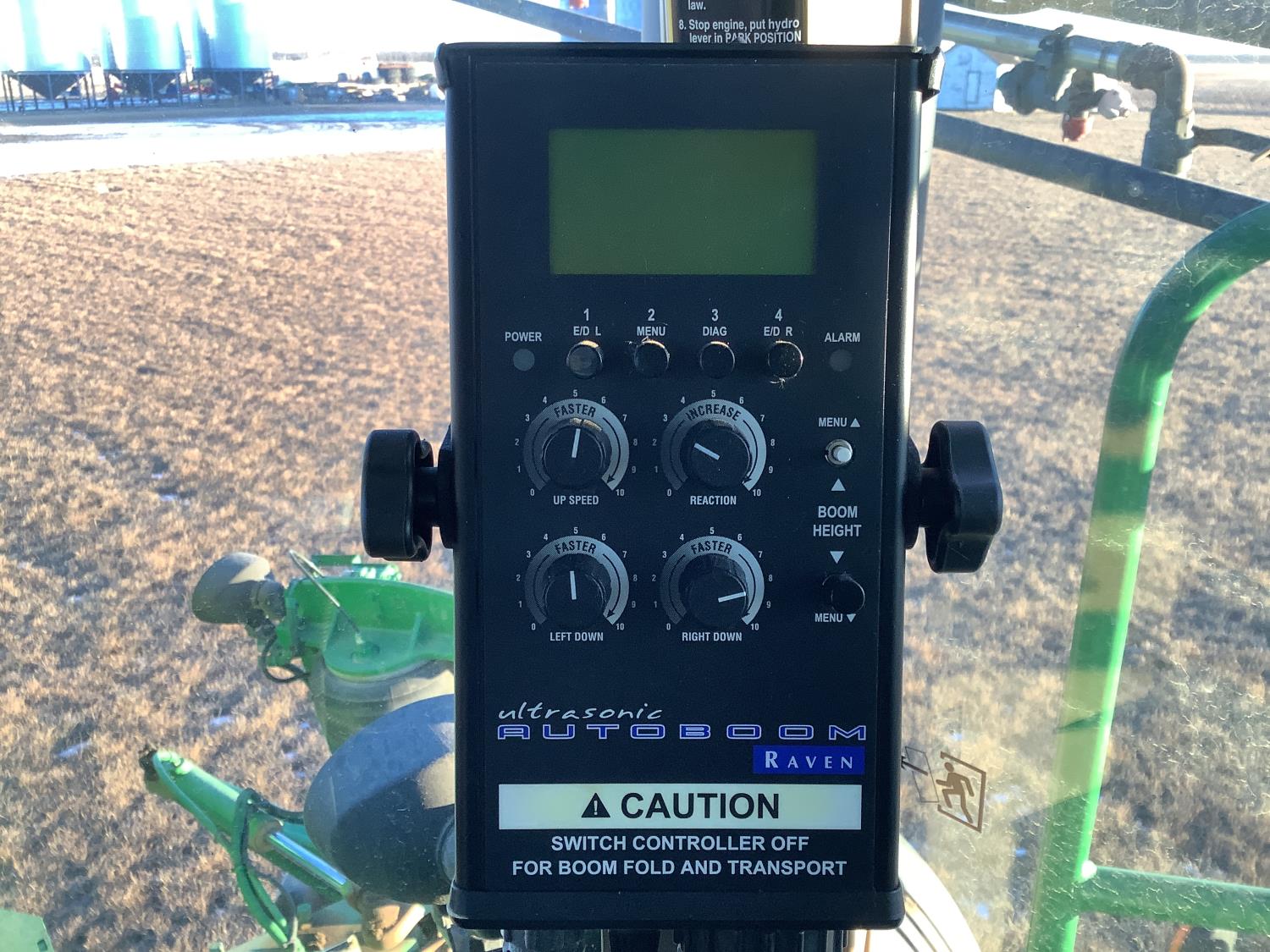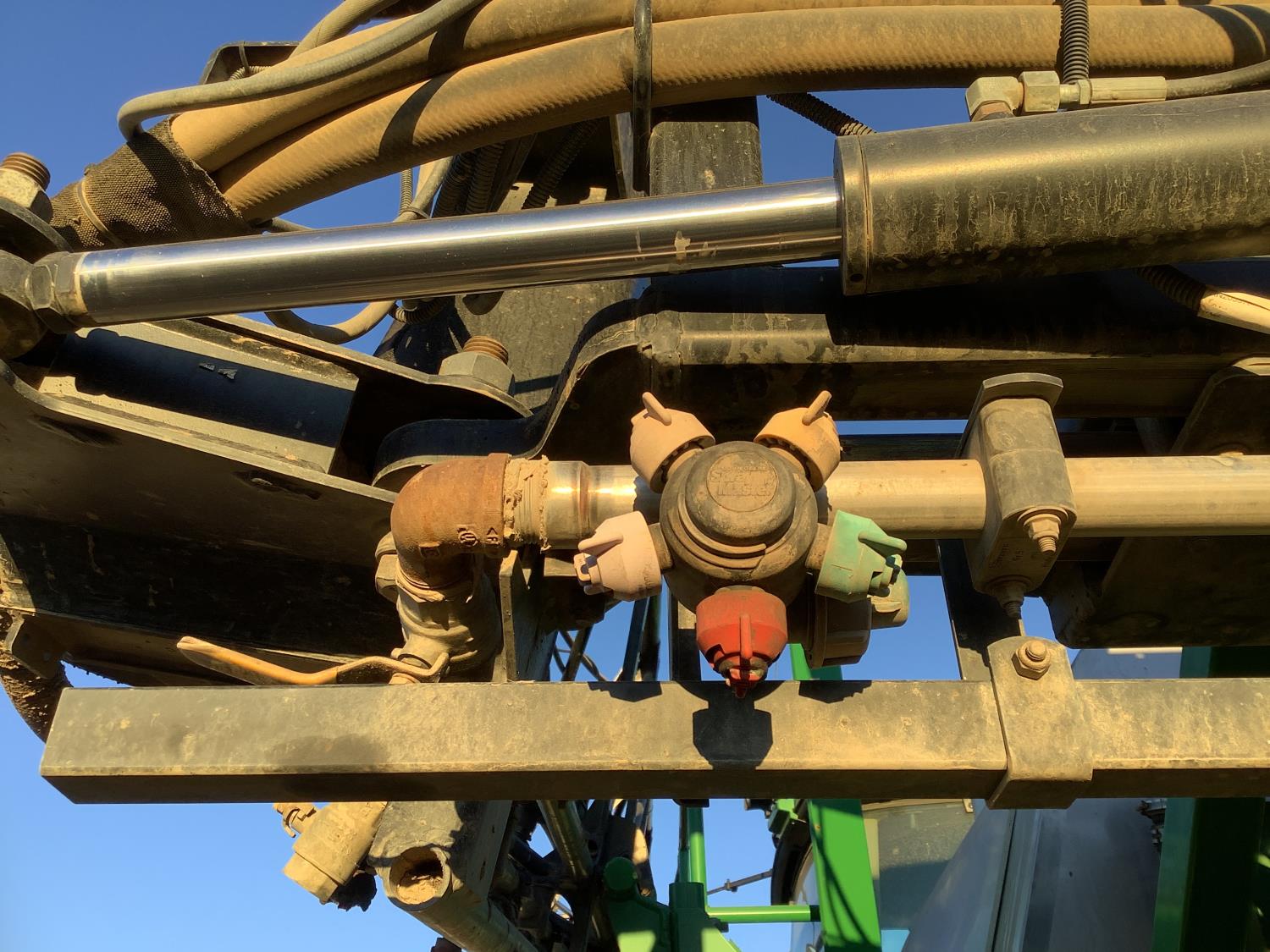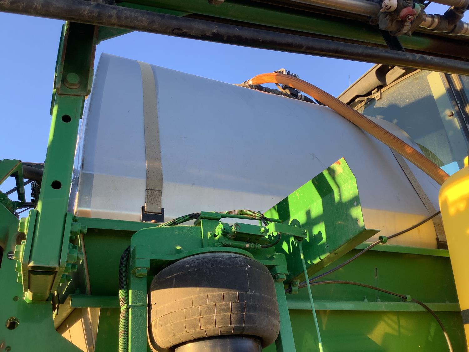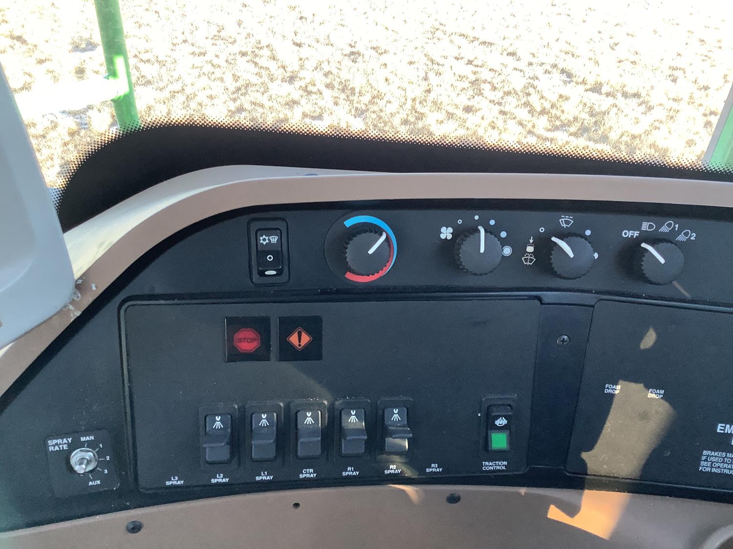 800 US gallon stainless steel tank, 5 nozzle bodies, Raven auto boom height, A/C, radio, buddy seat, Auto Guidance Steering, monitor, GPS, sectional control, auto boom leveling, Chemhandler, fenders, 520/85R38 tires