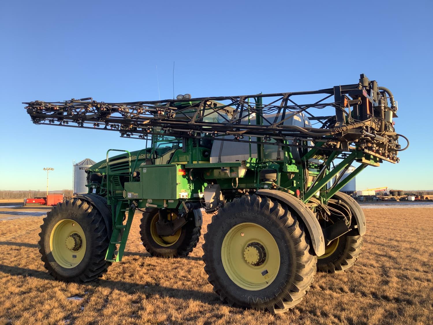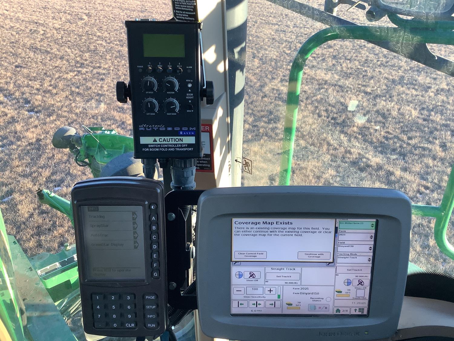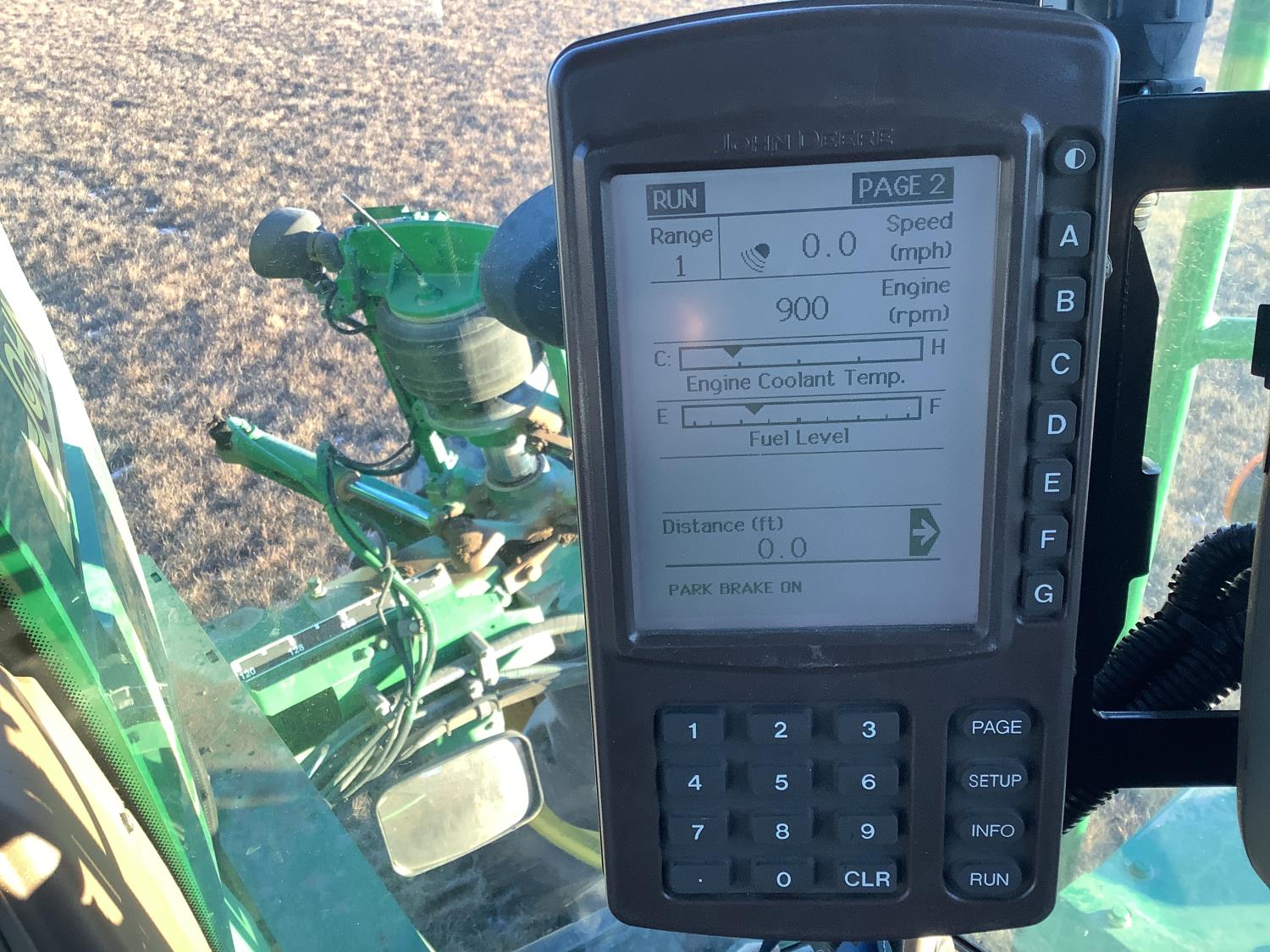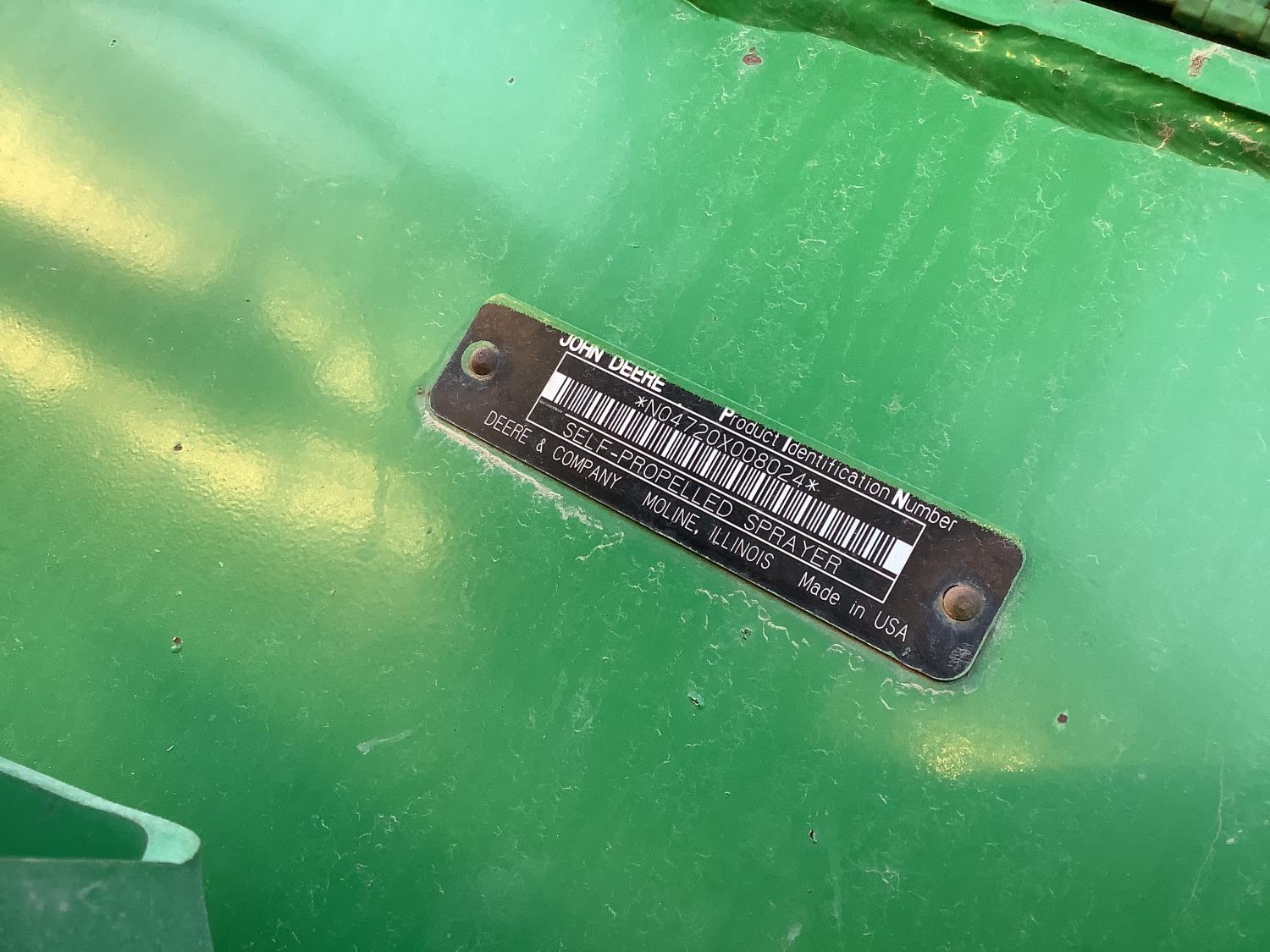 800 US gallon stainless steel tank, 5 nozzle bodies, Raven auto boom height, A/C, radio, buddy seat, Auto Guidance Steering, monitor, GPS, sectional control, auto boom leveling, Chemhandler, fenders, 520/85R38 tires