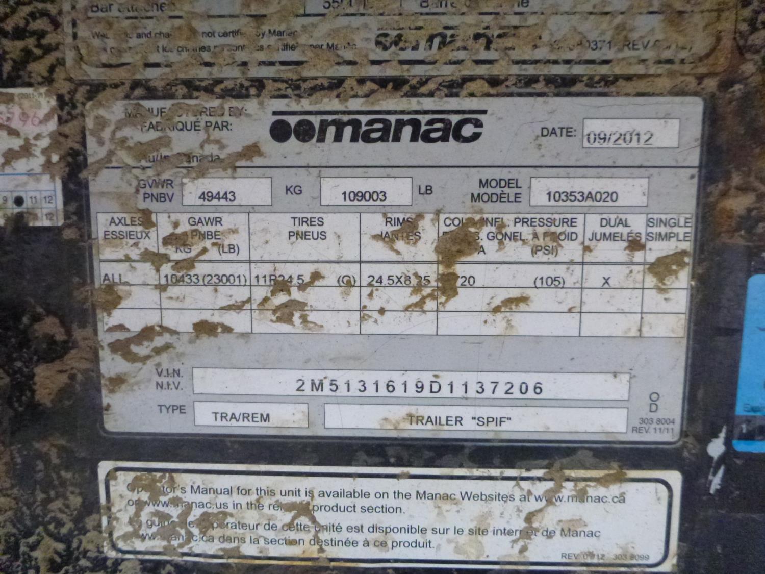 141 2013 Manac 53 Ft TRI/A Hiboy Trailer