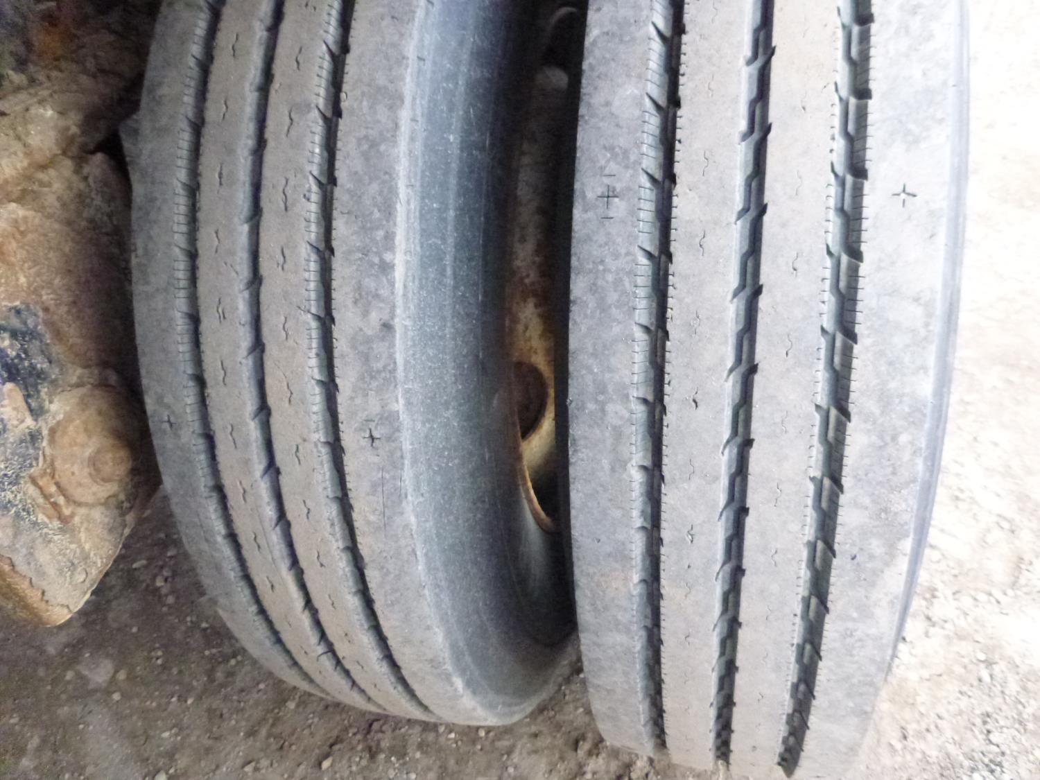 102 inch wide deck, wood deck, cargo winches, tool / storage box, air brakes, air load gauge, air ride suspension, 11R24.5 tires