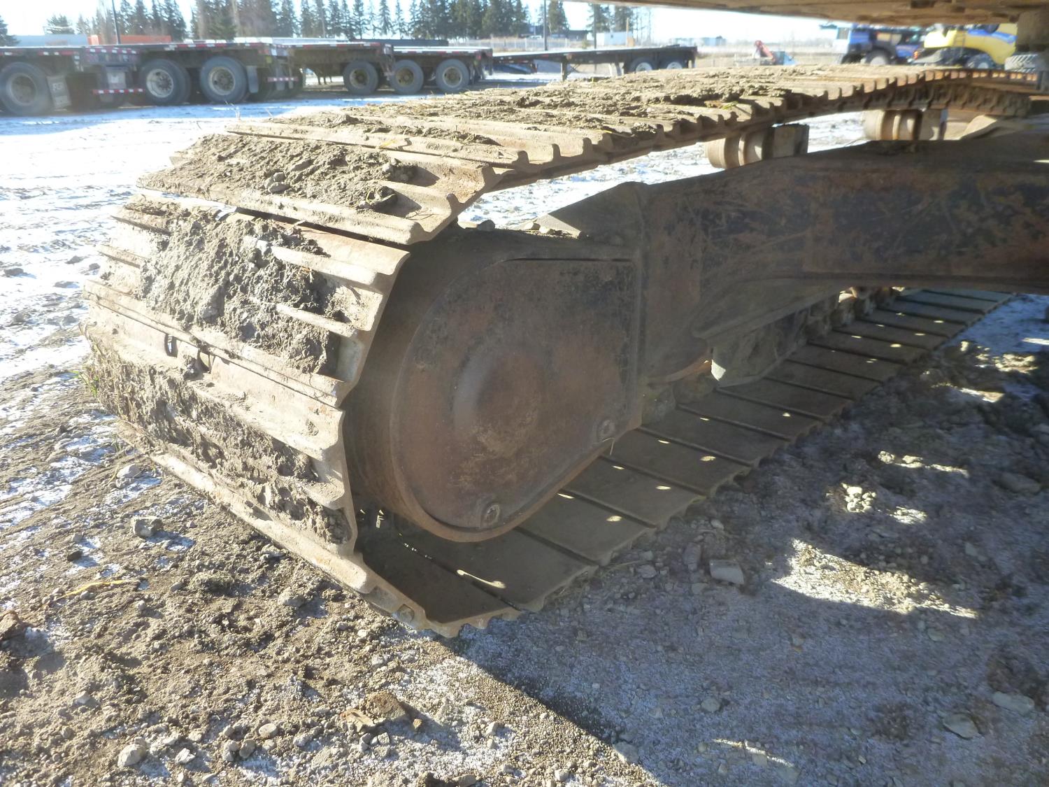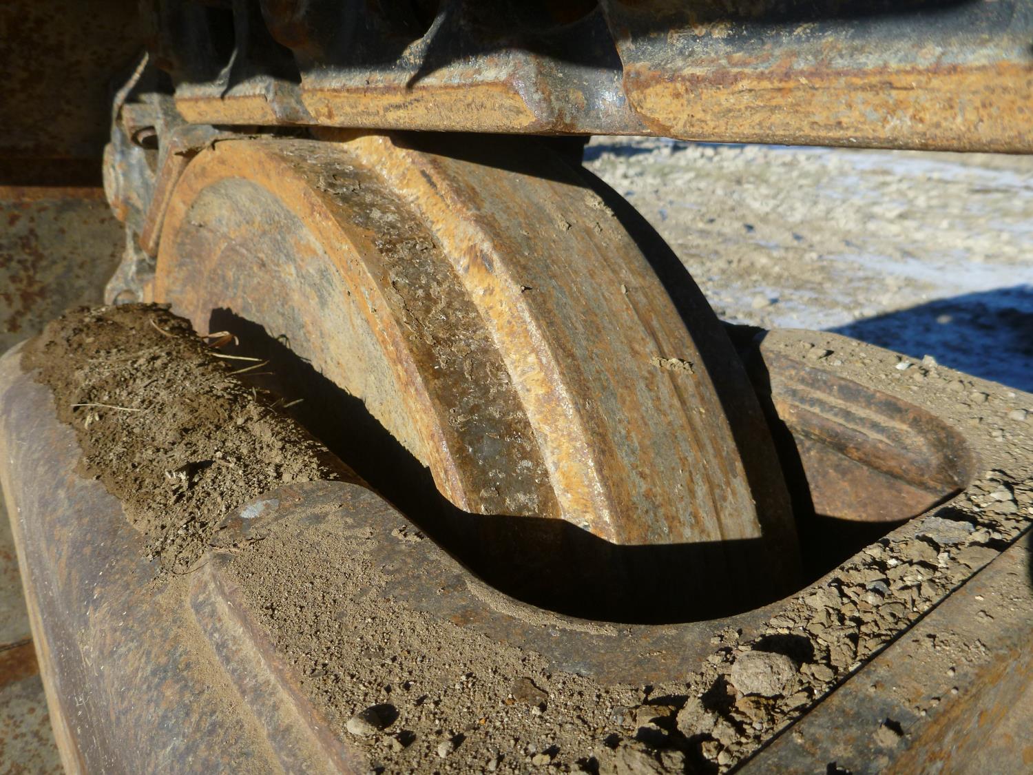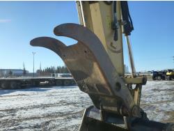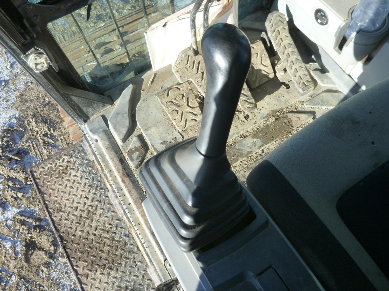 Enclosed cab, A/C, air ride seat, heated seat, rear view cameras, positive air shutoff, 60 inch cleanup bucket, manual coupler, hydraulic thumb, 2 auxiliary hydraulics, 8 Ft 3 inch stick, Caterpillar C6.6 Acert,, 31 inch track pads, triple grousers