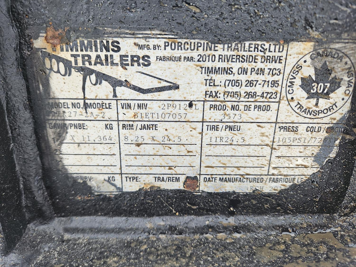 131 2014 Timmins 27 Ft T/A Log Trailer Pup