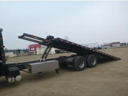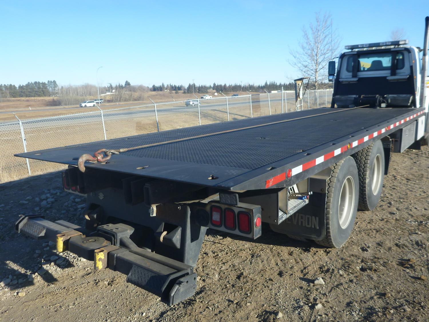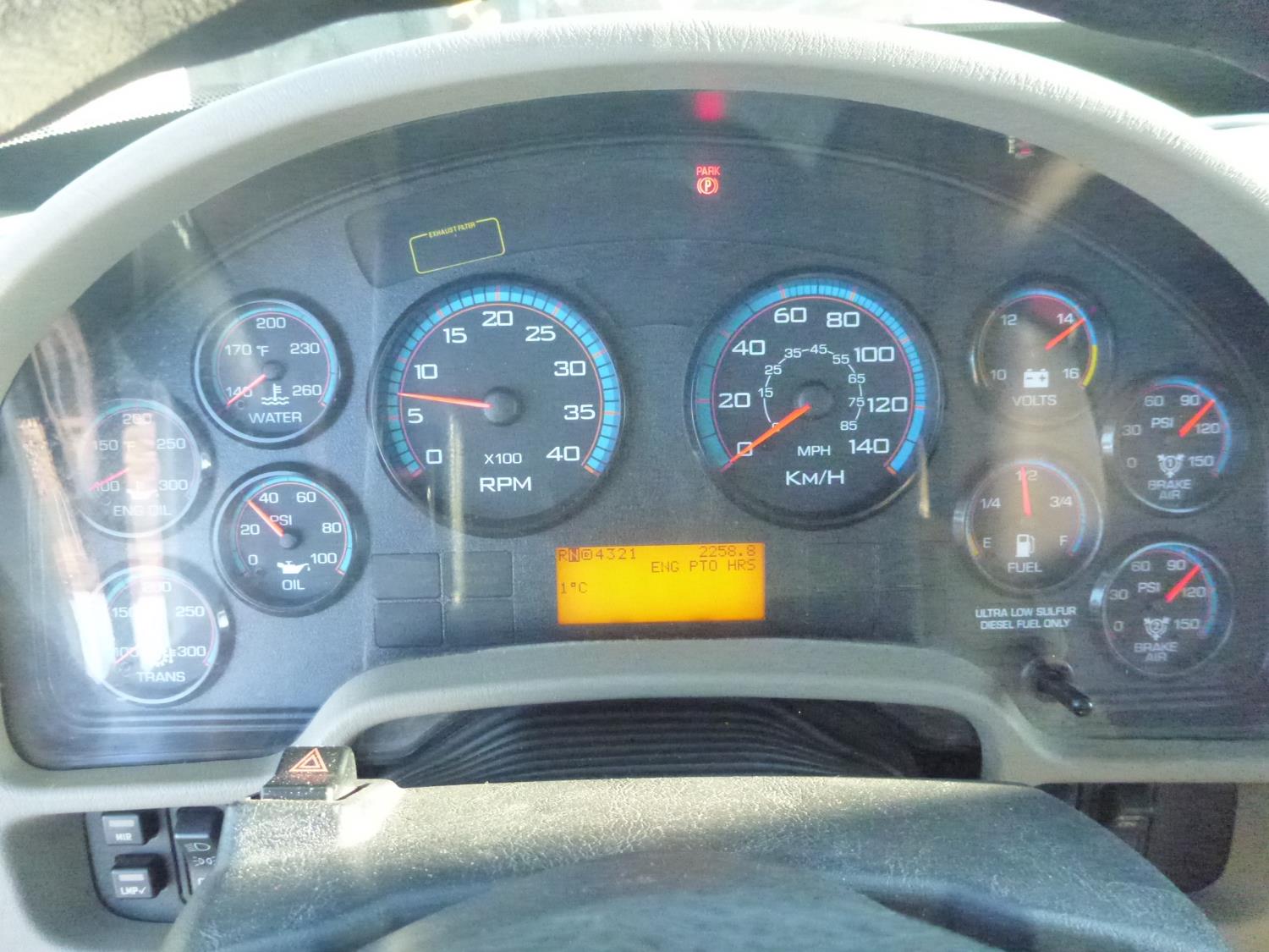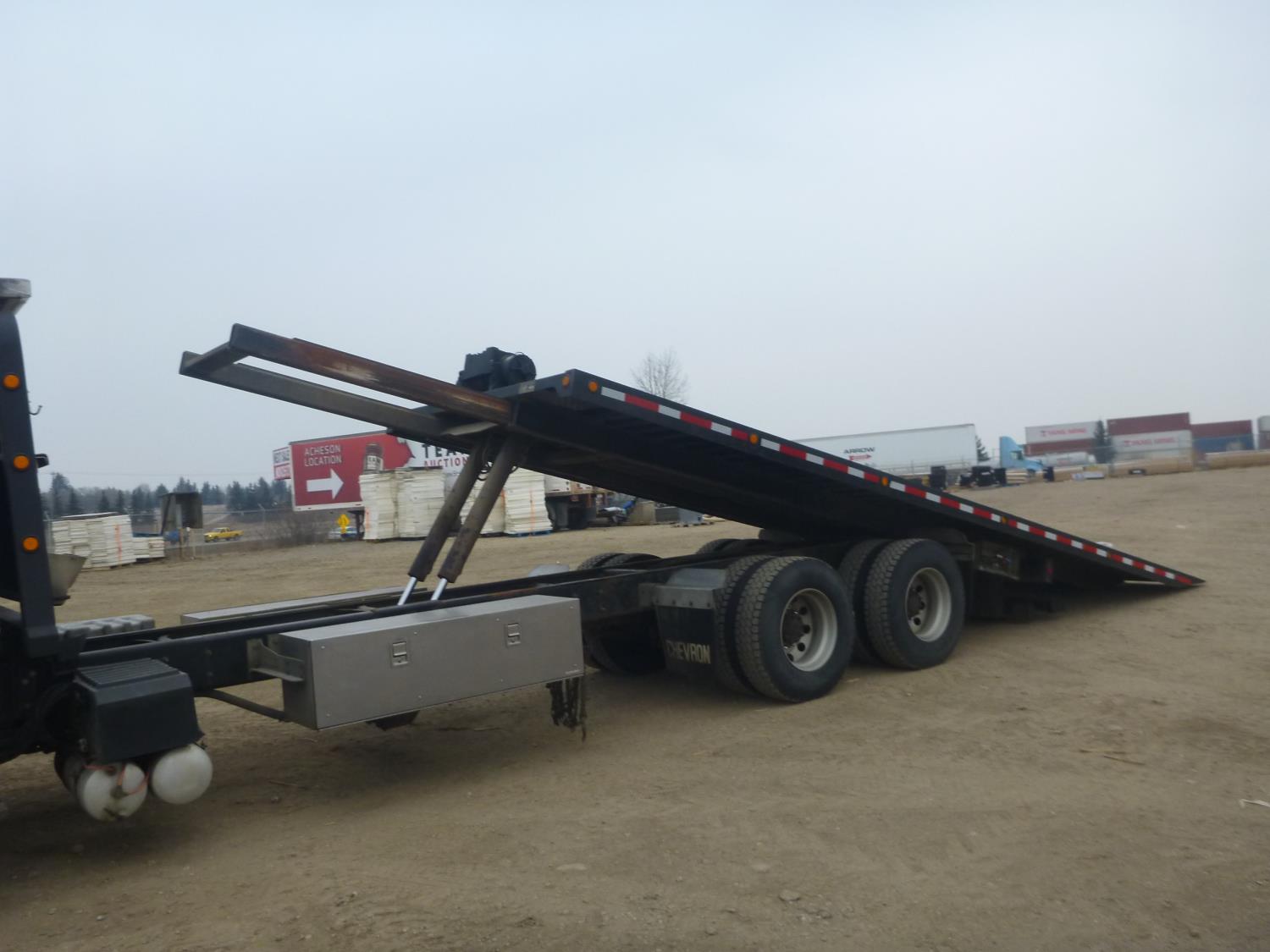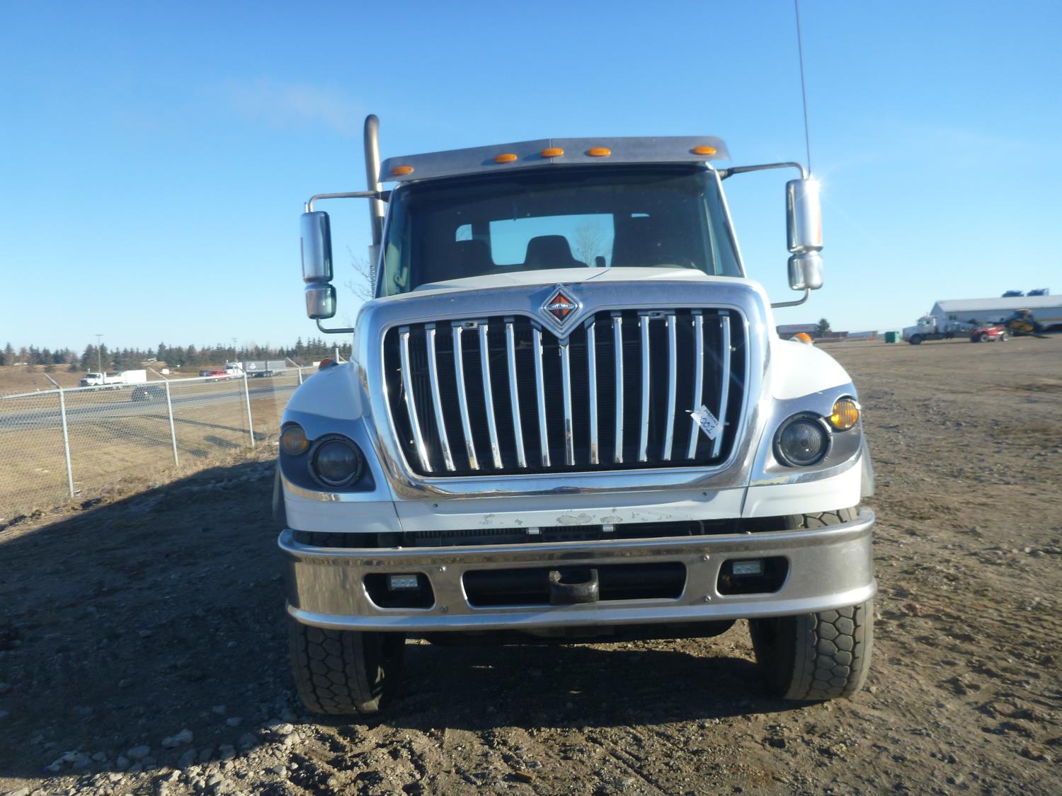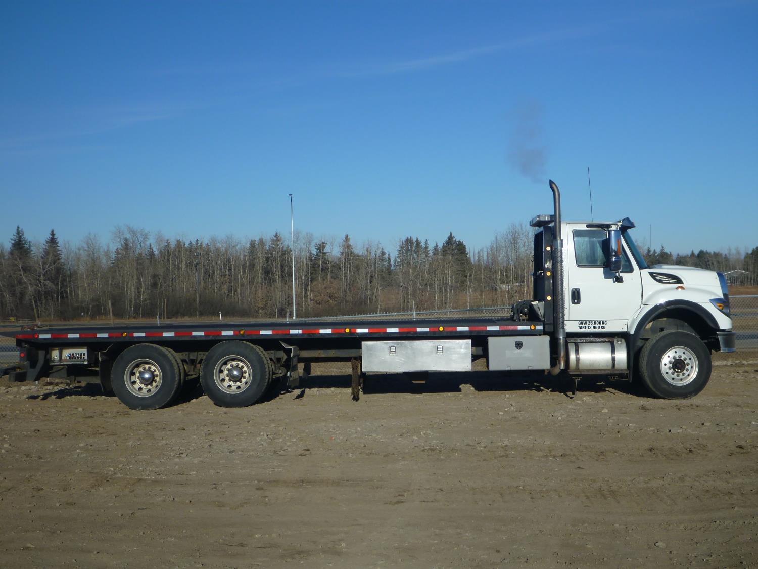 MaxForce 10 9.3 L diesel engine, engine brake, automatic transmission, A/C, cruise control, air ride driver seat, radio, stereo, aluminum tool boxes, 102 inch x 30 ft deck, beacons, chain holders, Warn Industrial 20000 lb mechanical winch, air ride suspension, 16,000 lb front axle, 40,000 lb rear axles, diff lock, 265 inch WB, all aluminum wheels, 385/65R22.5 front tires, 11R22.5 rear tires