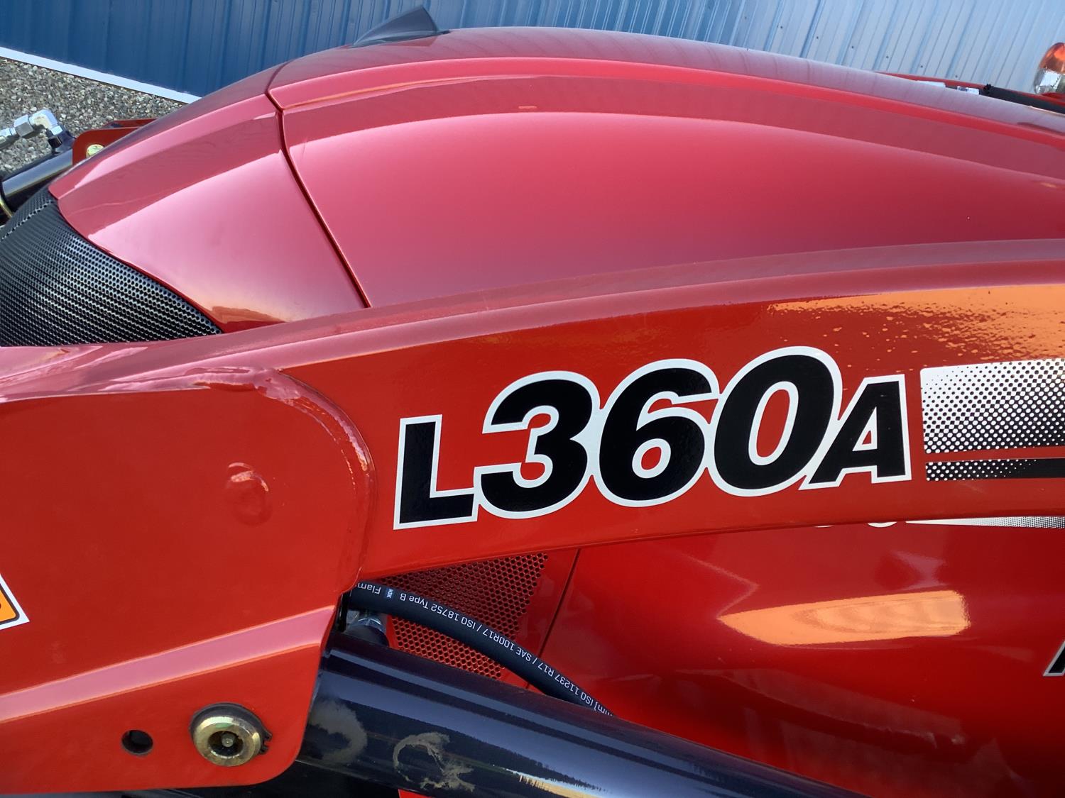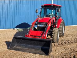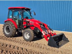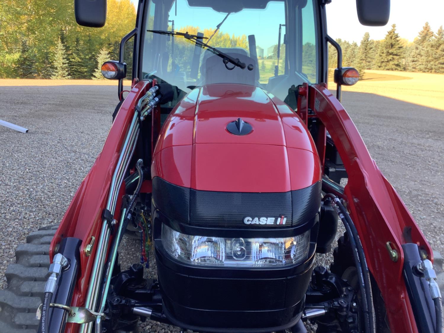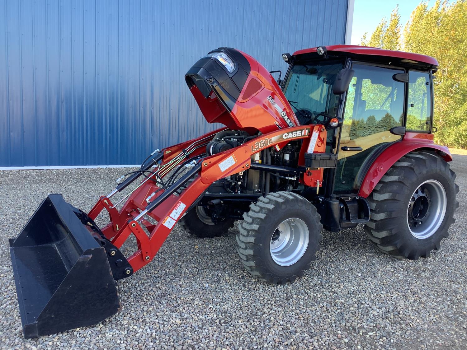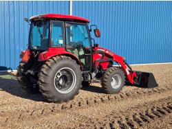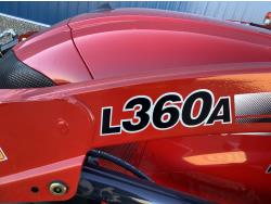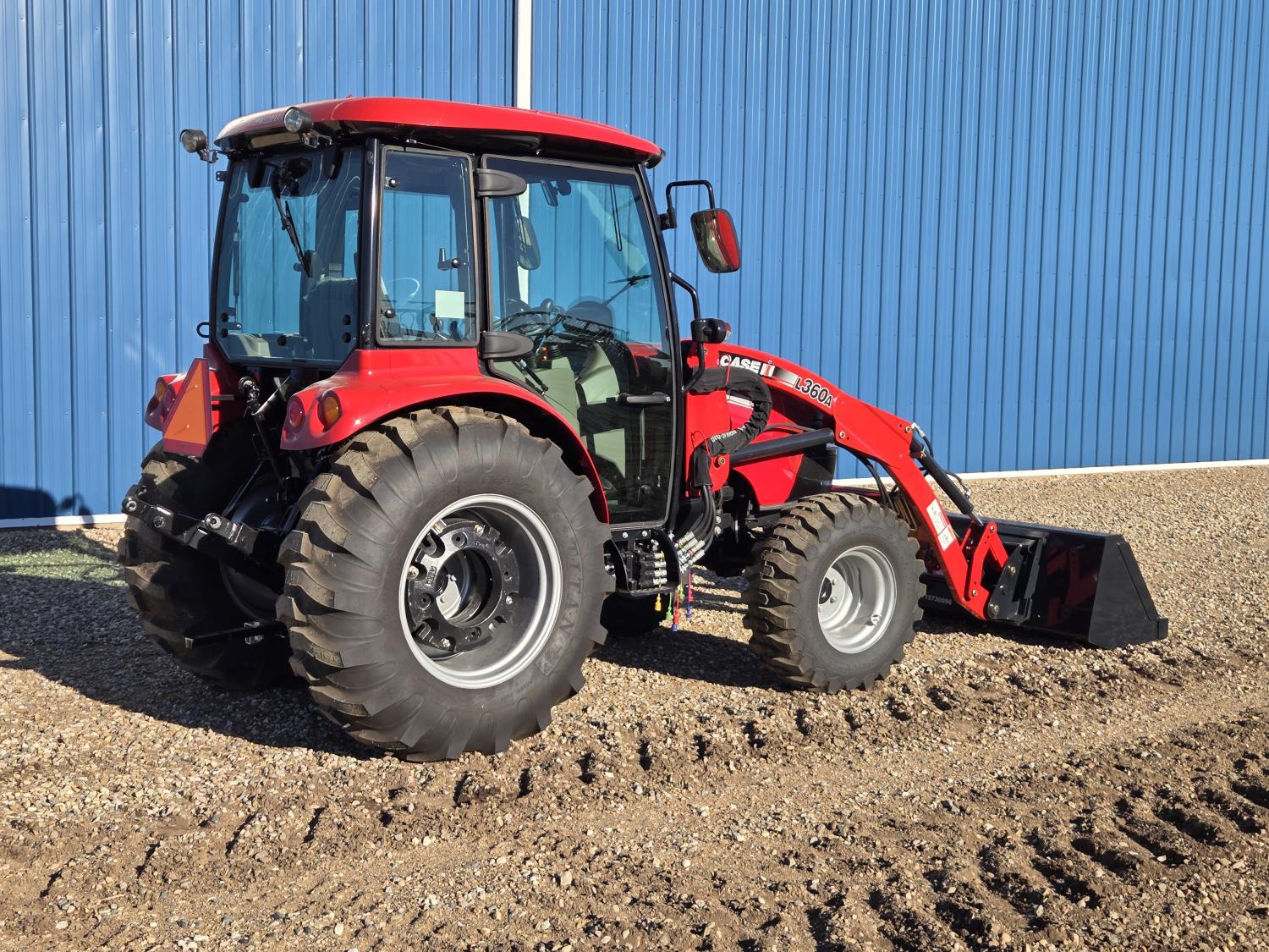 Case IH 360A loader, Q/A, 72 inch bucket, mid mount hydraulic connection, FPT 2.2 L 3 cylinder 54 HP, diesel engine, 43 PTO HP, hydro 3 range transmission, cab, rear differential lock, A/C, radio, heater, 3 point hitch, 2 rear hydraulic outlets, rear wheel weights, 12-16.5 front tires, 17.5L-24 rear tires