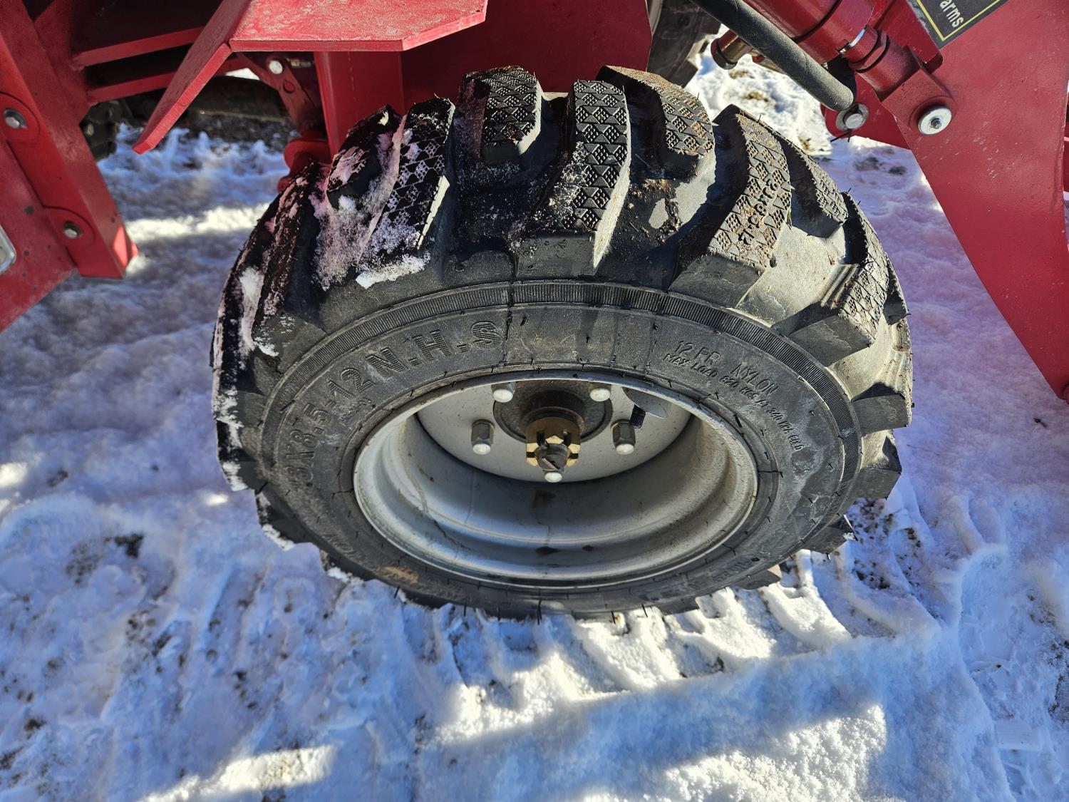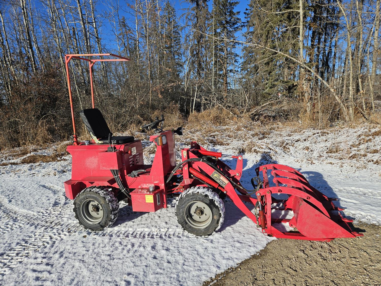 40 inch bucket, 40 inch grapple, 739 cc gas engine, 3 speed standard transmission, 23X8.50-12 tires