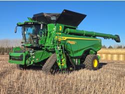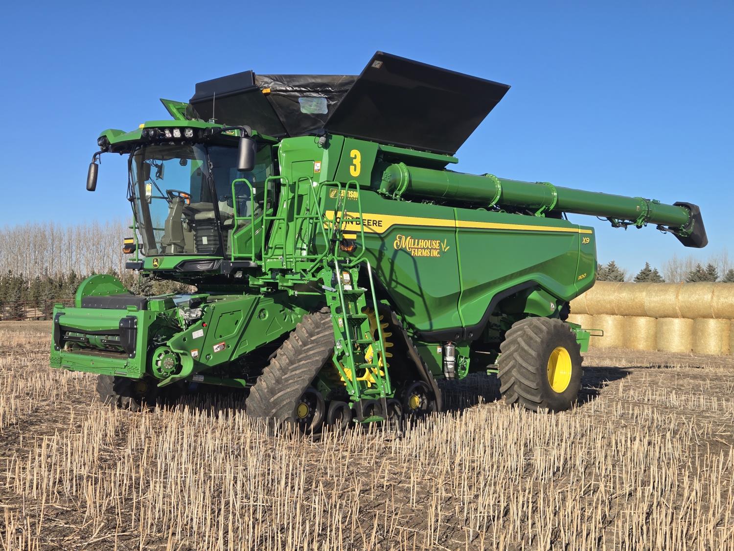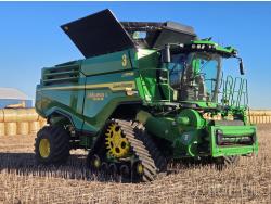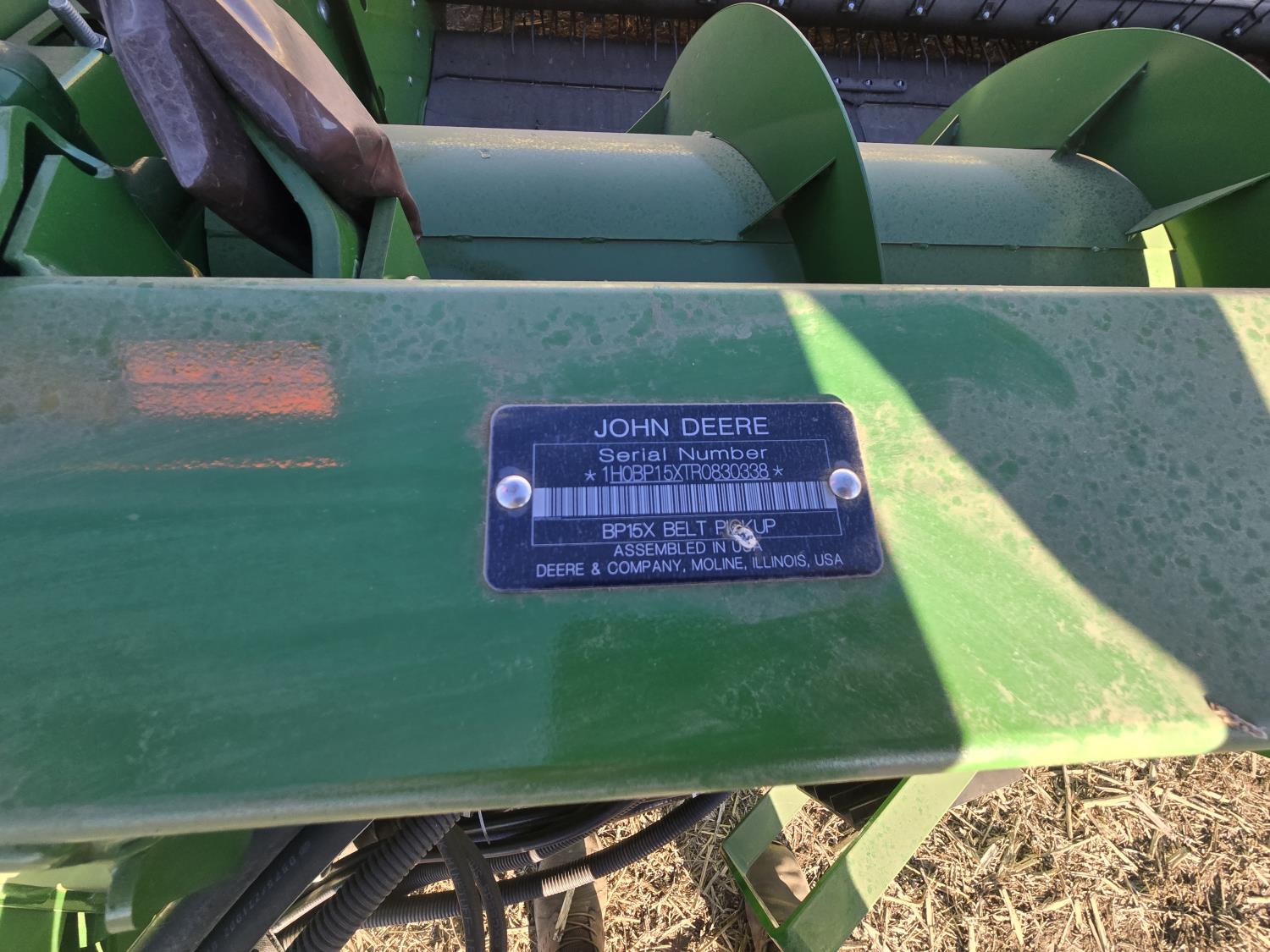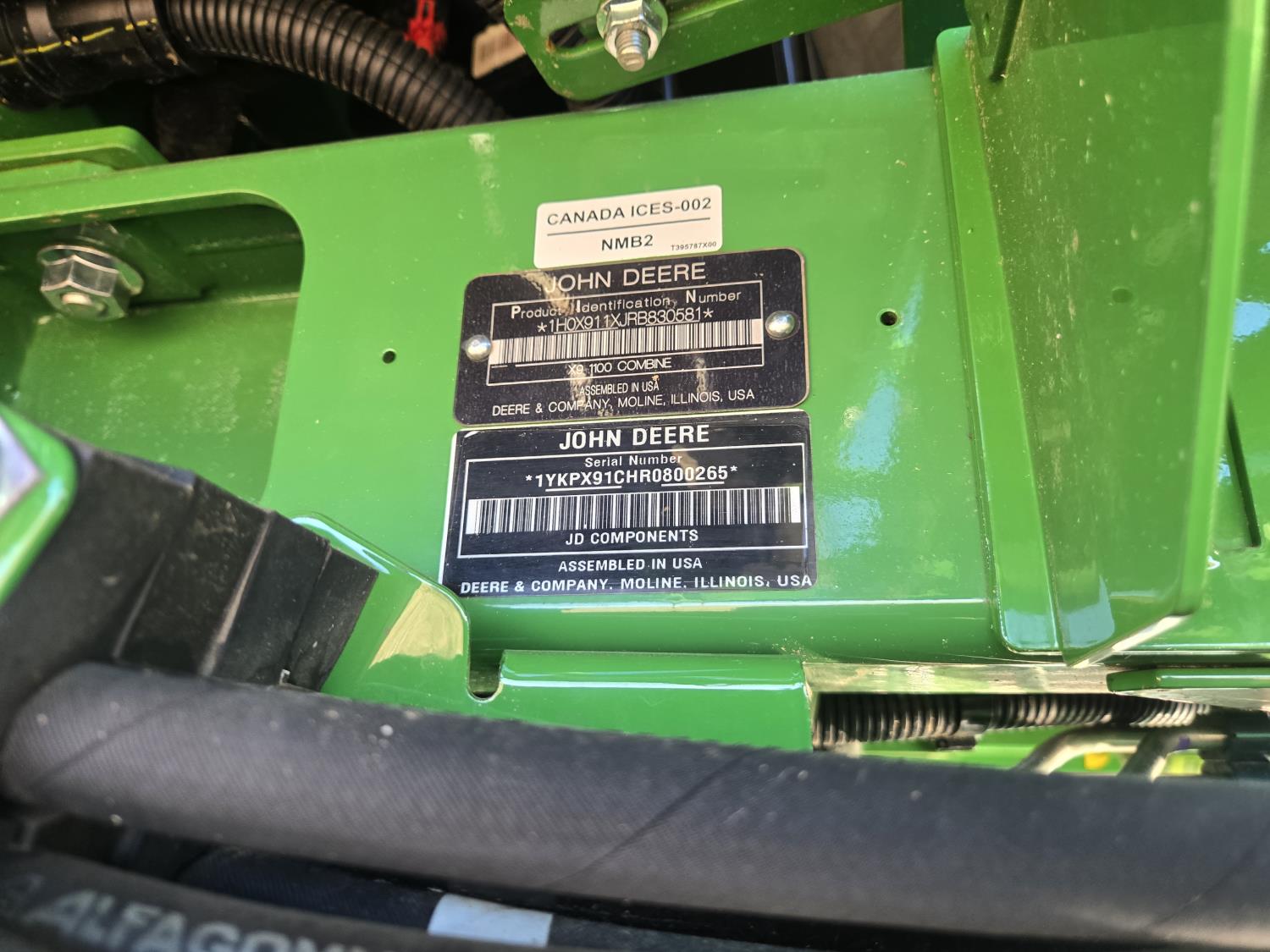 John Deere BP15 15 ft pickup header, fine cut straw chopper, chaff spreader, Ultimate cab package, Signature Edition, Star Fire integrated receiver, Active yield and moister and yield sensors, Pro Drive hydrostatic transmission, 31 ft power folding unloading auger, G5 command Center, powered up grain tank extension, camera, full hopper sensor and more, 750/65R26 rear tires, Warranty started Aug 1, 2025. Basic warranty expires Aug 02, 2026, engine warranty expires Aug 02, 2027, emissions warranty expires Aug 02, 2030, extended power train warranty expires Aug 02, 2029