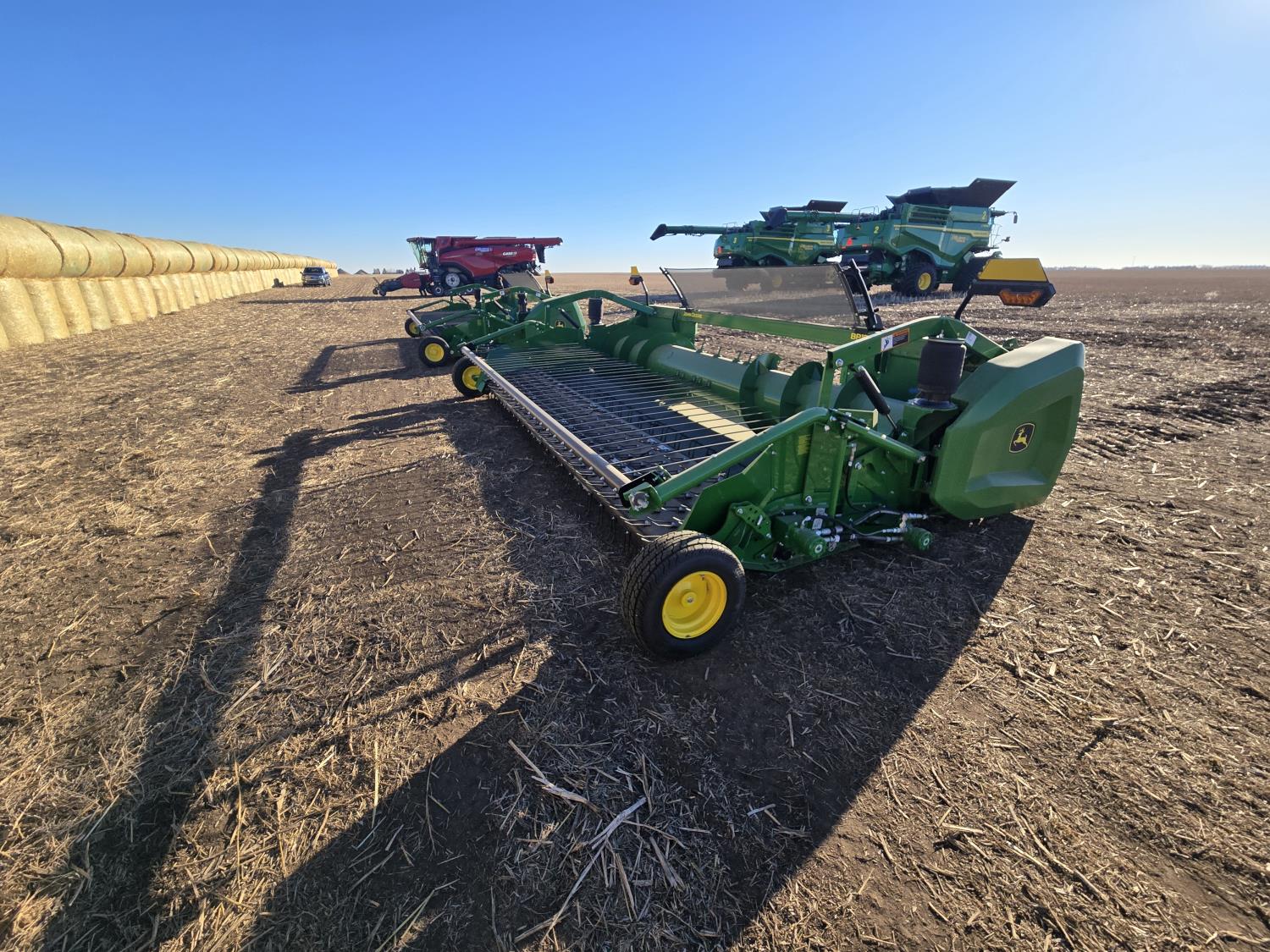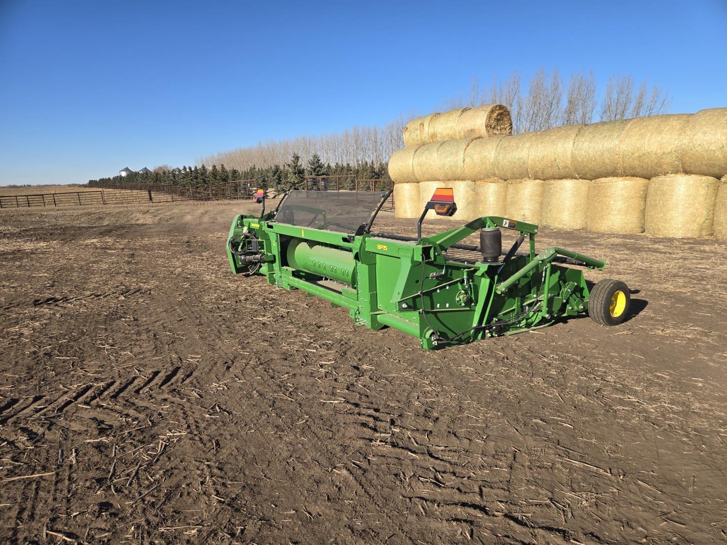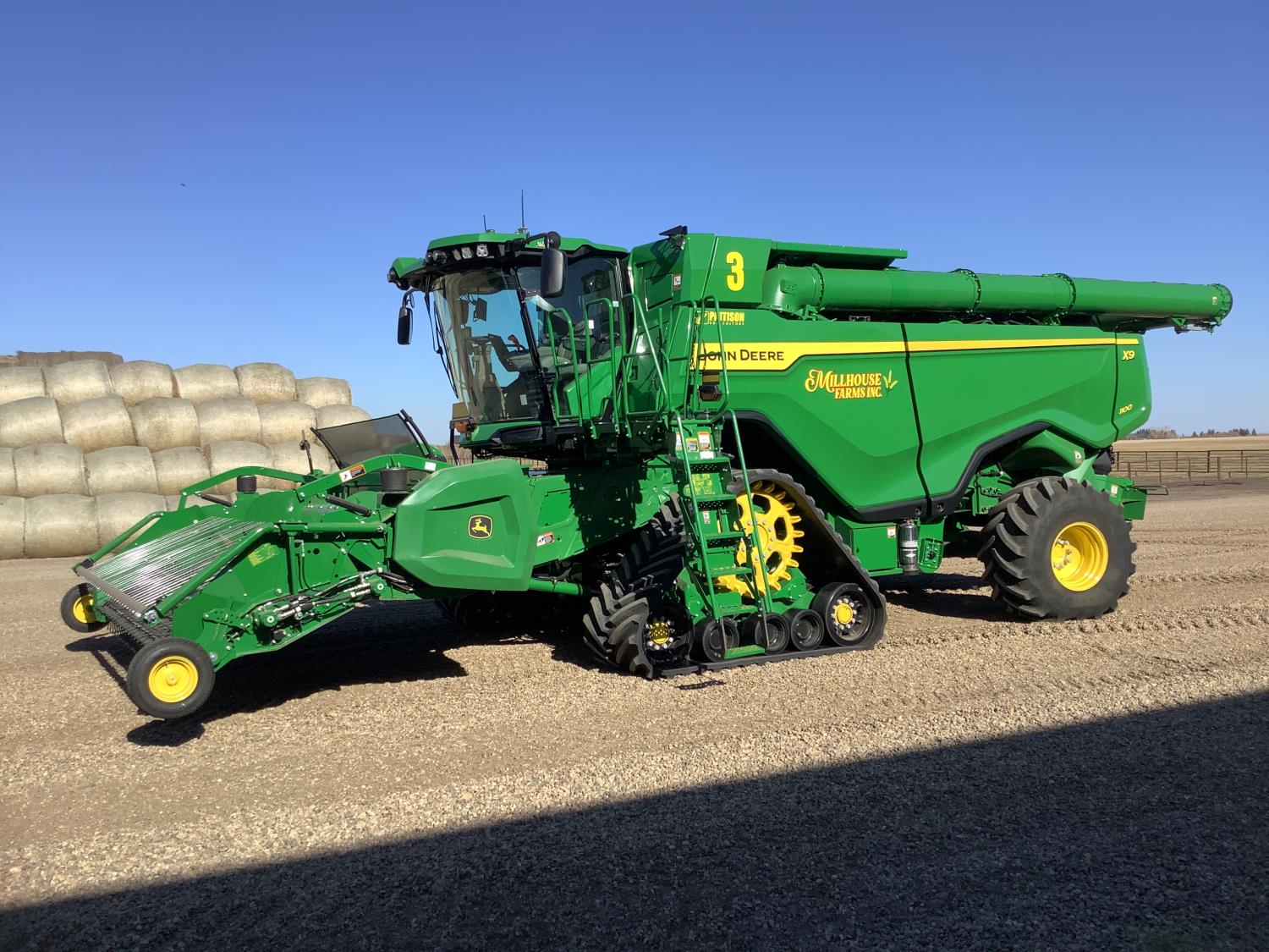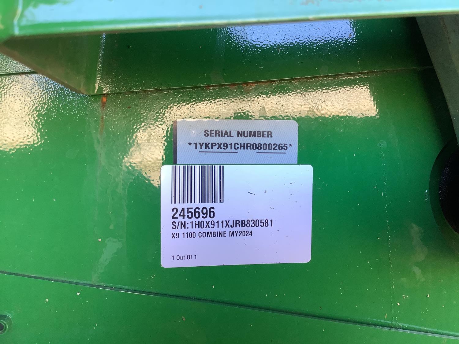 John Deere BP15 15 ft pickup header, fine cut straw chopper, chaff spreader, Ultimate cab package, Signature Edition, Star Fire integrated receiver, Active yield and moister and yield sensors, Pro Drive hydrostatic transmission, 31 ft power folding unloading auger, G5 command Center, powered up grain tank extension, camera, full hopper sensor and more, 750/65R26 rear tires, Warranty started Aug 1, 2025. Basic warranty expires Aug 02, 2026, engine warranty expires Aug 02, 2027, emissions warranty expires Aug 02, 2030, extended power train warranty expires Aug 02, 2029