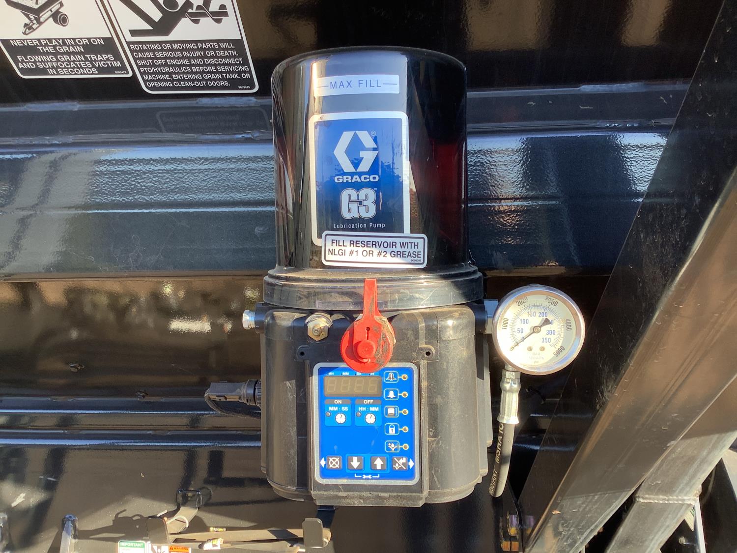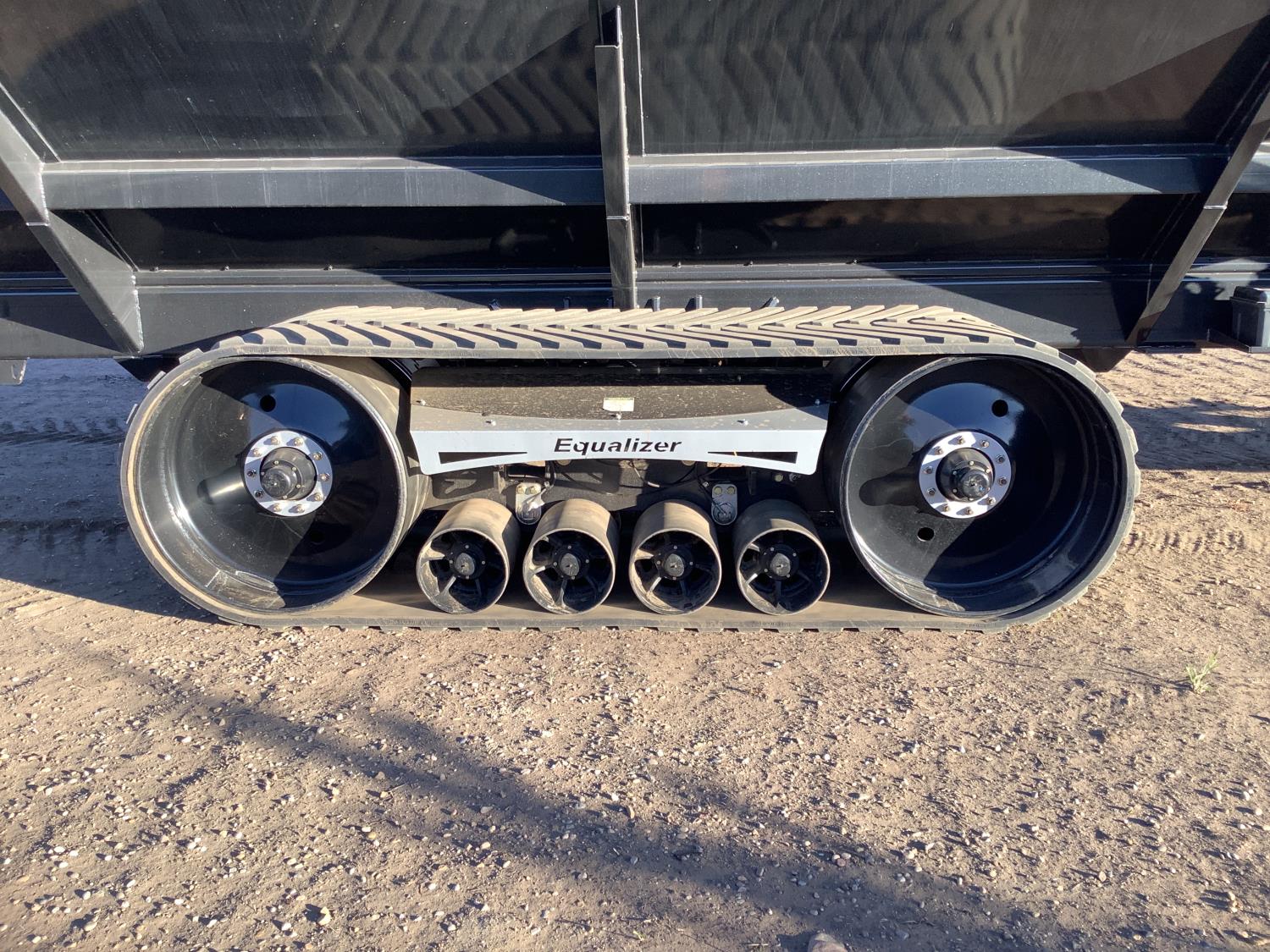 large 1000 PTO, auto greaser, electric tarp, digital grain scale, 4 way down spout, equalizer 50 X 148 inch track system, metallic black paint