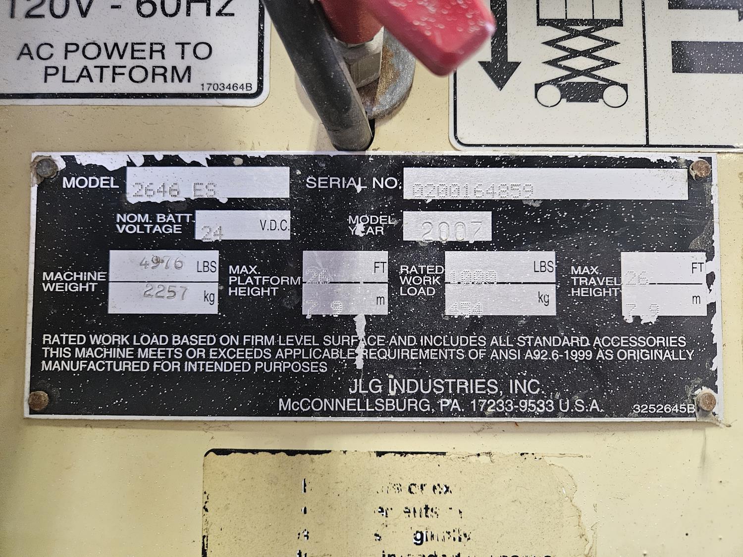 199 2007 JLG 2646 ES 26 ft 2WD Electric Scissor Lift