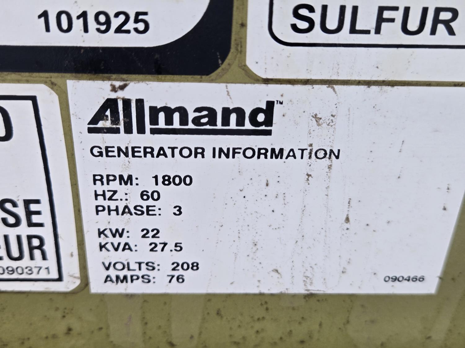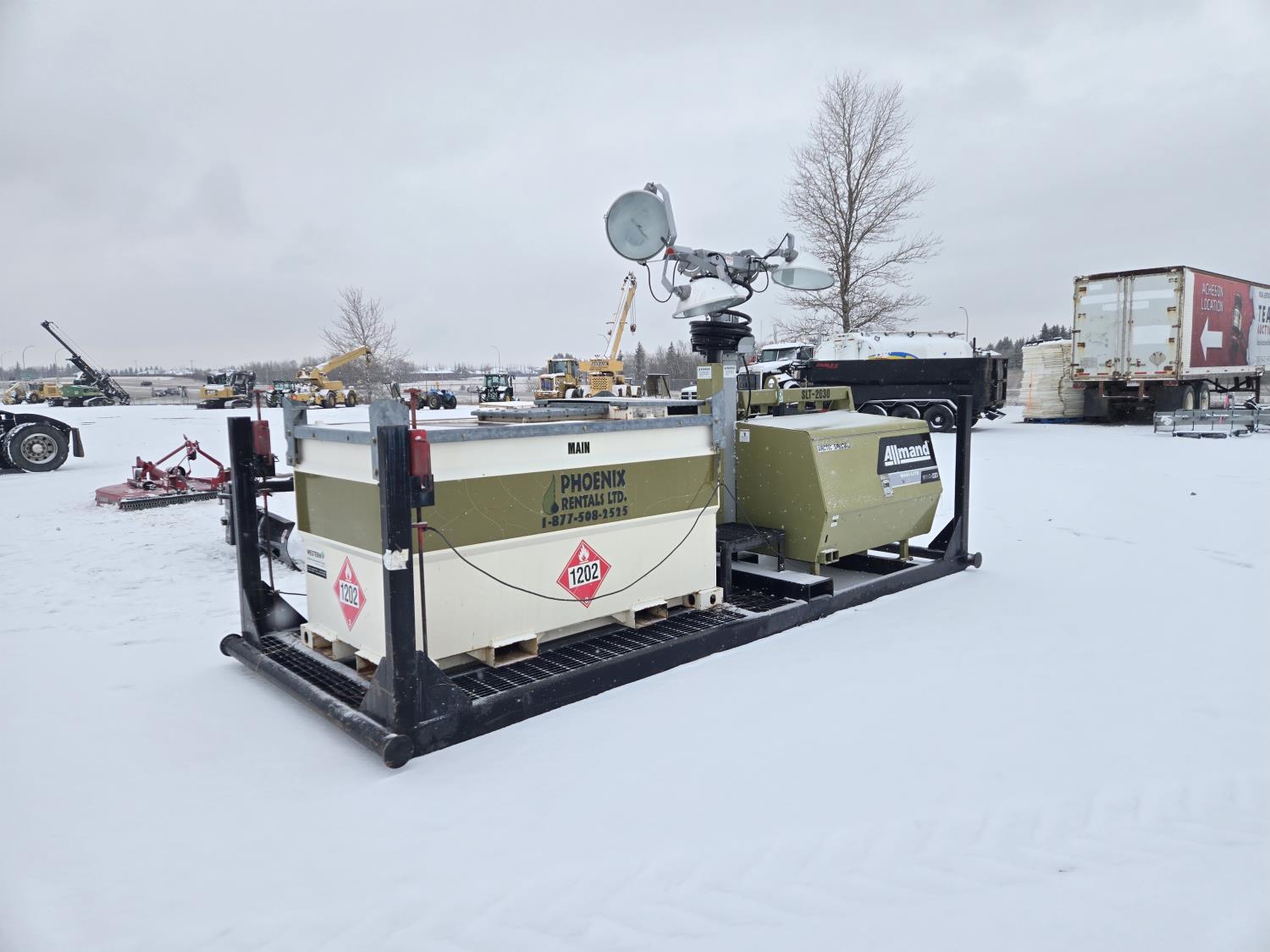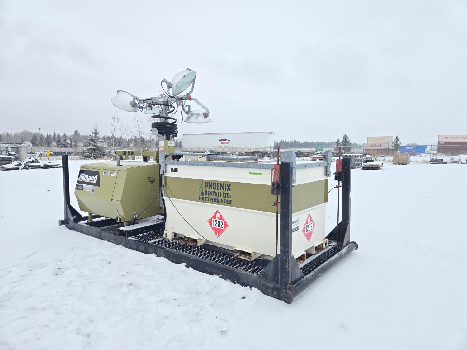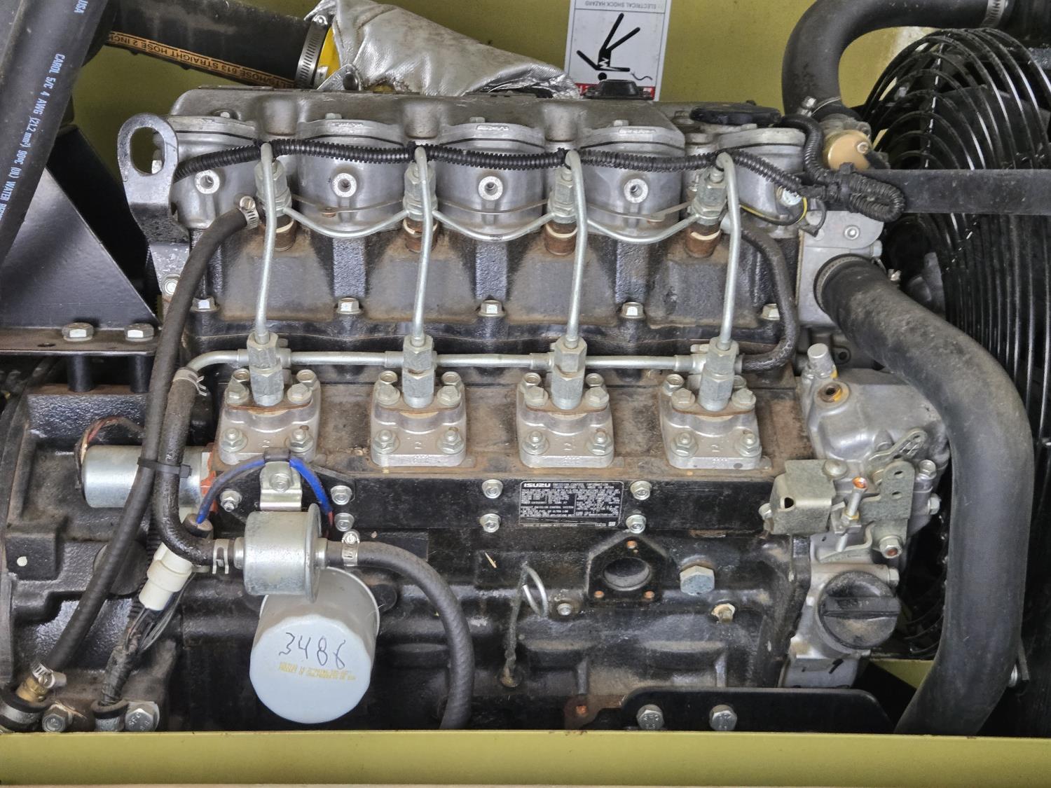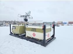 (4) lights, vertical mast, 528 gallon Aux fuel tank, 22 KW 208 volt 3 phase generator