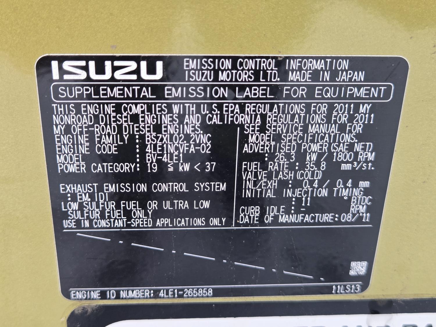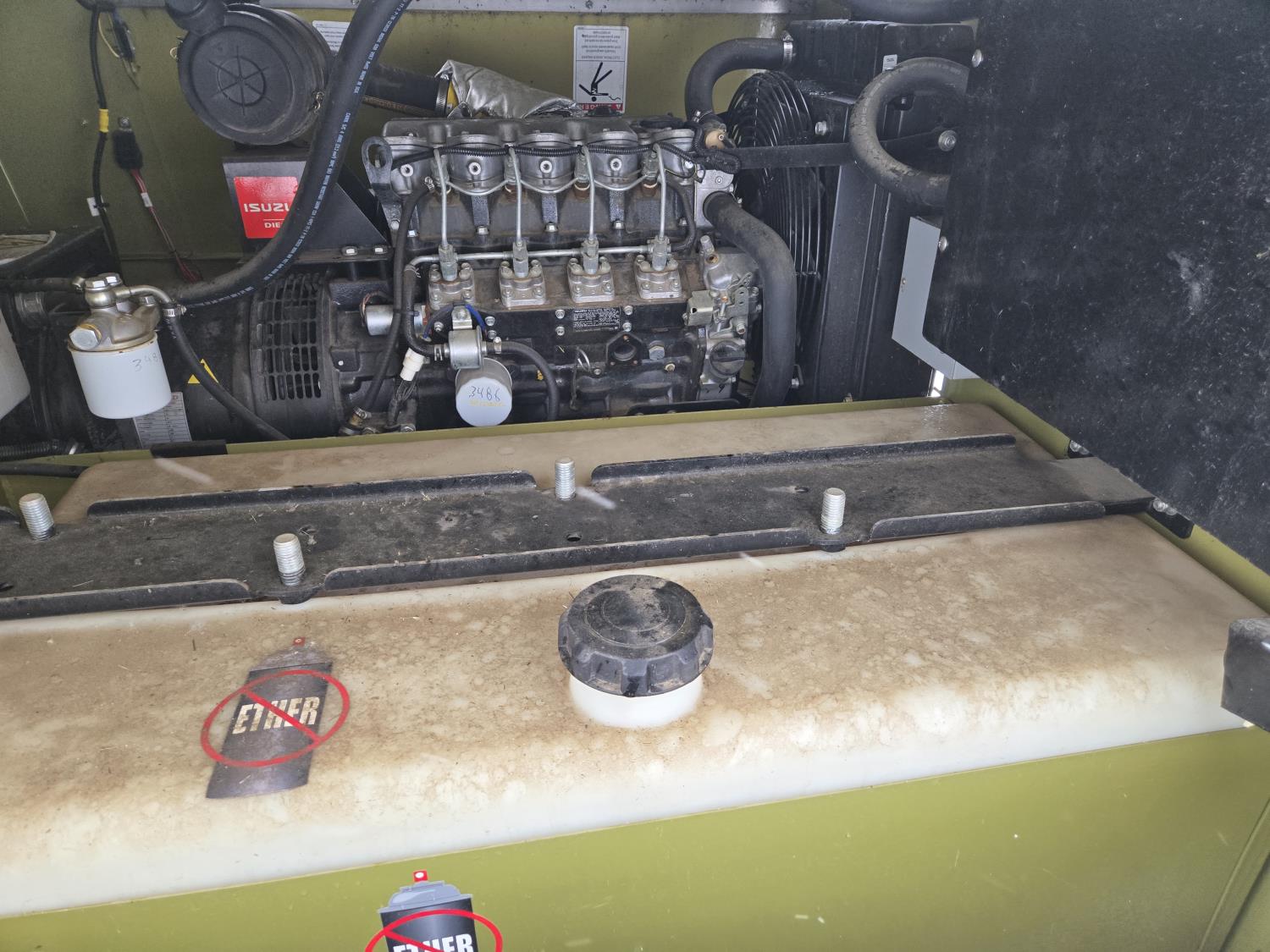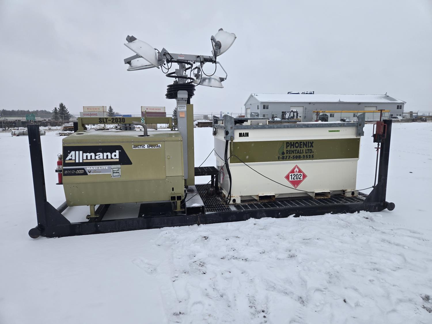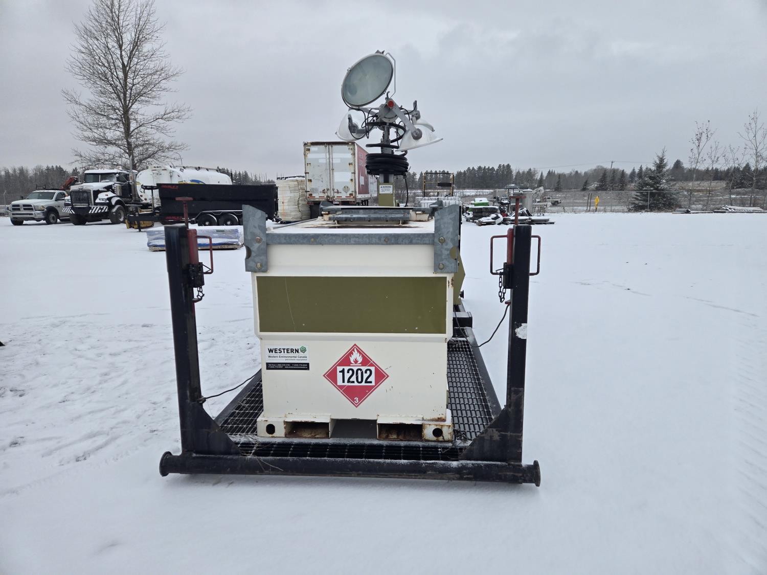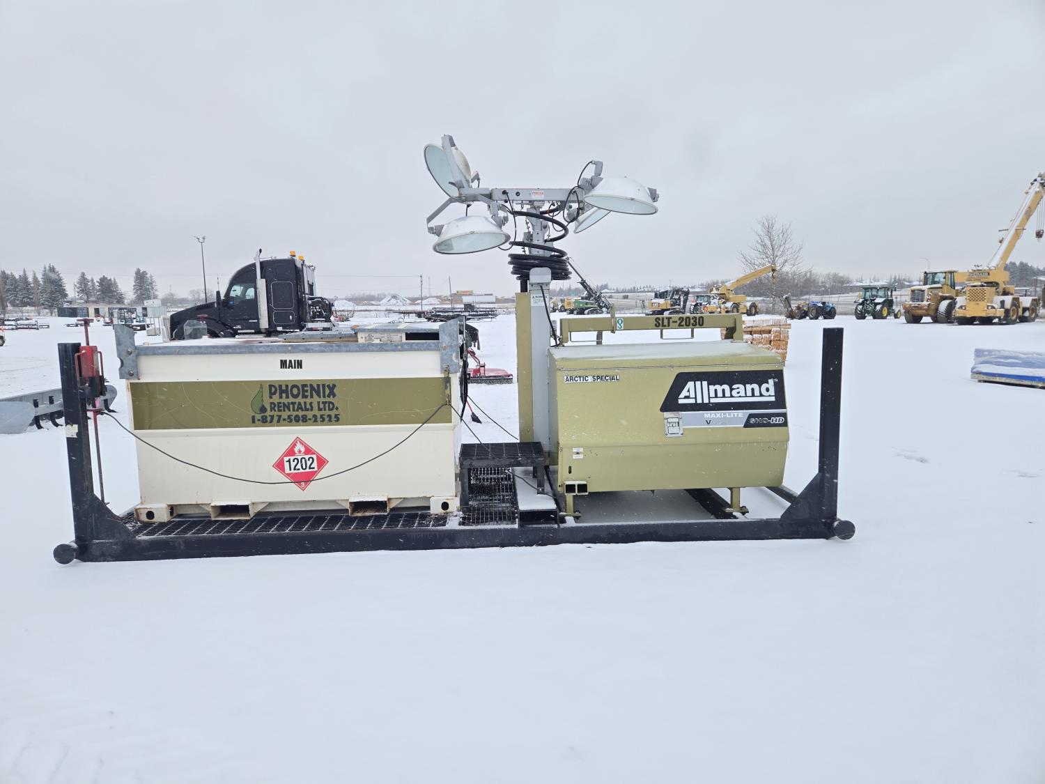 (4) lights, vertical mast, 528 gallon Aux fuel tank, 22 KW 208 volt 3 phase generator