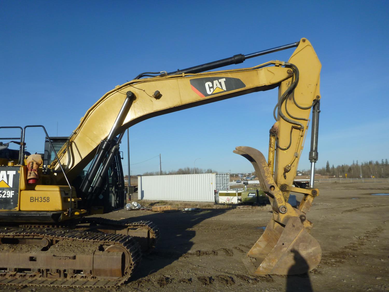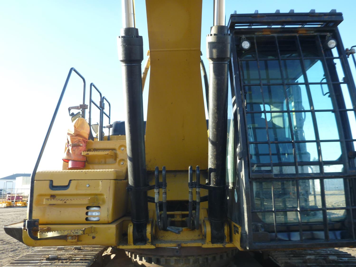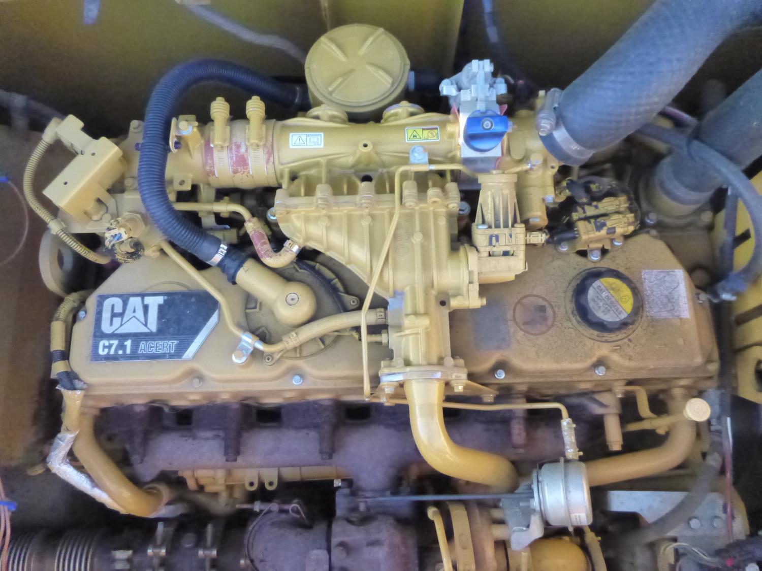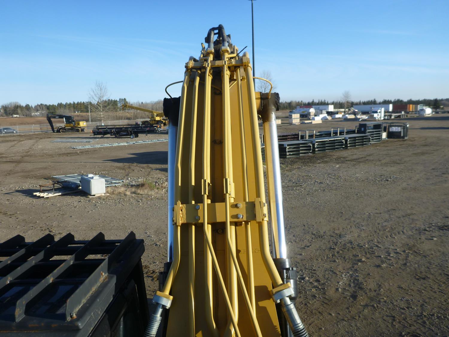 Enclosed cab, A/C, air ride seat, heated seat, rear view cameras, cab screens, 66 inch cleanup bucket, manual coupler, hydraulic thumb, 1 auxiliary hydraulics, 10 Ft 2 inch stick, Caterpillar C7.1 acert, 31.5 inch track pads, triple grousers
