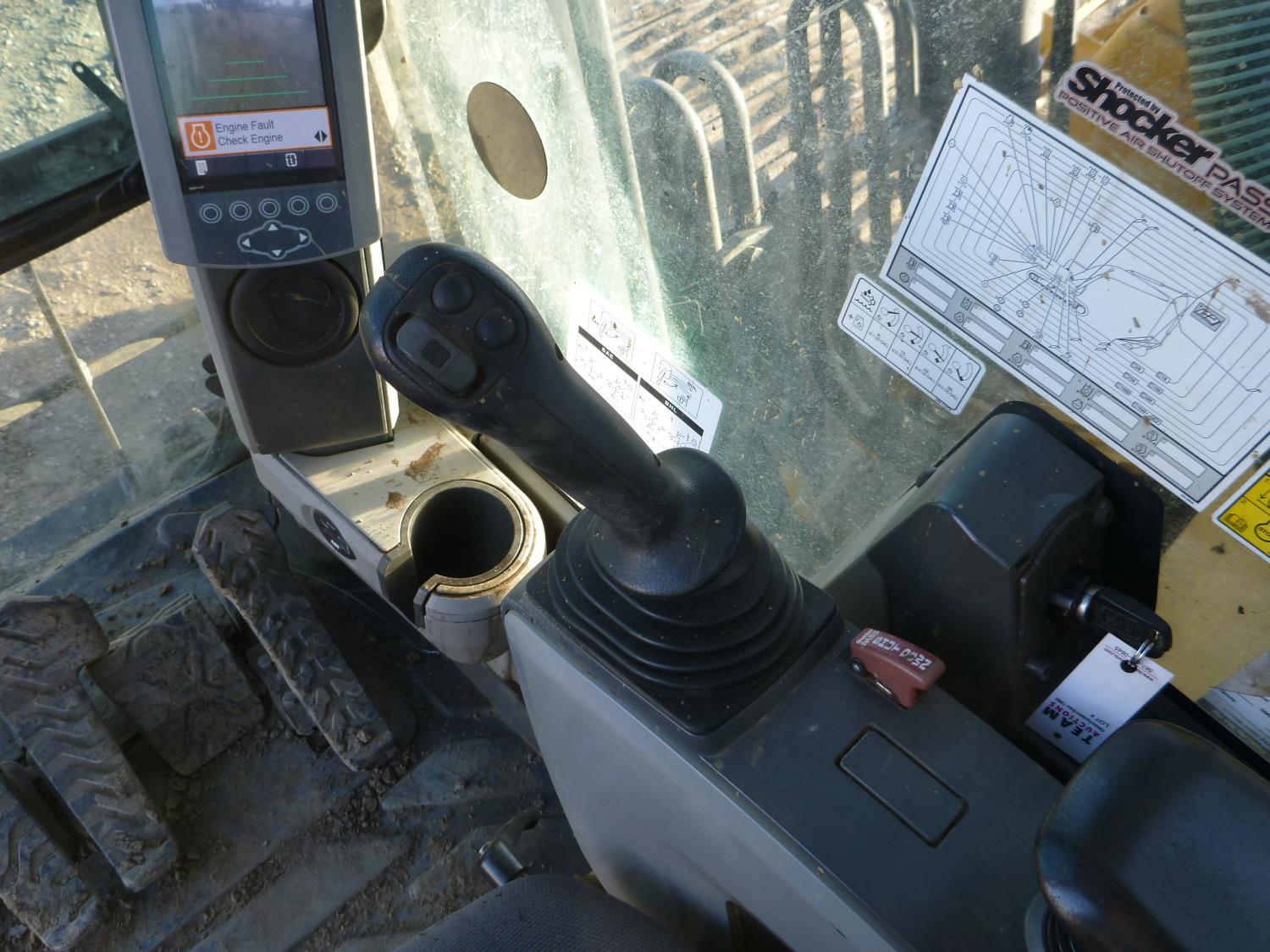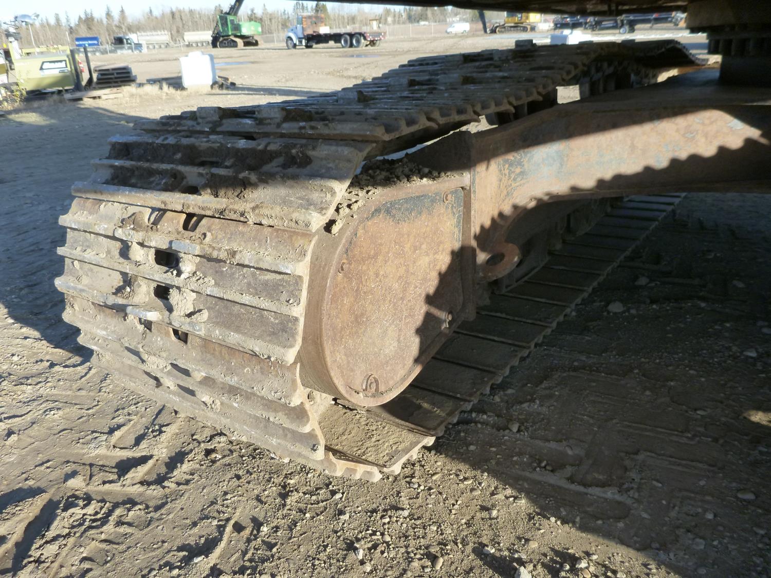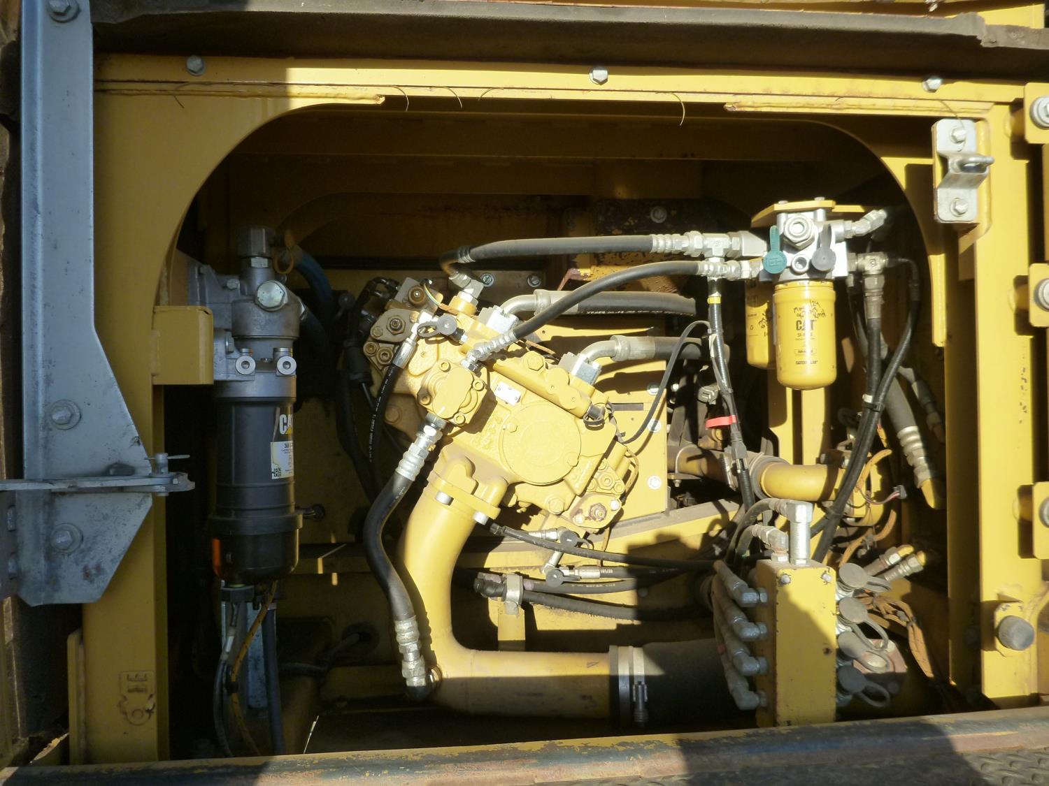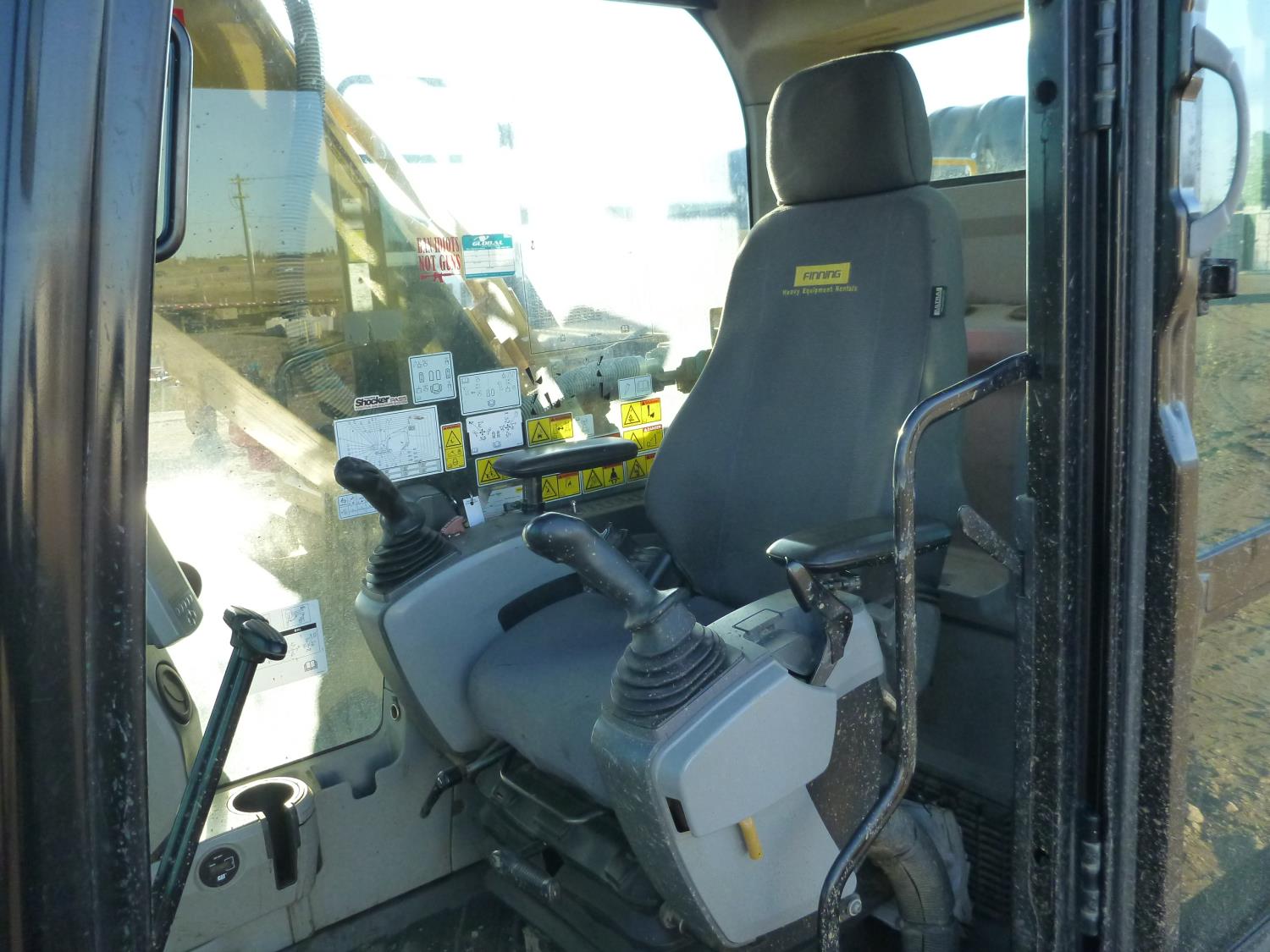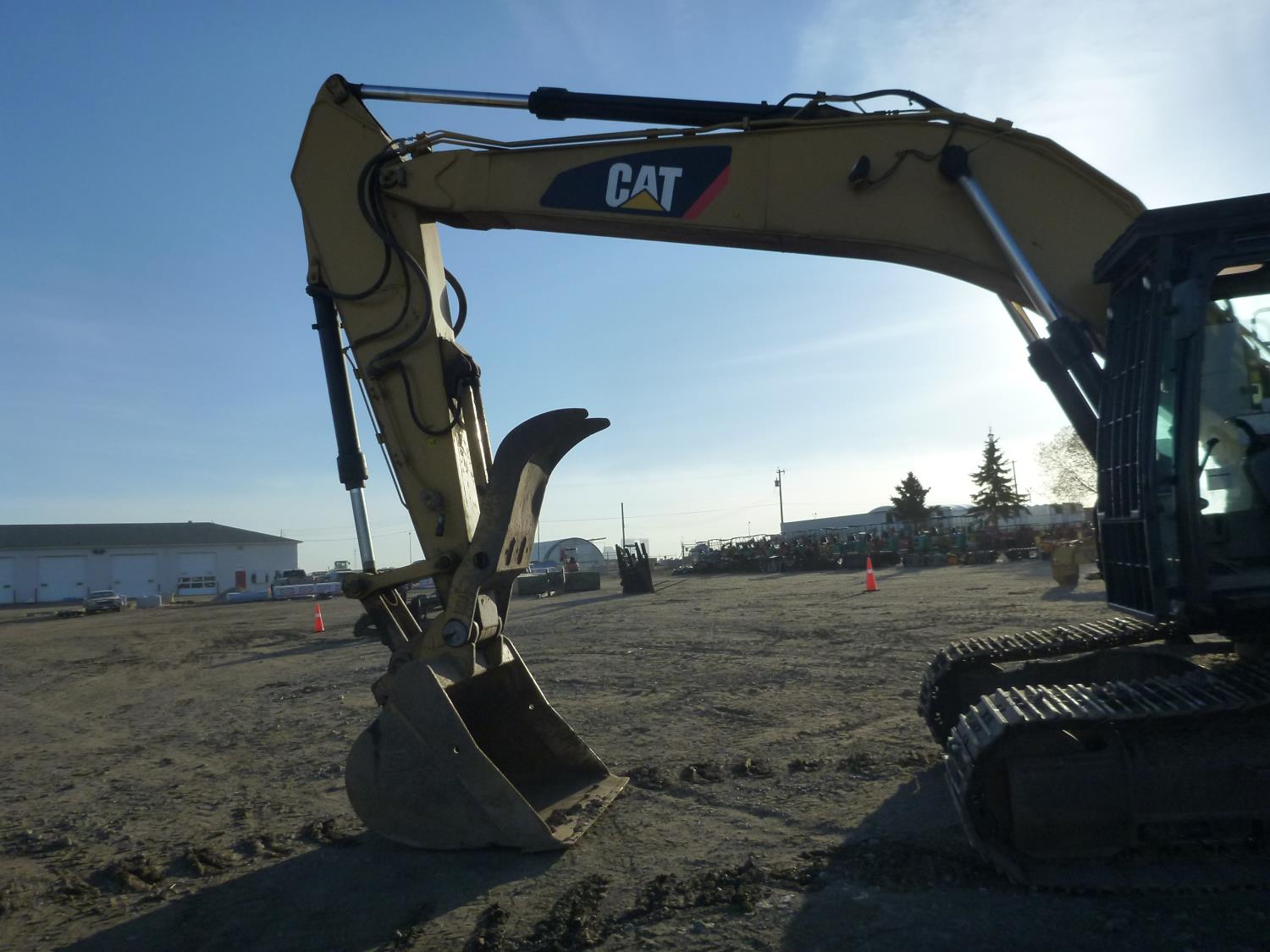 Enclosed cab, A/C, air ride seat, heated seat, rear view cameras, cab screens, 66 inch cleanup bucket, manual coupler, hydraulic thumb, 1 auxiliary hydraulics, 10 Ft 2 inch stick, Caterpillar C7.1 acert, 31.5 inch track pads, triple grousers