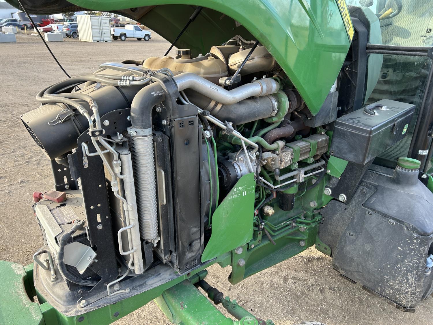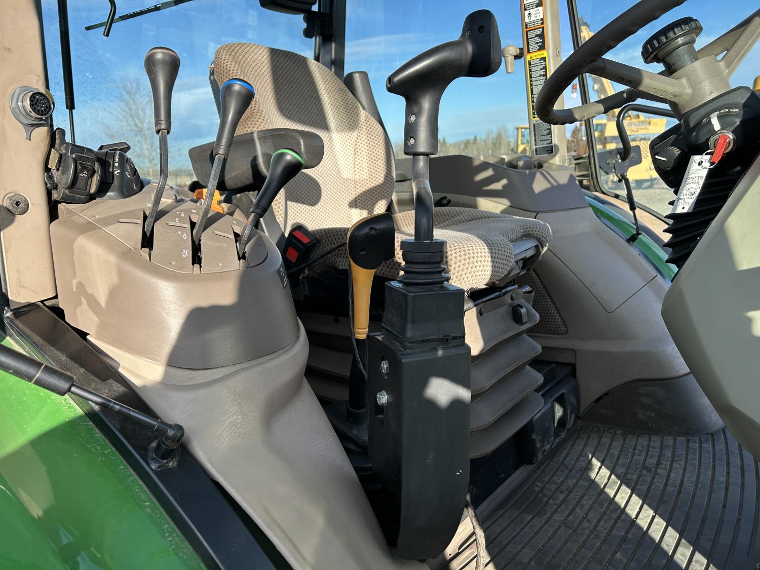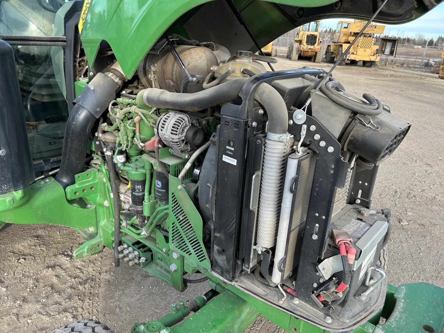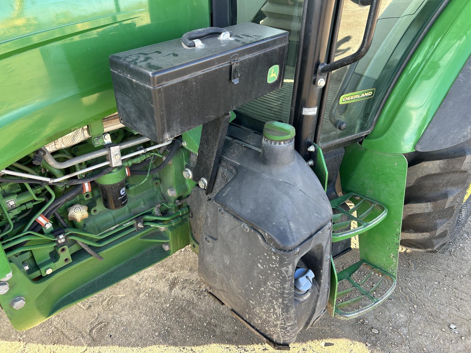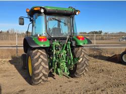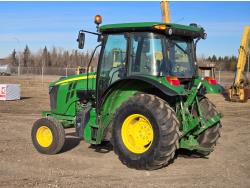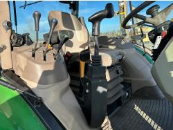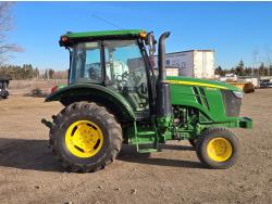 Deere 4.5 L 4 cylinder 89 HP, engine, DEF required, 75 PTO HP, 16 speed Power Shuttle partial synchro transmission, cab, left hand reverser, A/C, radio, 540 / 540E PTO, 3 point hitch, 3 point hitch exterior control, 3 rear hydraulic outlets, 3 function mid mount valve with joystick, 19.5L24 rear tires