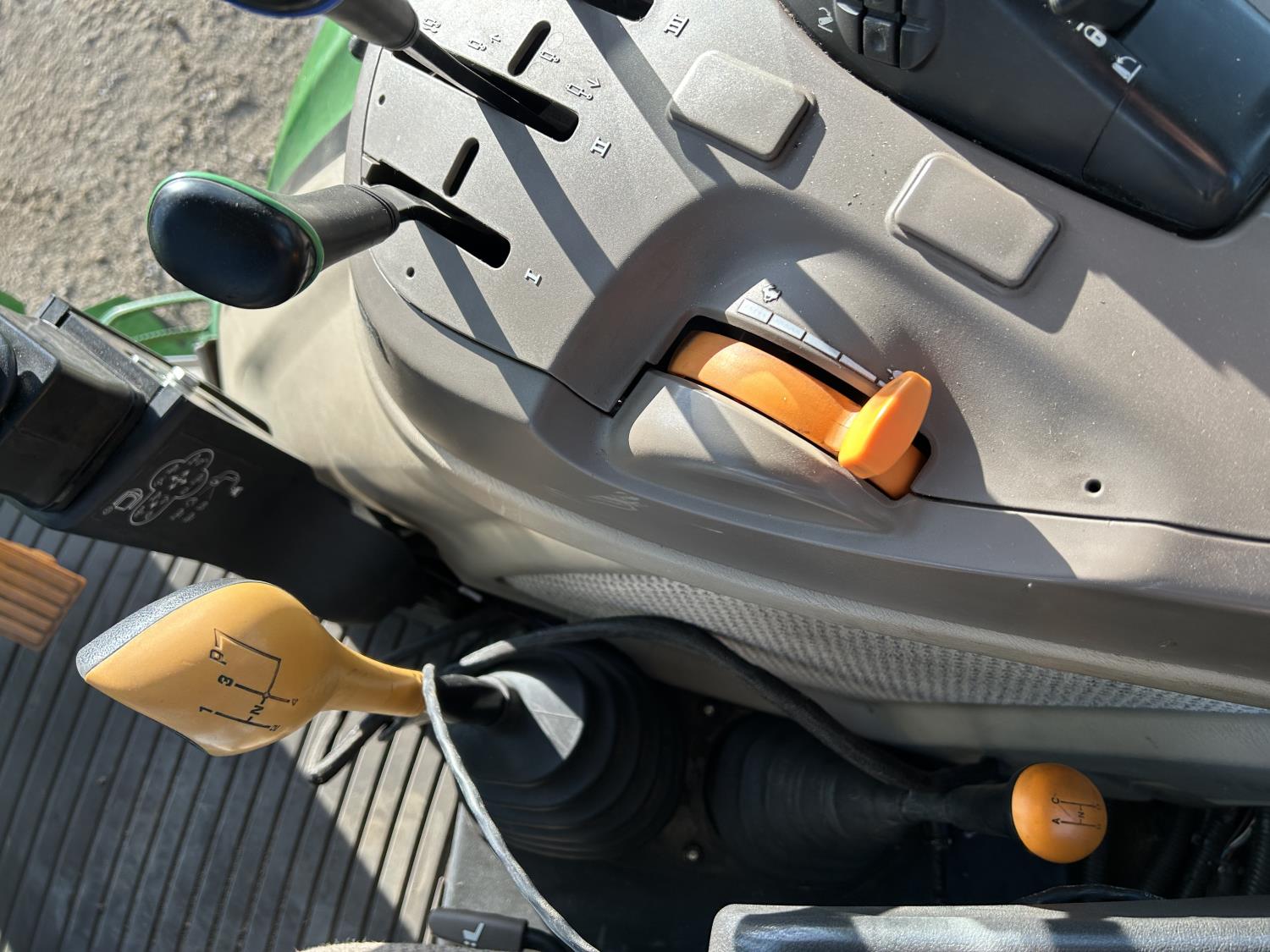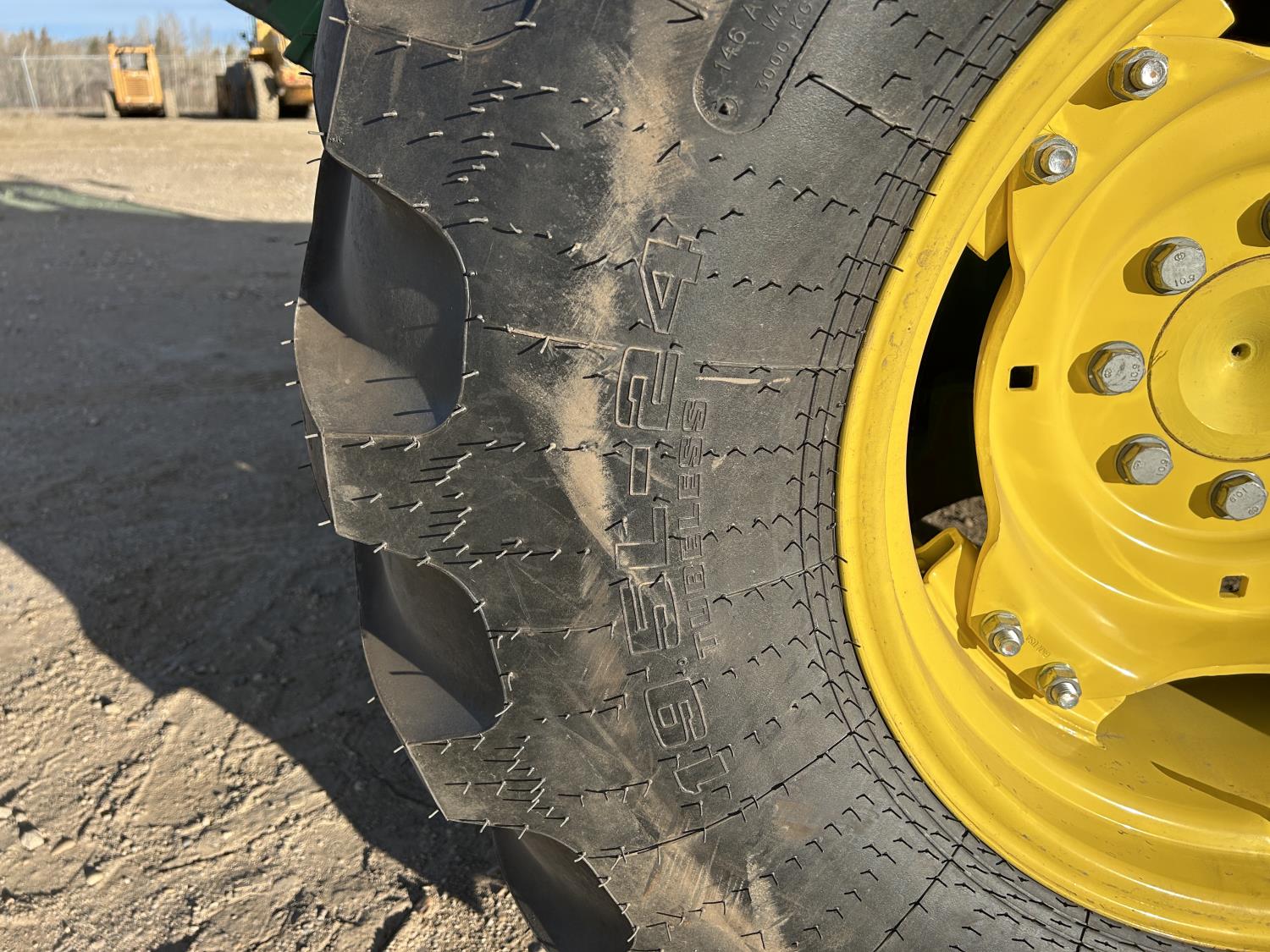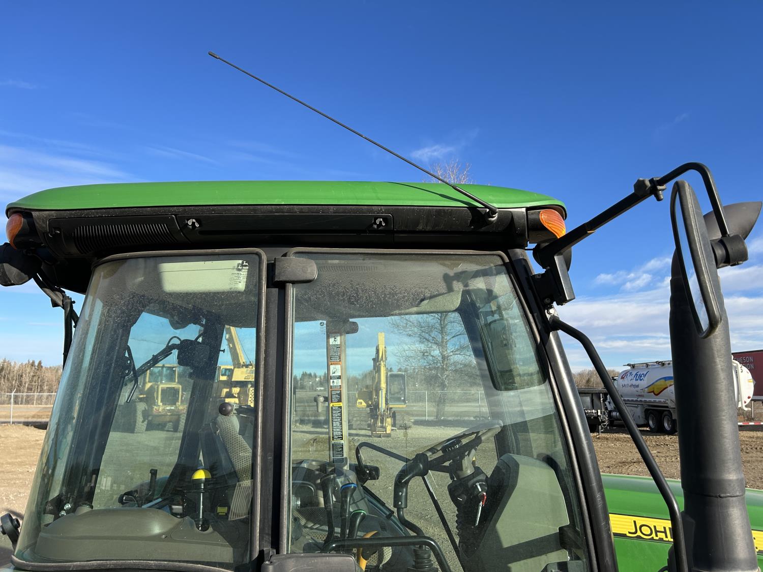 Deere 4.5 L 4 cylinder 89 HP, engine, DEF required, 75 PTO HP, 16 speed Power Shuttle partial synchro transmission, cab, left hand reverser, A/C, radio, 540 / 540E PTO, 3 point hitch, 3 point hitch exterior control, 3 rear hydraulic outlets, 3 function mid mount valve with joystick, 19.5L24 rear tires