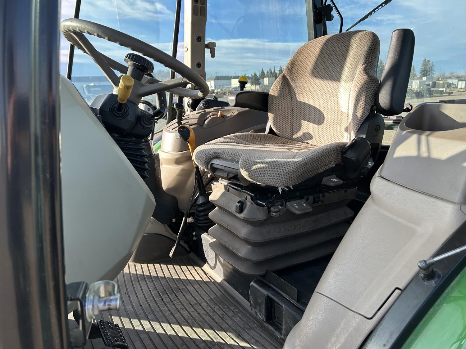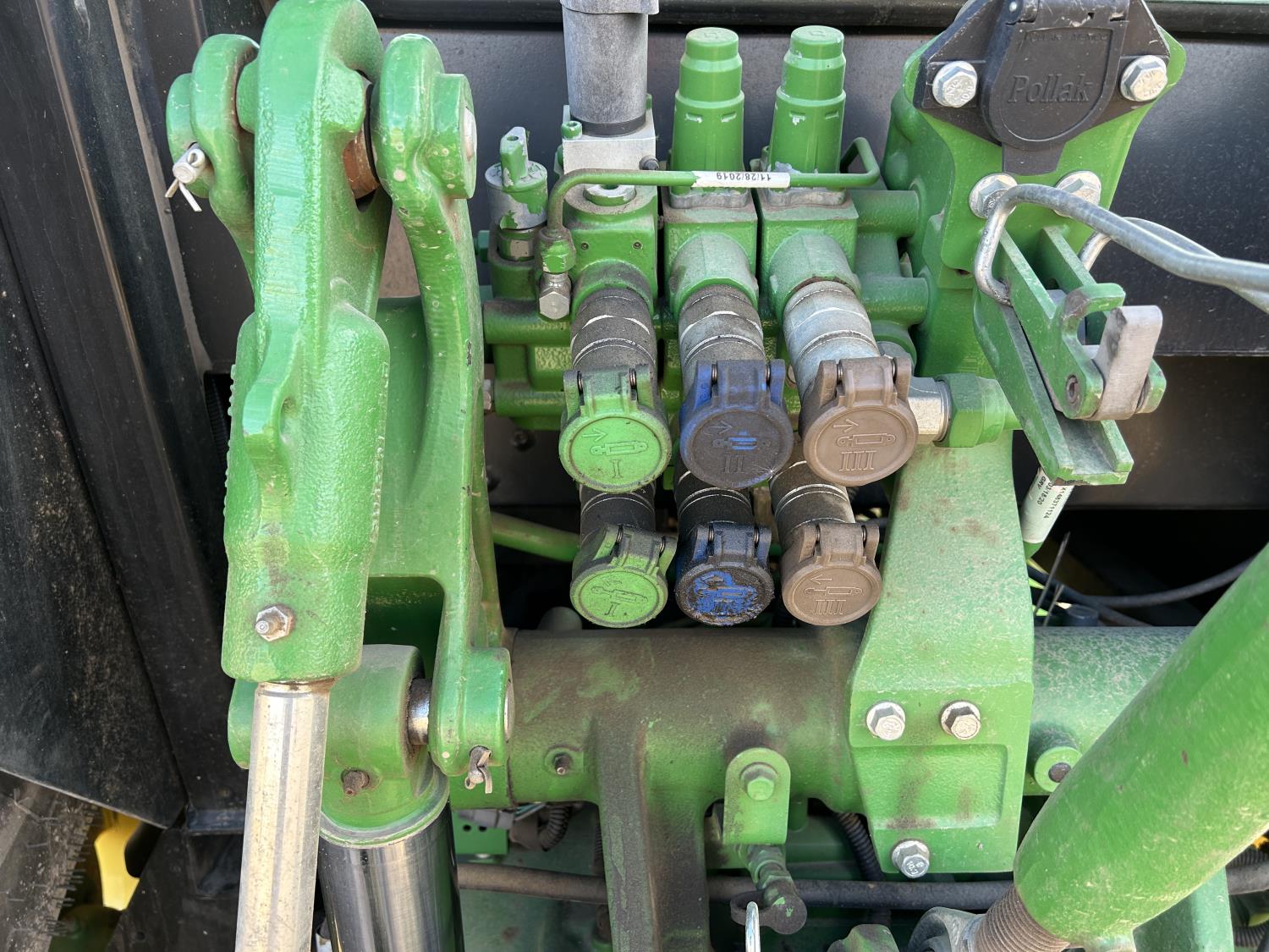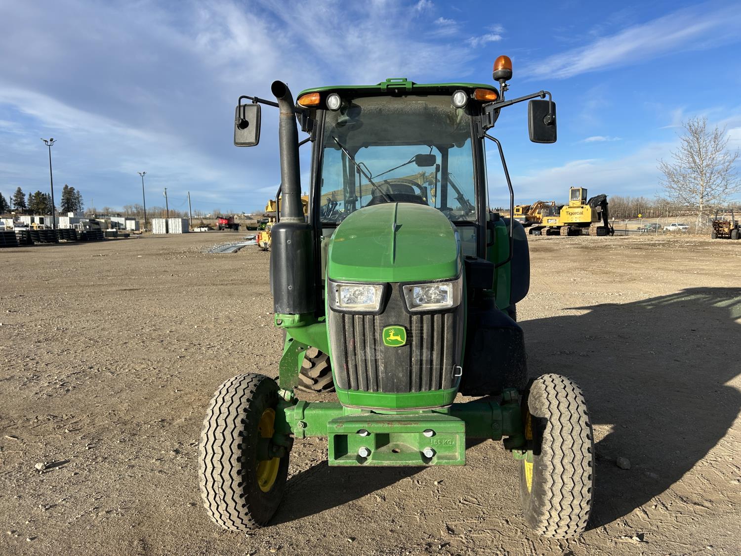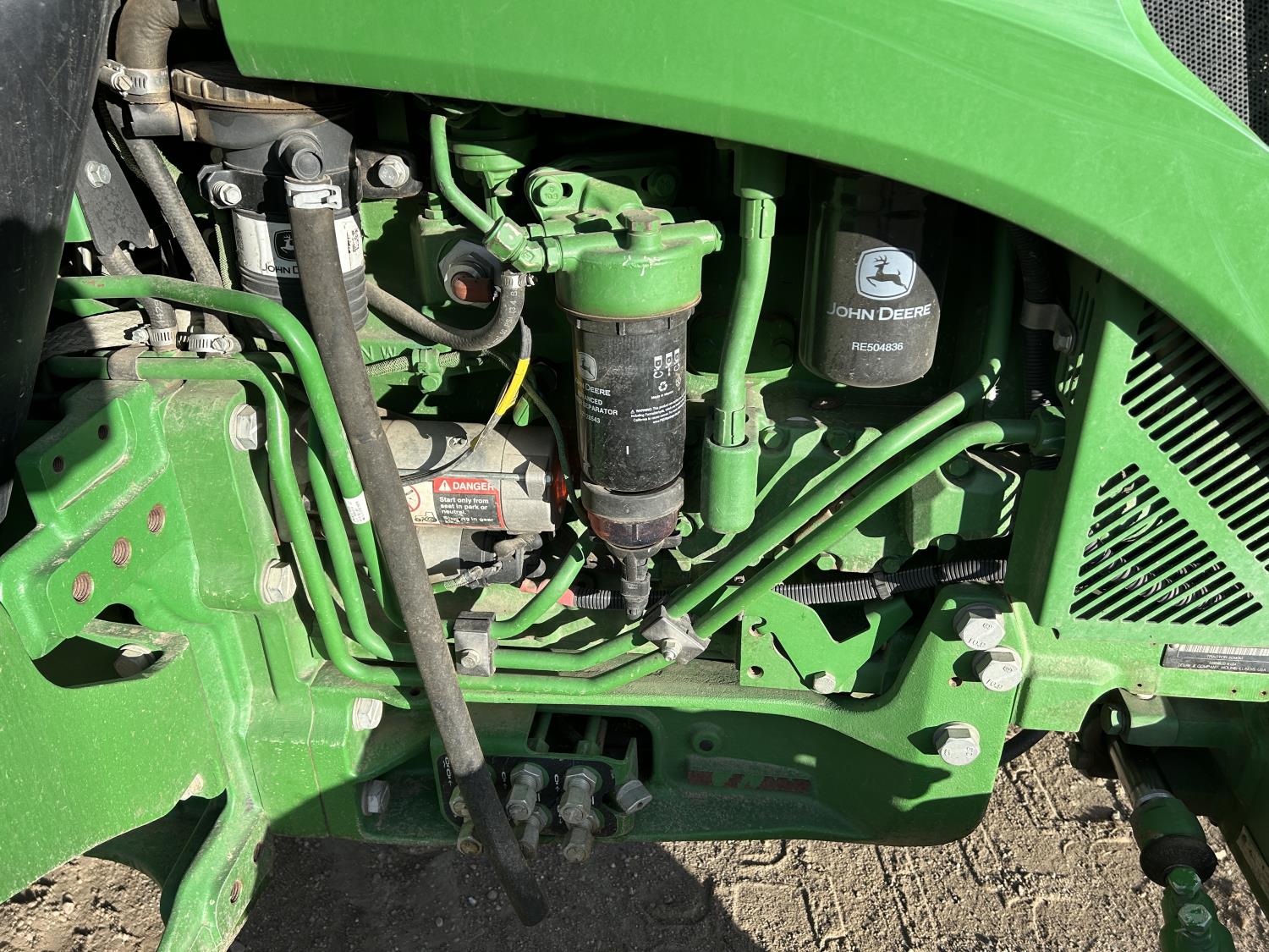 Deere 4.5 L 4 cylinder 89 HP, engine, DEF required, 75 PTO HP, 16 speed Power Shuttle partial synchro transmission, cab, left hand reverser, A/C, radio, 540 / 540E PTO, 3 point hitch, 3 point hitch exterior control, 3 rear hydraulic outlets, 3 function mid mount valve with joystick, 19.5L24 rear tires