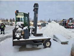 48 inch forks, side shift, enclosed cab, 3 wheel hydraulic drive, 159 inch max lift, 23X10-12 Front, 355/50-15 rear tires