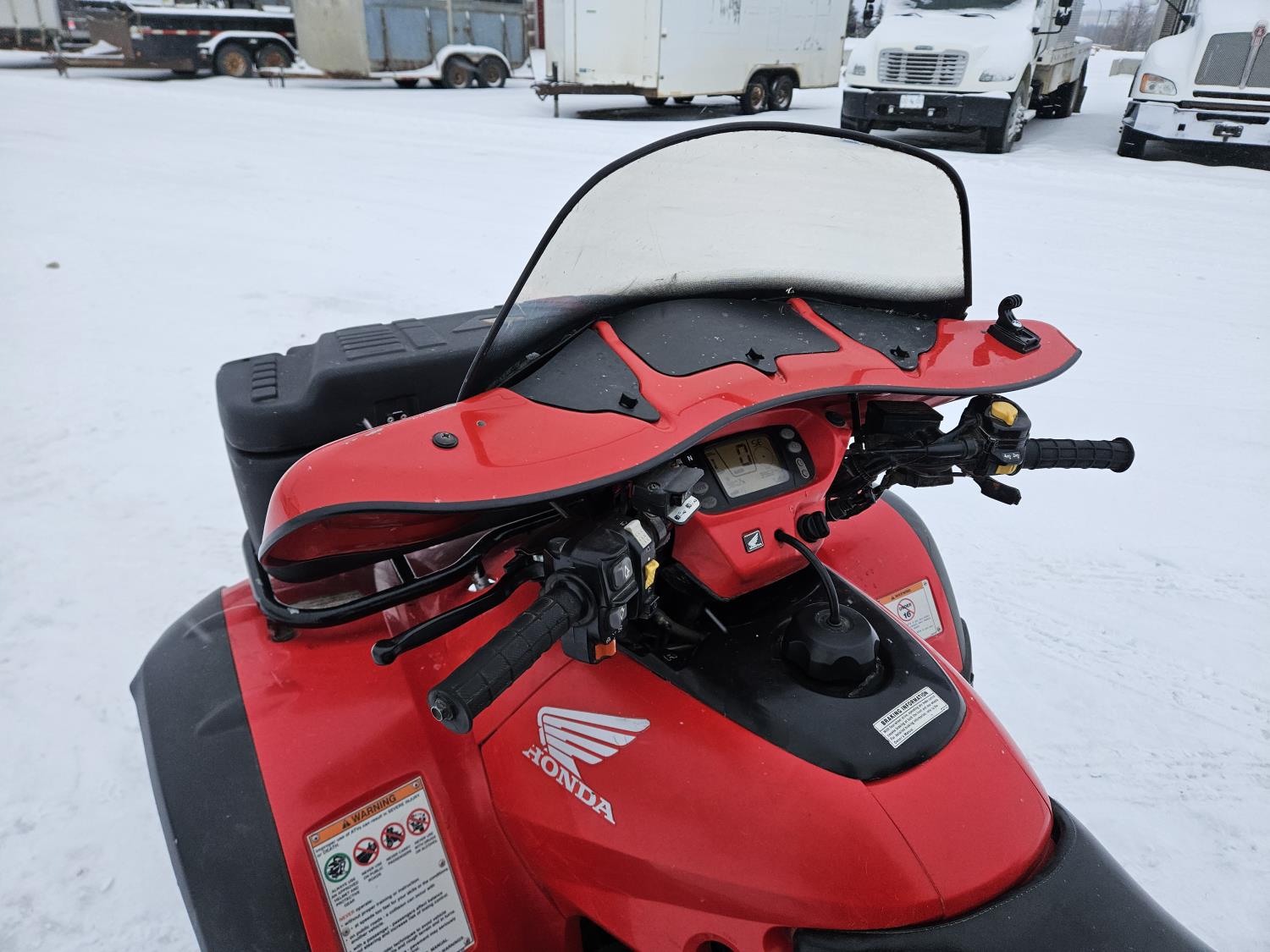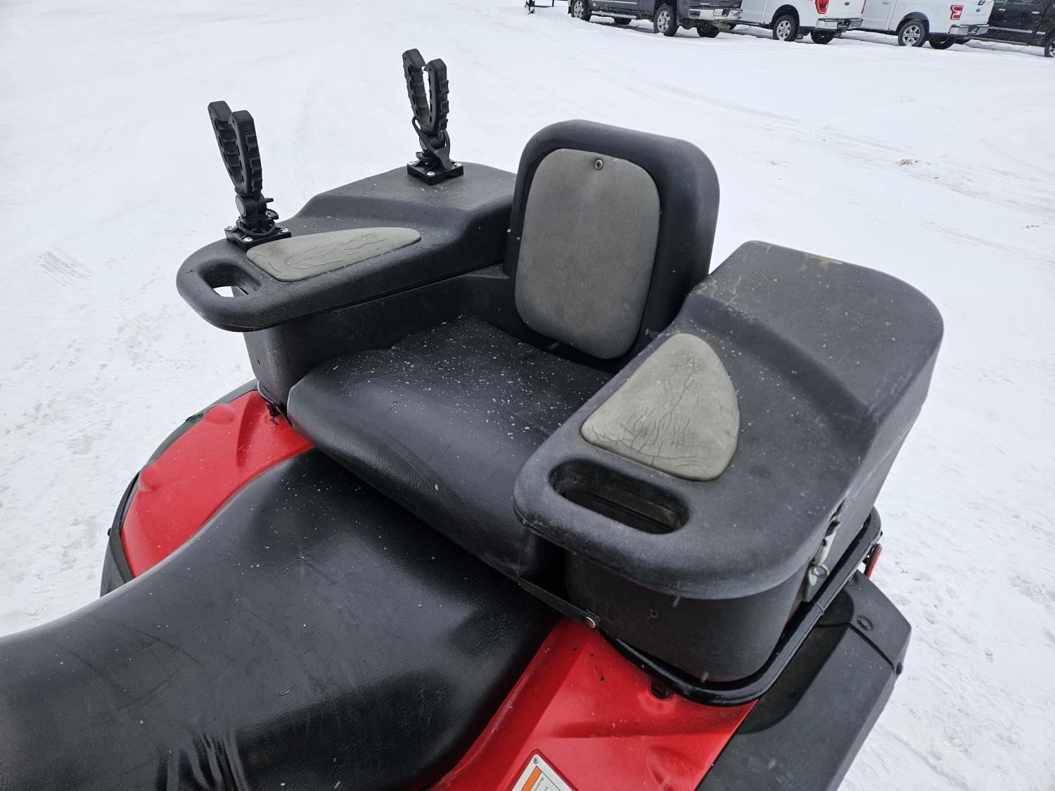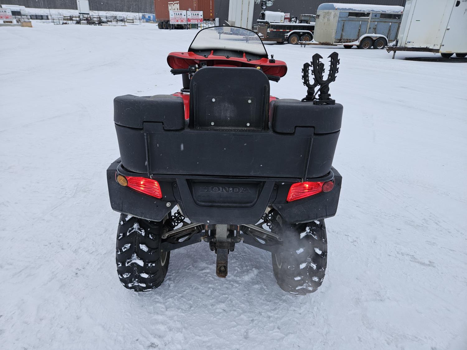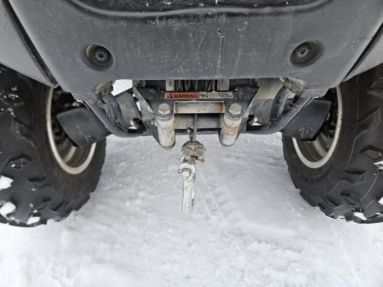 650 cc fuel injected engine, manual transmission, electric shift, reverse, hitch, front and rear racks, buddy seat, front winch, windshield, cargo box, gun rack, 25X8.00-12 front tires, 25X10.00-12 rear tires